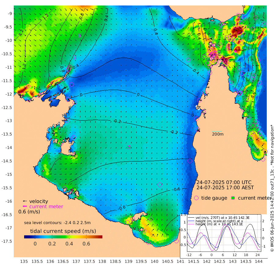 16cm/s 133T +3cm/s rms + 7cm/s -42T. ARA-GOC87 57m 21cm/s 20T +3cm/s rms + 2cm/s -2T. ARA-GOC87 60m 22cm/s 132T +2cm/s rms + 3cm/s 61T. ARA-GOC87 47m -168cm Daru -162cm Bobo Island -85cm Meer Island Barge -120cm Bramble Cay -152cm Unnamed Cay -158cm Pearce Cay -145cm Stephens Island -151cm Merrie England Shoals -169cm Mutacomal Reef -132cm Darnley Island Barge -98cm East Cay -146cm Yorke Island Barge -157cm Rennel Island -157cm Aureed Island -162cm Dungeness Reef -136cm Zagai Island -139cm Yam Island -99cm Dauan Island -84cm Saibai Island -129cm Phipi Reef -152cm Warrior Reef - West -51cm Mabuiag Island Barge -155cm Half Way Island -155cm Coconut Island -164cm Dugong Islet -149cm Poll Island -154cm Kirkcaldie Reef -143cm Suarji Island -136cm Sue Islet 23cm Hawkesbury Island -115cm Alert Patches -121cm Twin Island 7cm Badu Island -119cm St Pauls (Moa Island) -23cm Kubin (Moa Island) -81cm Ince Point -56cm Thursday Island -63cm Nardana Patches -37cm Turtle Head -2cm Round Island 19cm Goods Island 61cm Booby Island 41cm White Rocks Area 86cm Carpentaria -95cm Papou Point 64cm Bampfield Head 54cm Crab Island 44cm Red Wallis Island -15cm Packe Island -174cm Harrington Reef 19cm Herald Camp -40cm Sharp Point -28cm Red Island Point -69cm Possession Island -115cm Alpha Rock -142cm Frederick Point -156cm Wyborn Reef Light -152cm Tetley Island -83cm Triangle Reef -151cm Turtle Head Island -88cm Maclennan Cay -55cm Raine Island -142cm Mcsweeny Reef -129cm Collette Reef -85cm Shadwell Reef -140cm Hannibal Island -122cm Round Point 67cm Vrilya Point -109cm Cape Grenville -101cm Hicks Island -99cm Sir Charles Hardy Island -35cm Harvey Island -88cm Kay Reef -72cm Rocky Island -61cm Chapman Island -55cm Ham Reef -65cm Jubilee Reef -71cm Night Island -60cm Unnamed Reef No. 3 -73cm Morris Island -61cm 1st 3 Mile Opening -69cm Creech Reef -80cm Fife Island -74cm Eden Reef -74cm Stanley Island -86cm Normanby River 103cm Yabooma Island 101cm Hutchison River 106cm Elcho Island 100cm North West Crocodile Island 63cm Cape Wessel 86cm Stevens Island 20cm Guluwuru Island 84cm Hopeful Bay 73cm Auster Point 76cm Two Island Bay 65cm Cadell Strait -28cm Mallison Island 23cm Melville Bay (Gove Harbour) 30cm Truant Island 9cm Cape Arnhem -3cm Cape Grey -15cm Hawk Island -10cm Milner Bay (Groote Eylandt) -29cm Cape Beatrice -44cm West Island -41cm Centre Island -112cm Mornington Island -116cm West Wellesley Islands -125cm Bountiful Island -120cm Albert River Mouth -109cm Sweers Island -127cm Karumba -113cm Nassau River Offshore -90cm Christmas Creek -22cm Archer River 1cm Boyd Point 2cm Weipa (Humbug Point) 29cm Pennefather River 47cm Cullen Point