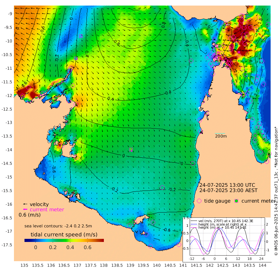 23cm/s 122T +3cm/s rms + 7cm/s -42T. ARA-GOC87 57m 37cm/s 165T +3cm/s rms + 2cm/s -2T. ARA-GOC87 60m 11cm/s 132T +2cm/s rms + 3cm/s 61T. ARA-GOC87 47m 200cm Daru 202cm Bobo Island 135cm Meer Island Barge 168cm Bramble Cay 196cm Unnamed Cay 209cm Pearce Cay 193cm Stephens Island 196cm Merrie England Shoals 205cm Mutacomal Reef 179cm Darnley Island Barge 147cm East Cay 189cm Yorke Island Barge 200cm Rennel Island 195cm Aureed Island 194cm Dungeness Reef 155cm Zagai Island 160cm Yam Island 110cm Dauan Island 100cm Saibai Island 116cm Phipi Reef 162cm Warrior Reef - West 97cm Mabuiag Island Barge 199cm Half Way Island 196cm Coconut Island 207cm Dugong Islet 183cm Poll Island 188cm Kirkcaldie Reef 166cm Suarji Island 171cm Sue Islet 109cm Hawkesbury Island 165cm Alert Patches 171cm Twin Island 98cm Badu Island 161cm St Pauls (Moa Island) 119cm Kubin (Moa Island) 141cm Ince Point 129cm Thursday Island 131cm Nardana Patches 121cm Turtle Head 96cm Round Island 100cm Goods Island 79cm Booby Island 89cm White Rocks Area 57cm Carpentaria 143cm Papou Point 91cm Bampfield Head 57cm Crab Island 85cm Red Wallis Island 116cm Packe Island 220cm Harrington Reef 90cm Herald Camp 36cm Sharp Point 104cm Red Island Point 130cm Possession Island 158cm Alpha Rock 190cm Frederick Point 205cm Wyborn Reef Light 201cm Tetley Island 131cm Triangle Reef 223cm Turtle Head Island 137cm Maclennan Cay 103cm Raine Island 188cm Mcsweeny Reef 172cm Collette Reef 129cm Shadwell Reef 186cm Hannibal Island 175cm Round Point 50cm Vrilya Point 157cm Cape Grenville 149cm Hicks Island 153cm Sir Charles Hardy Island 49cm Harvey Island 140cm Kay Reef 119cm Rocky Island 113cm Chapman Island 108cm Ham Reef 117cm Jubilee Reef 112cm Night Island 113cm Unnamed Reef No. 3 125cm Morris Island 114cm 1st 3 Mile Opening 121cm Creech Reef 126cm Fife Island 133cm Eden Reef 126cm Stanley Island 140cm Normanby River -18cm Yabooma Island -1cm Hutchison River -28cm Elcho Island -33cm North West Crocodile Island 27cm Cape Wessel -4cm Stevens Island 63cm Guluwuru Island -16cm Hopeful Bay 13cm Auster Point 12cm Two Island Bay 34cm Cadell Strait 124cm Mallison Island 40cm Melville Bay (Gove Harbour) 51cm Truant Island 31cm Cape Arnhem -1cm Cape Grey -20cm Hawk Island -73cm Milner Bay (Groote Eylandt) -67cm Cape Beatrice -97cm West Island -103cm Centre Island -86cm Mornington Island -77cm West Wellesley Islands -114cm Bountiful Island -176cm Albert River Mouth -199cm Sweers Island -164cm Karumba -34cm Nassau River Offshore 16cm Christmas Creek 34cm Archer River 50cm Boyd Point 42cm Weipa (Humbug Point) 40cm Pennefather River 43cm Cullen Point