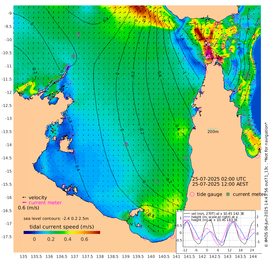 26cm/s 47T +3cm/s rms + 7cm/s -42T. ARA-GOC87 57m 27cm/s -2T +3cm/s rms + 2cm/s -2T. ARA-GOC87 60m 32cm/s 46T +2cm/s rms + 3cm/s 61T. ARA-GOC87 47m 57cm Daru 62cm Bobo Island 0cm Meer Island Barge 21cm Bramble Cay 43cm Unnamed Cay 50cm Pearce Cay 40cm Stephens Island 43cm Merrie England Shoals 55cm Mutacomal Reef 33cm Darnley Island Barge 1cm East Cay 46cm Yorke Island Barge 44cm Rennel Island 55cm Aureed Island 43cm Dungeness Reef 40cm Zagai Island 26cm Yam Island -29cm Dauan Island -23cm Saibai Island -14cm Phipi Reef 29cm Warrior Reef - West -47cm Mabuiag Island Barge 48cm Half Way Island 49cm Coconut Island 49cm Dugong Islet 42cm Poll Island 33cm Kirkcaldie Reef 30cm Suarji Island 36cm Sue Islet -177cm Hawkesbury Island -6cm Alert Patches 7cm Twin Island -148cm Badu Island 9cm St Pauls (Moa Island) -113cm Kubin (Moa Island) -38cm Ince Point -66cm Thursday Island -59cm Nardana Patches -109cm Turtle Head -129cm Round Island -173cm Goods Island -206cm Booby Island -181cm White Rocks Area -176cm Carpentaria -1cm Papou Point -202cm Bampfield Head -177cm Crab Island -189cm Red Wallis Island -139cm Packe Island 63cm Harrington Reef -183cm Herald Camp 14cm Sharp Point -102cm Red Island Point -41cm Possession Island 21cm Alpha Rock 31cm Frederick Point 56cm Wyborn Reef Light 53cm Tetley Island -3cm Triangle Reef 51cm Turtle Head Island -6cm Maclennan Cay -28cm Raine Island 41cm Mcsweeny Reef 30cm Collette Reef -4cm Shadwell Reef 36cm Hannibal Island 20cm Round Point -170cm Vrilya Point 10cm Cape Grenville 4cm Hicks Island -14cm Sir Charles Hardy Island 4cm Harvey Island -7cm Kay Reef -18cm Rocky Island -29cm Chapman Island -30cm Ham Reef -21cm Jubilee Reef -11cm Night Island -29cm Unnamed Reef No. 3 -18cm Morris Island -27cm 1st 3 Mile Opening -22cm Creech Reef -5cm Fife Island -25cm Eden Reef -19cm Stanley Island -8cm Normanby River -7cm Yabooma Island -2cm Hutchison River -1cm Elcho Island -1cm North West Crocodile Island 35cm Cape Wessel 29cm Stevens Island 48cm Guluwuru Island 15cm Hopeful Bay 28cm Auster Point 28cm Two Island Bay 34cm Cadell Strait 91cm Mallison Island 48cm Melville Bay (Gove Harbour) 49cm Truant Island 44cm Cape Arnhem 55cm Cape Grey 61cm Hawk Island 86cm Milner Bay (Groote Eylandt) 76cm Cape Beatrice 95cm West Island 92cm Centre Island 82cm Mornington Island 86cm West Wellesley Islands 88cm Bountiful Island 118cm Albert River Mouth 157cm Sweers Island 103cm Karumba 16cm Nassau River Offshore -45cm Christmas Creek -103cm Archer River -118cm Boyd Point -136cm Weipa (Humbug Point) -115cm Pennefather River -158cm Cullen Point