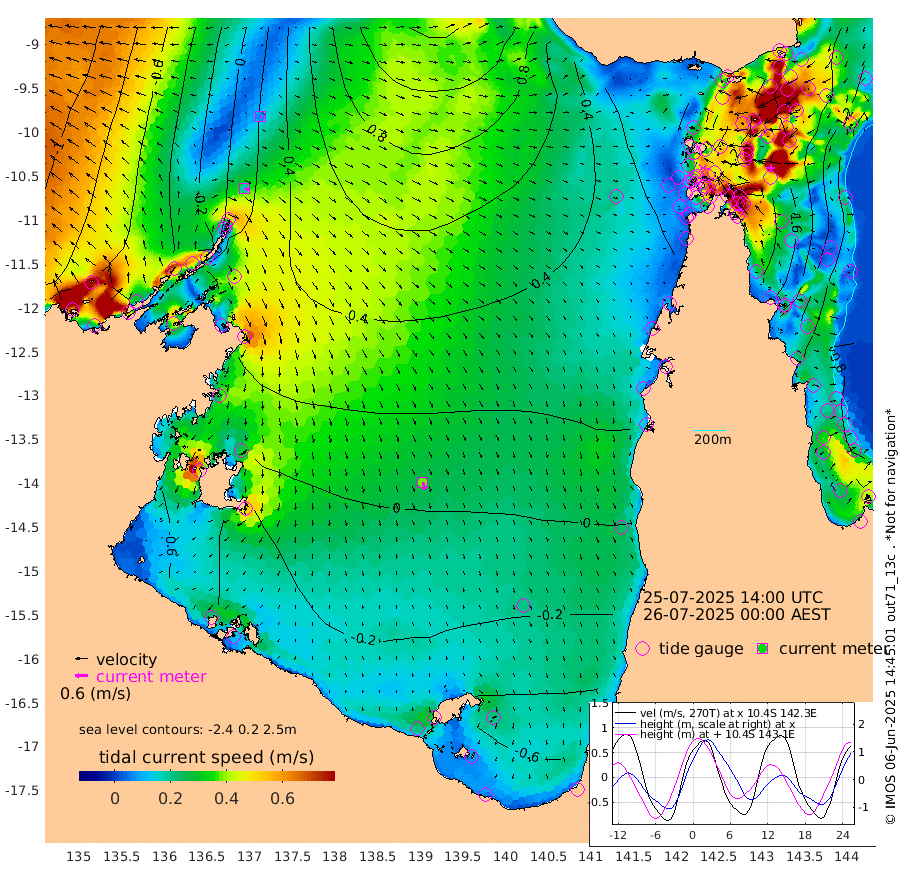 19cm/s 119T +3cm/s rms + 7cm/s -42T. ARA-GOC87 57m 38cm/s 166T +3cm/s rms + 2cm/s -2T. ARA-GOC87 60m 6cm/s 129T +2cm/s rms + 3cm/s 61T. ARA-GOC87 47m 194cm Daru 193cm Bobo Island 115cm Meer Island Barge 146cm Bramble Cay 178cm Unnamed Cay 194cm Pearce Cay 175cm Stephens Island 174cm Merrie England Shoals 193cm Mutacomal Reef 162cm Darnley Island Barge 127cm East Cay 177cm Yorke Island Barge 188cm Rennel Island 186cm Aureed Island 188cm Dungeness Reef 167cm Zagai Island 171cm Yam Island 139cm Dauan Island 127cm Saibai Island 136cm Phipi Reef 179cm Warrior Reef - West 113cm Mabuiag Island Barge 185cm Half Way Island 190cm Coconut Island 197cm Dugong Islet 184cm Poll Island 186cm Kirkcaldie Reef 174cm Suarji Island 175cm Sue Islet 109cm Hawkesbury Island 168cm Alert Patches 175cm Twin Island 101cm Badu Island 172cm St Pauls (Moa Island) 123cm Kubin (Moa Island) 147cm Ince Point 133cm Thursday Island 136cm Nardana Patches 122cm Turtle Head 98cm Round Island 94cm Goods Island 70cm Booby Island 79cm White Rocks Area 48cm Carpentaria 151cm Papou Point 83cm Bampfield Head 51cm Crab Island 79cm Red Wallis Island 114cm Packe Island 210cm Harrington Reef 93cm Herald Camp 42cm Sharp Point 106cm Red Island Point 133cm Possession Island 162cm Alpha Rock 190cm Frederick Point 197cm Wyborn Reef Light 196cm Tetley Island 118cm Triangle Reef 209cm Turtle Head Island 119cm Maclennan Cay 84cm Raine Island 173cm Mcsweeny Reef 155cm Collette Reef 111cm Shadwell Reef 165cm Hannibal Island 153cm Round Point 41cm Vrilya Point 134cm Cape Grenville 129cm Hicks Island 135cm Sir Charles Hardy Island 43cm Harvey Island 115cm Kay Reef 99cm Rocky Island 93cm Chapman Island 89cm Ham Reef 97cm Jubilee Reef 94cm Night Island 93cm Unnamed Reef No. 3 102cm Morris Island 92cm 1st 3 Mile Opening 100cm Creech Reef 109cm Fife Island 105cm Eden Reef 101cm Stanley Island 114cm Normanby River -28cm Yabooma Island -15cm Hutchison River -40cm Elcho Island -43cm North West Crocodile Island 23cm Cape Wessel -13cm Stevens Island 59cm Guluwuru Island -25cm Hopeful Bay 6cm Auster Point 8cm Two Island Bay 29cm Cadell Strait 128cm Mallison Island 38cm Melville Bay (Gove Harbour) 49cm Truant Island 31cm Cape Arnhem -2cm Cape Grey -18cm Hawk Island -71cm Milner Bay (Groote Eylandt) -65cm Cape Beatrice -94cm West Island -102cm Centre Island -79cm Mornington Island -73cm West Wellesley Islands -107cm Bountiful Island -169cm Albert River Mouth -191cm Sweers Island -153cm Karumba -30cm Nassau River Offshore 18cm Christmas Creek 28cm Archer River 47cm Boyd Point 37cm Weipa (Humbug Point) 30cm Pennefather River 40cm Cullen Point