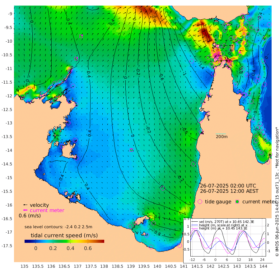 28cm/s 58T +3cm/s rms + 7cm/s -42T. ARA-GOC87 57m 23cm/s -12T +3cm/s rms + 2cm/s -2T. ARA-GOC87 60m 35cm/s 53T +2cm/s rms + 3cm/s 61T. ARA-GOC87 47m 61cm Daru 71cm Bobo Island 20cm Meer Island Barge 40cm Bramble Cay 52cm Unnamed Cay 64cm Pearce Cay 53cm Stephens Island 54cm Merrie England Shoals 58cm Mutacomal Reef 47cm Darnley Island Barge 23cm East Cay 54cm Yorke Island Barge 51cm Rennel Island 64cm Aureed Island 46cm Dungeness Reef 33cm Zagai Island 15cm Yam Island -33cm Dauan Island -31cm Saibai Island -13cm Phipi Reef 26cm Warrior Reef - West -60cm Mabuiag Island Barge 52cm Half Way Island 51cm Coconut Island 49cm Dugong Islet 37cm Poll Island 26cm Kirkcaldie Reef 20cm Suarji Island 27cm Sue Islet -185cm Hawkesbury Island -17cm Alert Patches -4cm Twin Island -150cm Badu Island -6cm St Pauls (Moa Island) -121cm Kubin (Moa Island) -51cm Ince Point -78cm Thursday Island -71cm Nardana Patches -113cm Turtle Head -140cm Round Island -173cm Goods Island -210cm Booby Island -184cm White Rocks Area -192cm Carpentaria -15cm Papou Point -211cm Bampfield Head -181cm Crab Island -193cm Red Wallis Island -142cm Packe Island 61cm Harrington Reef -194cm Herald Camp 5cm Sharp Point -107cm Red Island Point -54cm Possession Island 7cm Alpha Rock 24cm Frederick Point 56cm Wyborn Reef Light 50cm Tetley Island 13cm Triangle Reef 49cm Turtle Head Island 11cm Maclennan Cay -5cm Raine Island 51cm Mcsweeny Reef 43cm Collette Reef 14cm Shadwell Reef 51cm Hannibal Island 40cm Round Point -179cm Vrilya Point 27cm Cape Grenville 23cm Hicks Island 7cm Sir Charles Hardy Island 9cm Harvey Island 14cm Kay Reef 5cm Rocky Island -2cm Chapman Island -7cm Ham Reef 1cm Jubilee Reef 9cm Night Island -4cm Unnamed Reef No. 3 6cm Morris Island -5cm 1st 3 Mile Opening 1cm Creech Reef 20cm Fife Island 6cm Eden Reef 4cm Stanley Island 17cm Normanby River 26cm Yabooma Island 43cm Hutchison River 35cm Elcho Island 31cm North West Crocodile Island 55cm Cape Wessel 60cm Stevens Island 75cm Guluwuru Island 45cm Hopeful Bay 51cm Auster Point 47cm Two Island Bay 74cm Cadell Strait 129cm Mallison Island 73cm Melville Bay (Gove Harbour) 73cm Truant Island 61cm Cape Arnhem 64cm Cape Grey 69cm Hawk Island 83cm Milner Bay (Groote Eylandt) 75cm Cape Beatrice 81cm West Island 78cm Centre Island 94cm Mornington Island 97cm West Wellesley Islands 109cm Bountiful Island 147cm Albert River Mouth 181cm Sweers Island 129cm Karumba 36cm Nassau River Offshore -26cm Christmas Creek -88cm Archer River -111cm Boyd Point -123cm Weipa (Humbug Point) -116cm Pennefather River -164cm Cullen Point