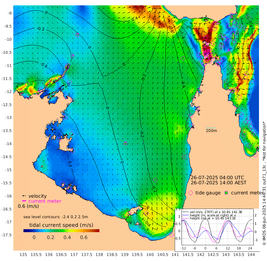 20cm/s 33T +3cm/s rms + 7cm/s -42T. ARA-GOC87 57m 30cm/s 11T +3cm/s rms + 2cm/s -2T. ARA-GOC87 60m 22cm/s 39T +2cm/s rms + 3cm/s 61T. ARA-GOC87 47m -1cm Daru -2cm Bobo Island -53cm Meer Island Barge -49cm Bramble Cay -27cm Unnamed Cay -23cm Pearce Cay -29cm Stephens Island -33cm Merrie England Shoals -12cm Mutacomal Reef -29cm Darnley Island Barge -62cm East Cay -11cm Yorke Island Barge -19cm Rennel Island -4cm Aureed Island -7cm Dungeness Reef 24cm Zagai Island 6cm Yam Island -13cm Dauan Island -3cm Saibai Island -18cm Phipi Reef 10cm Warrior Reef - West -24cm Mabuiag Island Barge -13cm Half Way Island 0cm Coconut Island -7cm Dugong Islet 7cm Poll Island -5cm Kirkcaldie Reef 15cm Suarji Island 11cm Sue Islet -155cm Hawkesbury Island -15cm Alert Patches -6cm Twin Island -122cm Badu Island 7cm St Pauls (Moa Island) -98cm Kubin (Moa Island) -34cm Ince Point -54cm Thursday Island -48cm Nardana Patches -96cm Turtle Head -109cm Round Island -149cm Goods Island -164cm Booby Island -154cm White Rocks Area -110cm Carpentaria -5cm Papou Point -156cm Bampfield Head -138cm Crab Island -154cm Red Wallis Island -126cm Packe Island 5cm Harrington Reef -153cm Herald Camp 17cm Sharp Point -93cm Red Island Point -39cm Possession Island 4cm Alpha Rock -1cm Frederick Point -1cm Wyborn Reef Light 3cm Tetley Island -47cm Triangle Reef -6cm Turtle Head Island -56cm Maclennan Cay -72cm Raine Island -21cm Mcsweeny Reef -31cm Collette Reef -53cm Shadwell Reef -35cm Hannibal Island -55cm Round Point -124cm Vrilya Point -54cm Cape Grenville -56cm Hicks Island -70cm Sir Charles Hardy Island -14cm Harvey Island -70cm Kay Reef -70cm Rocky Island -81cm Chapman Island -75cm Ham Reef -69cm Jubilee Reef -57cm Night Island -76cm Unnamed Reef No. 3 -72cm Morris Island -70cm 1st 3 Mile Opening -71cm Creech Reef -59cm Fife Island -89cm Eden Reef -75cm Stanley Island -76cm Normanby River -81cm Yabooma Island -88cm Hutchison River -70cm Elcho Island -70cm North West Crocodile Island -8cm Cape Wessel -40cm Stevens Island 4cm Guluwuru Island -49cm Hopeful Bay -22cm Auster Point -21cm Two Island Bay -44cm Cadell Strait 38cm Mallison Island 6cm Melville Bay (Gove Harbour) 8cm Truant Island 19cm Cape Arnhem 37cm Cape Grey 39cm Hawk Island 78cm Milner Bay (Groote Eylandt) 65cm Cape Beatrice 98cm West Island 96cm Centre Island 51cm Mornington Island 53cm West Wellesley Islands 40cm Bountiful Island 61cm Albert River Mouth 101cm Sweers Island 46cm Karumba -19cm Nassau River Offshore -66cm Christmas Creek -103cm Archer River -100cm Boyd Point -124cm Weipa (Humbug Point) -89cm Pennefather River -119cm Cullen Point
