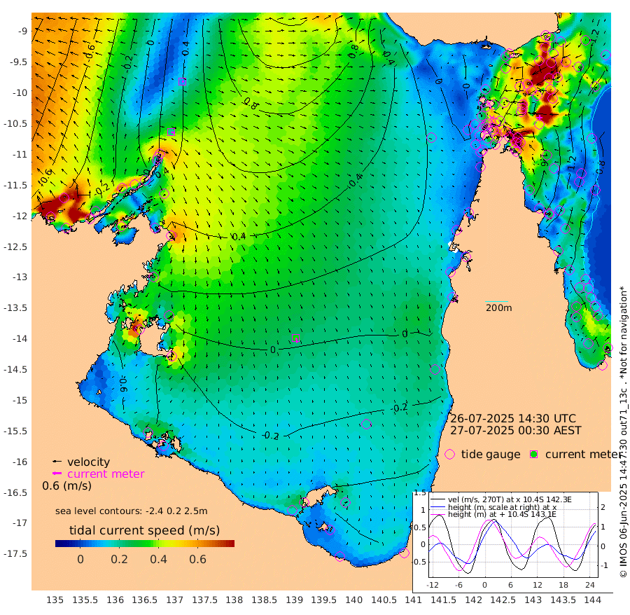20cm/s 111T +3cm/s rms + 7cm/s -42T. ARA-GOC87 57m 35cm/s 166T +3cm/s rms + 2cm/s -2T. ARA-GOC87 60m 9cm/s 100T +2cm/s rms + 3cm/s 61T. ARA-GOC87 47m 174cm Daru 175cm Bobo Island 104cm Meer Island Barge 132cm Bramble Cay 158cm Unnamed Cay 175cm Pearce Cay 157cm Stephens Island 153cm Merrie England Shoals 172cm Mutacomal Reef 146cm Darnley Island Barge 116cm East Cay 160cm Yorke Island Barge 168cm Rennel Island 168cm Aureed Island 167cm Dungeness Reef 153cm Zagai Island 155cm Yam Island 131cm Dauan Island 122cm Saibai Island 123cm Phipi Reef 165cm Warrior Reef - West 102cm Mabuiag Island Barge 163cm Half Way Island 169cm Coconut Island 174cm Dugong Islet 164cm Poll Island 162cm Kirkcaldie Reef 153cm Suarji Island 156cm Sue Islet 93cm Hawkesbury Island 145cm Alert Patches 153cm Twin Island 84cm Badu Island 151cm St Pauls (Moa Island) 107cm Kubin (Moa Island) 127cm Ince Point 113cm Thursday Island 116cm Nardana Patches 102cm Turtle Head 85cm Round Island 75cm Goods Island 50cm Booby Island 59cm White Rocks Area 30cm Carpentaria 133cm Papou Point 67cm Bampfield Head 34cm Crab Island 61cm Red Wallis Island 97cm Packe Island 185cm Harrington Reef 80cm Herald Camp 36cm Sharp Point 89cm Red Island Point 115cm Possession Island 144cm Alpha Rock 168cm Frederick Point 178cm Wyborn Reef Light 177cm Tetley Island 108cm Triangle Reef 185cm Turtle Head Island 107cm Maclennan Cay 75cm Raine Island 154cm Mcsweeny Reef 139cm Collette Reef 100cm Shadwell Reef 147cm Hannibal Island 139cm Round Point 21cm Vrilya Point 119cm Cape Grenville 117cm Hicks Island 124cm Sir Charles Hardy Island 38cm Harvey Island 103cm Kay Reef 90cm Rocky Island 86cm Chapman Island 82cm Ham Reef 88cm Jubilee Reef 84cm Night Island 85cm Unnamed Reef No. 3 92cm Morris Island 80cm 1st 3 Mile Opening 89cm Creech Reef 102cm Fife Island 95cm Eden Reef 90cm Stanley Island 103cm Normanby River 2cm Yabooma Island 18cm Hutchison River -9cm Elcho Island -13cm North West Crocodile Island 48cm Cape Wessel 17cm Stevens Island 80cm Guluwuru Island 4cm Hopeful Bay 30cm Auster Point 35cm Two Island Bay 61cm Cadell Strait 160cm Mallison Island 59cm Melville Bay (Gove Harbour) 71cm Truant Island 45cm Cape Arnhem 6cm Cape Grey -10cm Hawk Island -67cm Milner Bay (Groote Eylandt) -64cm Cape Beatrice -99cm West Island -107cm Centre Island -82cm Mornington Island -78cm West Wellesley Islands -106cm Bountiful Island -163cm Albert River Mouth -183cm Sweers Island -148cm Karumba -37cm Nassau River Offshore 8cm Christmas Creek 16cm Archer River 35cm Boyd Point 26cm Weipa (Humbug Point) 13cm Pennefather River 27cm Cullen Point
