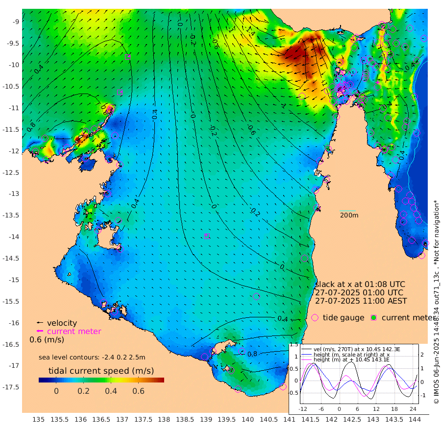 22cm/s 76T +3cm/s rms + 7cm/s -42T. ARA-GOC87 57m 19cm/s -43T +3cm/s rms + 2cm/s -2T. ARA-GOC87 60m 30cm/s 65T +2cm/s rms + 3cm/s 61T. ARA-GOC87 47m 33cm Daru 46cm Bobo Island 34cm Meer Island Barge 51cm Bramble Cay 41cm Unnamed Cay 54cm Pearce Cay 44cm Stephens Island 49cm Merrie England Shoals 36cm Mutacomal Reef 39cm Darnley Island Barge 41cm East Cay 32cm Yorke Island Barge 33cm Rennel Island 40cm Aureed Island 21cm Dungeness Reef -10cm Zagai Island -23cm Yam Island -51cm Dauan Island -56cm Saibai Island -21cm Phipi Reef -9cm Warrior Reef - West -74cm Mabuiag Island Barge 29cm Half Way Island 22cm Coconut Island 19cm Dugong Islet 1cm Poll Island -5cm Kirkcaldie Reef -20cm Suarji Island -12cm Sue Islet -134cm Hawkesbury Island -43cm Alert Patches -36cm Twin Island -106cm Badu Island -46cm St Pauls (Moa Island) -101cm Kubin (Moa Island) -66cm Ince Point -82cm Thursday Island -77cm Nardana Patches -90cm Turtle Head -113cm Round Island -118cm Goods Island -150cm Booby Island -127cm White Rocks Area -171cm Carpentaria -45cm Papou Point -166cm Bampfield Head -128cm Crab Island -139cm Red Wallis Island -105cm Packe Island 23cm Harrington Reef -152cm Herald Camp -14cm Sharp Point -81cm Red Island Point -66cm Possession Island -31cm Alpha Rock -11cm Frederick Point 26cm Wyborn Reef Light 16cm Tetley Island 24cm Triangle Reef 18cm Turtle Head Island 24cm Maclennan Cay 27cm Raine Island 38cm Mcsweeny Reef 39cm Collette Reef 29cm Shadwell Reef 49cm Hannibal Island 53cm Round Point -135cm Vrilya Point 37cm Cape Grenville 36cm Hicks Island 25cm Sir Charles Hardy Island 10cm Harvey Island 38cm Kay Reef 32cm Rocky Island 35cm Chapman Island 23cm Ham Reef 27cm Jubilee Reef 29cm Night Island 28cm Unnamed Reef No. 3 35cm Morris Island 22cm 1st 3 Mile Opening 27cm Creech Reef 43cm Fife Island 45cm Eden Reef 32cm Stanley Island 46cm Normanby River 110cm Yabooma Island 138cm Hutchison River 118cm Elcho Island 113cm North West Crocodile Island 76cm Cape Wessel 120cm Stevens Island 85cm Guluwuru Island 108cm Hopeful Bay 87cm Auster Point 77cm Two Island Bay 135cm Cadell Strait 114cm Mallison Island 87cm Melville Bay (Gove Harbour) 82cm Truant Island 60cm Cape Arnhem 58cm Cape Grey 63cm Hawk Island 61cm Milner Bay (Groote Eylandt) 60cm Cape Beatrice 44cm West Island 43cm Centre Island 99cm Mornington Island 98cm West Wellesley Islands 133cm Bountiful Island 183cm Albert River Mouth 201cm Sweers Island 167cm Karumba 71cm Nassau River Offshore 18cm Christmas Creek -33cm Archer River -72cm Boyd Point -65cm Weipa (Humbug Point) -78cm Pennefather River -123cm Cullen Point