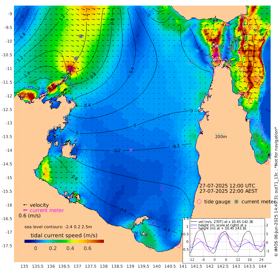 28cm/s 123T +3cm/s rms + 7cm/s -42T. ARA-GOC87 57m 7cm/s 169T +3cm/s rms + 2cm/s -2T. ARA-GOC87 60m 27cm/s 116T +2cm/s rms + 3cm/s 61T. ARA-GOC87 47m 38cm Daru 48cm Bobo Island 70cm Meer Island Barge 80cm Bramble Cay 68cm Unnamed Cay 66cm Pearce Cay 66cm Stephens Island 73cm Merrie England Shoals 55cm Mutacomal Reef 61cm Darnley Island Barge 79cm East Cay 48cm Yorke Island Barge 56cm Rennel Island 43cm Aureed Island 33cm Dungeness Reef -3cm Zagai Island 4cm Yam Island -17cm Dauan Island -20cm Saibai Island -25cm Phipi Reef -8cm Warrior Reef - West 7cm Mabuiag Island Barge 49cm Half Way Island 36cm Coconut Island 43cm Dugong Islet 22cm Poll Island 18cm Kirkcaldie Reef 5cm Suarji Island 13cm Sue Islet 97cm Hawkesbury Island 19cm Alert Patches 19cm Twin Island 67cm Badu Island 3cm St Pauls (Moa Island) 65cm Kubin (Moa Island) 24cm Ince Point 33cm Thursday Island 30cm Nardana Patches 54cm Turtle Head 72cm Round Island 88cm Goods Island 91cm Booby Island 99cm White Rocks Area 58cm Carpentaria 14cm Papou Point 116cm Bampfield Head 60cm Crab Island 85cm Red Wallis Island 73cm Packe Island 40cm Harrington Reef 83cm Herald Camp -20cm Sharp Point 41cm Red Island Point 33cm Possession Island 23cm Alpha Rock 28cm Frederick Point 56cm Wyborn Reef Light 49cm Tetley Island 64cm Triangle Reef 62cm Turtle Head Island 68cm Maclennan Cay 73cm Raine Island 60cm Mcsweeny Reef 62cm Collette Reef 66cm Shadwell Reef 71cm Hannibal Island 88cm Round Point 45cm Vrilya Point 76cm Cape Grenville 74cm Hicks Island 83cm Sir Charles Hardy Island 20cm Harvey Island 86cm Kay Reef 77cm Rocky Island 86cm Chapman Island 78cm Ham Reef 75cm Jubilee Reef 64cm Night Island 78cm Unnamed Reef No. 3 81cm Morris Island 76cm 1st 3 Mile Opening 75cm Creech Reef 72cm Fife Island 98cm Eden Reef 83cm Stanley Island 93cm Normanby River 219cm Yabooma Island 246cm Hutchison River 206cm Elcho Island 193cm North West Crocodile Island 149cm Cape Wessel 192cm Stevens Island 124cm Guluwuru Island 179cm Hopeful Bay 161cm Auster Point 159cm Two Island Bay 192cm Cadell Strait 109cm Mallison Island 113cm Melville Bay (Gove Harbour) 125cm Truant Island 66cm Cape Arnhem 22cm Cape Grey 4cm Hawk Island -48cm Milner Bay (Groote Eylandt) -58cm Cape Beatrice -119cm West Island -122cm Centre Island -129cm Mornington Island -122cm West Wellesley Islands -124cm Bountiful Island -149cm Albert River Mouth -163cm Sweers Island -154cm Karumba -89cm Nassau River Offshore -46cm Christmas Creek 9cm Archer River 26cm Boyd Point 36cm Weipa (Humbug Point) 18cm Pennefather River 43cm Cullen Point