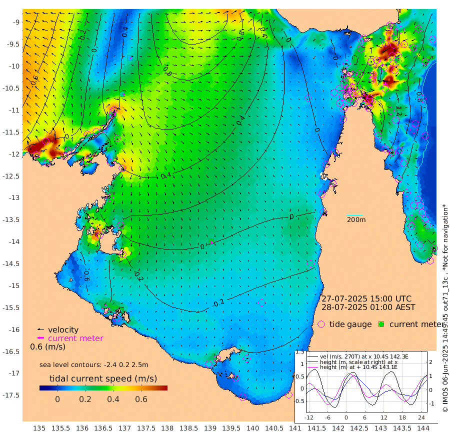 20cm/s 105T +3cm/s rms + 7cm/s -42T. ARA-GOC87 57m 30cm/s 167T +3cm/s rms + 2cm/s -2T. ARA-GOC87 60m 11cm/s 83T +2cm/s rms + 3cm/s 61T. ARA-GOC87 47m 148cm Daru 150cm Bobo Island 87cm Meer Island Barge 111cm Bramble Cay 132cm Unnamed Cay 146cm Pearce Cay 131cm Stephens Island 126cm Merrie England Shoals 144cm Mutacomal Reef 122cm Darnley Island Barge 98cm East Cay 135cm Yorke Island Barge 141cm Rennel Island 142cm Aureed Island 139cm Dungeness Reef 134cm Zagai Island 134cm Yam Island 120cm Dauan Island 114cm Saibai Island 107cm Phipi Reef 147cm Warrior Reef - West 87cm Mabuiag Island Barge 133cm Half Way Island 142cm Coconut Island 144cm Dugong Islet 138cm Poll Island 133cm Kirkcaldie Reef 128cm Suarji Island 132cm Sue Islet 71cm Hawkesbury Island 117cm Alert Patches 127cm Twin Island 65cm Badu Island 126cm St Pauls (Moa Island) 86cm Kubin (Moa Island) 103cm Ince Point 89cm Thursday Island 92cm Nardana Patches 79cm Turtle Head 68cm Round Island 53cm Goods Island 28cm Booby Island 37cm White Rocks Area 11cm Carpentaria 111cm Papou Point 49cm Bampfield Head 15cm Crab Island 40cm Red Wallis Island 75cm Packe Island 152cm Harrington Reef 64cm Herald Camp 30cm Sharp Point 67cm Red Island Point 93cm Possession Island 122cm Alpha Rock 140cm Frederick Point 151cm Wyborn Reef Light 152cm Tetley Island 93cm Triangle Reef 151cm Turtle Head Island 90cm Maclennan Cay 63cm Raine Island 130cm Mcsweeny Reef 117cm Collette Reef 84cm Shadwell Reef 123cm Hannibal Island 117cm Round Point 1cm Vrilya Point 99cm Cape Grenville 98cm Hicks Island 107cm Sir Charles Hardy Island 32cm Harvey Island 86cm Kay Reef 76cm Rocky Island 74cm Chapman Island 71cm Ham Reef 74cm Jubilee Reef 70cm Night Island 72cm Unnamed Reef No. 3 77cm Morris Island 65cm 1st 3 Mile Opening 73cm Creech Reef 89cm Fife Island 79cm Eden Reef 74cm Stanley Island 87cm Normanby River 25cm Yabooma Island 42cm Hutchison River 14cm Elcho Island 10cm North West Crocodile Island 66cm Cape Wessel 39cm Stevens Island 93cm Guluwuru Island 27cm Hopeful Bay 47cm Auster Point 54cm Two Island Bay 81cm Cadell Strait 184cm Mallison Island 73cm Melville Bay (Gove Harbour) 85cm Truant Island 55cm Cape Arnhem 13cm Cape Grey -1cm Hawk Island -58cm Milner Bay (Groote Eylandt) -58cm Cape Beatrice -96cm West Island -104cm Centre Island -77cm Mornington Island -74cm West Wellesley Islands -95cm Bountiful Island -144cm Albert River Mouth -162cm Sweers Island -132cm Karumba -38cm Nassau River Offshore 0cm Christmas Creek 5cm Archer River 23cm Boyd Point 15cm Weipa (Humbug Point) -4cm Pennefather River 13cm Cullen Point