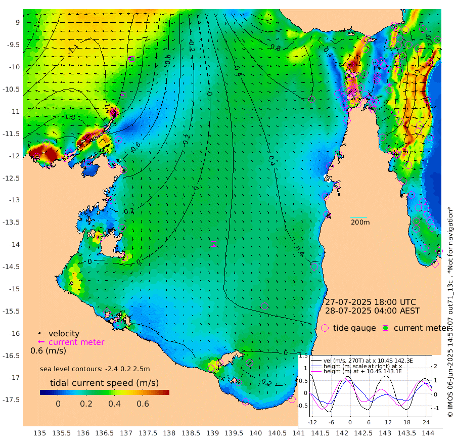 27cm/s -81T +3cm/s rms + 7cm/s -42T. ARA-GOC87 57m 27cm/s 167T +3cm/s rms + 2cm/s -2T. ARA-GOC87 60m 36cm/s -88T +2cm/s rms + 3cm/s 61T. ARA-GOC87 47m 41cm Daru 26cm Bobo Island -10cm Meer Island Barge -12cm Bramble Cay 9cm Unnamed Cay 12cm Pearce Cay 9cm Stephens Island 1cm Merrie England Shoals 27cm Mutacomal Reef 10cm Darnley Island Barge -10cm East Cay 27cm Yorke Island Barge 26cm Rennel Island 29cm Aureed Island 48cm Dungeness Reef 78cm Zagai Island 87cm Yam Island 111cm Dauan Island 109cm Saibai Island 100cm Phipi Reef 94cm Warrior Reef - West 86cm Mabuiag Island Barge 30cm Half Way Island 42cm Coconut Island 44cm Dugong Islet 61cm Poll Island 70cm Kirkcaldie Reef 76cm Suarji Island 70cm Sue Islet 70cm Hawkesbury Island 77cm Alert Patches 78cm Twin Island 64cm Badu Island 91cm St Pauls (Moa Island) 74cm Kubin (Moa Island) 81cm Ince Point 79cm Thursday Island 80cm Nardana Patches 71cm Turtle Head 65cm Round Island 54cm Goods Island 57cm Booby Island 41cm White Rocks Area 66cm Carpentaria 77cm Papou Point 51cm Bampfield Head 59cm Crab Island 62cm Red Wallis Island 71cm Packe Island 45cm Harrington Reef 89cm Herald Camp 37cm Sharp Point 72cm Red Island Point 70cm Possession Island 66cm Alpha Rock 65cm Frederick Point 30cm Wyborn Reef Light 40cm Tetley Island 2cm Triangle Reef 30cm Turtle Head Island 0cm Maclennan Cay -19cm Raine Island 14cm Mcsweeny Reef 6cm Collette Reef -6cm Shadwell Reef -1cm Hannibal Island -15cm Round Point 63cm Vrilya Point -8cm Cape Grenville -6cm Hicks Island 0cm Sir Charles Hardy Island 1cm Harvey Island -20cm Kay Reef -17cm Rocky Island -25cm Chapman Island -15cm Ham Reef -15cm Jubilee Reef -11cm Night Island -17cm Unnamed Reef No. 3 -21cm Morris Island -18cm 1st 3 Mile Opening -14cm Creech Reef -14cm Fife Island -34cm Eden Reef -21cm Stanley Island -28cm Normanby River -209cm Yabooma Island -238cm Hutchison River -213cm Elcho Island -199cm North West Crocodile Island -133cm Cape Wessel -197cm Stevens Island -107cm Guluwuru Island -182cm Hopeful Bay -155cm Auster Point -142cm Two Island Bay -179cm Cadell Strait -70cm Mallison Island -110cm Melville Bay (Gove Harbour) -113cm Truant Island -69cm Cape Arnhem -56cm Cape Grey -48cm Hawk Island -45cm Milner Bay (Groote Eylandt) -29cm Cape Beatrice 3cm West Island 2cm Centre Island 14cm Mornington Island 8cm West Wellesley Islands -14cm Bountiful Island -50cm Albert River Mouth -70cm Sweers Island -23cm Karumba 37cm Nassau River Offshore 58cm Christmas Creek 44cm Archer River 55cm Boyd Point 46cm Weipa (Humbug Point) 47cm Pennefather River 66cm Cullen Point