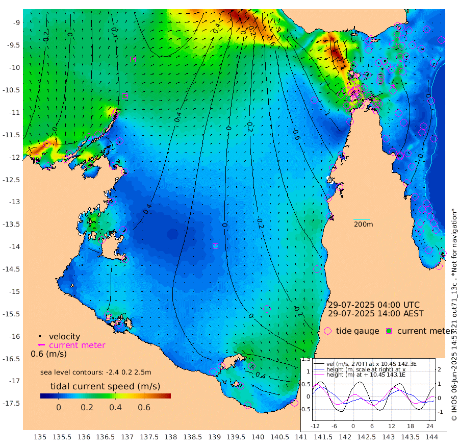 29cm/s 79T +3cm/s rms + 7cm/s -42T. ARA-GOC87 57m 11cm/s -1T +3cm/s rms + 2cm/s -2T. ARA-GOC87 60m 32cm/s 68T +2cm/s rms + 3cm/s 61T. ARA-GOC87 47m 24cm Daru 35cm Bobo Island 4cm Meer Island Barge 11cm Bramble Cay 11cm Unnamed Cay 28cm Pearce Cay 16cm Stephens Island 10cm Merrie England Shoals 13cm Mutacomal Reef 18cm Darnley Island Barge 3cm East Cay 22cm Yorke Island Barge 12cm Rennel Island 31cm Aureed Island 12cm Dungeness Reef 21cm Zagai Island -5cm Yam Island -10cm Dauan Island -3cm Saibai Island -3cm Phipi Reef 18cm Warrior Reef - West -39cm Mabuiag Island Barge 9cm Half Way Island 21cm Coconut Island 5cm Dugong Islet 7cm Poll Island -5cm Kirkcaldie Reef 0cm Suarji Island 7cm Sue Islet -146cm Hawkesbury Island -26cm Alert Patches -19cm Twin Island -101cm Badu Island -17cm St Pauls (Moa Island) -101cm Kubin (Moa Island) -48cm Ince Point -67cm Thursday Island -62cm Nardana Patches -89cm Turtle Head -117cm Round Island -130cm Goods Island -156cm Booby Island -145cm White Rocks Area -136cm Carpentaria -23cm Papou Point -162cm Bampfield Head -129cm Crab Island -147cm Red Wallis Island -116cm Packe Island 15cm Harrington Reef -163cm Herald Camp 1cm Sharp Point -82cm Red Island Point -55cm Possession Island -14cm Alpha Rock -2cm Frederick Point 18cm Wyborn Reef Light 14cm Tetley Island 3cm Triangle Reef 9cm Turtle Head Island -6cm Maclennan Cay -7cm Raine Island 18cm Mcsweeny Reef 14cm Collette Reef 2cm Shadwell Reef 17cm Hannibal Island 9cm Round Point -126cm Vrilya Point -2cm Cape Grenville 0cm Hicks Island -9cm Sir Charles Hardy Island 0cm Harvey Island -6cm Kay Reef -5cm Rocky Island -4cm Chapman Island -9cm Ham Reef -5cm Jubilee Reef -3cm Night Island -7cm Unnamed Reef No. 3 -5cm Morris Island -11cm 1st 3 Mile Opening -7cm Creech Reef 11cm Fife Island -5cm Eden Reef -11cm Stanley Island -6cm Normanby River 3cm Yabooma Island 27cm Hutchison River 20cm Elcho Island 12cm North West Crocodile Island 50cm Cape Wessel 44cm Stevens Island 83cm Guluwuru Island 32cm Hopeful Bay 41cm Auster Point 32cm Two Island Bay 70cm Cadell Strait 176cm Mallison Island 75cm Melville Bay (Gove Harbour) 77cm Truant Island 65cm Cape Arnhem 58cm Cape Grey 52cm Hawk Island 52cm Milner Bay (Groote Eylandt) 43cm Cape Beatrice 36cm West Island 33cm Centre Island 53cm Mornington Island 51cm West Wellesley Islands 58cm Bountiful Island 82cm Albert River Mouth 111cm Sweers Island 69cm Karumba 15cm Nassau River Offshore -22cm Christmas Creek -57cm Archer River -73cm Boyd Point -84cm Weipa (Humbug Point) -75cm Pennefather River -118cm Cullen Point