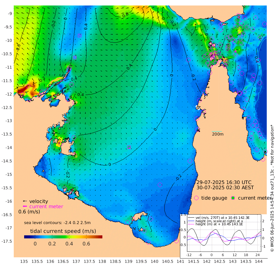 10cm/s 71T +3cm/s rms + 7cm/s -42T. ARA-GOC87 57m 21cm/s 171T +3cm/s rms + 2cm/s -2T. ARA-GOC87 60m 9cm/s 25T +2cm/s rms + 3cm/s 61T. ARA-GOC87 47m 82cm Daru 81cm Bobo Island 40cm Meer Island Barge 53cm Bramble Cay 65cm Unnamed Cay 70cm Pearce Cay 64cm Stephens Island 58cm Merrie England Shoals 75cm Mutacomal Reef 62cm Darnley Island Barge 47cm East Cay 71cm Yorke Island Barge 71cm Rennel Island 76cm Aureed Island 71cm Dungeness Reef 87cm Zagai Island 84cm Yam Island 91cm Dauan Island 92cm Saibai Island 70cm Phipi Reef 100cm Warrior Reef - West 51cm Mabuiag Island Barge 63cm Half Way Island 75cm Coconut Island 71cm Dugong Islet 75cm Poll Island 67cm Kirkcaldie Reef 69cm Suarji Island 76cm Sue Islet 11cm Hawkesbury Island 53cm Alert Patches 63cm Twin Island 12cm Badu Island 67cm St Pauls (Moa Island) 32cm Kubin (Moa Island) 47cm Ince Point 33cm Thursday Island 38cm Nardana Patches 23cm Turtle Head 20cm Round Island -3cm Goods Island -23cm Booby Island -19cm White Rocks Area -23cm Carpentaria 57cm Papou Point -4cm Bampfield Head -24cm Crab Island -10cm Red Wallis Island 22cm Packe Island 73cm Harrington Reef 19cm Herald Camp 20cm Sharp Point 15cm Red Island Point 37cm Possession Island 69cm Alpha Rock 72cm Frederick Point 81cm Wyborn Reef Light 84cm Tetley Island 48cm Triangle Reef 65cm Turtle Head Island 42cm Maclennan Cay 26cm Raine Island 64cm Mcsweeny Reef 58cm Collette Reef 40cm Shadwell Reef 59cm Hannibal Island 54cm Round Point -36cm Vrilya Point 45cm Cape Grenville 46cm Hicks Island 58cm Sir Charles Hardy Island 15cm Harvey Island 37cm Kay Reef 35cm Rocky Island 34cm Chapman Island 34cm Ham Reef 33cm Jubilee Reef 32cm Night Island 33cm Unnamed Reef No. 3 32cm Morris Island 23cm 1st 3 Mile Opening 31cm Creech Reef 46cm Fife Island 31cm Eden Reef 29cm Stanley Island 36cm Normanby River -4cm Yabooma Island 6cm Hutchison River -7cm Elcho Island -10cm North West Crocodile Island 46cm Cape Wessel 17cm Stevens Island 73cm Guluwuru Island 12cm Hopeful Bay 22cm Auster Point 32cm Two Island Bay 47cm Cadell Strait 193cm Mallison Island 56cm Melville Bay (Gove Harbour) 64cm Truant Island 46cm Cape Arnhem 12cm Cape Grey 7cm Hawk Island -33cm Milner Bay (Groote Eylandt) -32cm Cape Beatrice -57cm West Island -64cm Centre Island -34cm Mornington Island -36cm West Wellesley Islands -46cm Bountiful Island -72cm Albert River Mouth -88cm Sweers Island -66cm Karumba -17cm Nassau River Offshore 3cm Christmas Creek -10cm Archer River 2cm Boyd Point -6cm Weipa (Humbug Point) -31cm Pennefather River -12cm Cullen Point