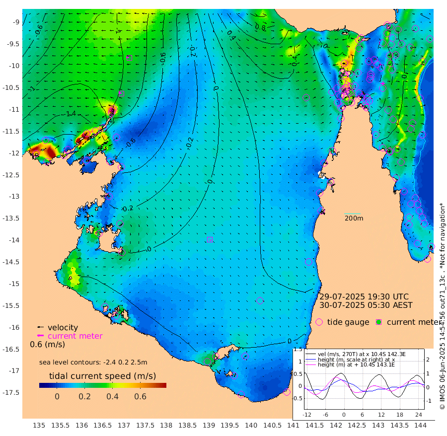 25cm/s -72T +3cm/s rms + 7cm/s -42T. ARA-GOC87 57m 14cm/s 165T +3cm/s rms + 2cm/s -2T. ARA-GOC87 60m 29cm/s -82T +2cm/s rms + 3cm/s 61T. ARA-GOC87 47m -3cm Daru -8cm Bobo Island -14cm Meer Island Barge -21cm Bramble Cay -15cm Unnamed Cay -17cm Pearce Cay -11cm Stephens Island -17cm Merrie England Shoals -8cm Mutacomal Reef -8cm Darnley Island Barge -13cm East Cay -4cm Yorke Island Barge -8cm Rennel Island -5cm Aureed Island -1cm Dungeness Reef 11cm Zagai Island 22cm Yam Island 20cm Dauan Island 25cm Saibai Island 15cm Phipi Reef 18cm Warrior Reef - West 11cm Mabuiag Island Barge -1cm Half Way Island -5cm Coconut Island 4cm Dugong Islet 5cm Poll Island 15cm Kirkcaldie Reef 5cm Suarji Island 12cm Sue Islet 9cm Hawkesbury Island 7cm Alert Patches 12cm Twin Island -8cm Badu Island 16cm St Pauls (Moa Island) 12cm Kubin (Moa Island) 13cm Ince Point 13cm Thursday Island 12cm Nardana Patches 5cm Turtle Head 11cm Round Island -3cm Goods Island 5cm Booby Island -7cm White Rocks Area 32cm Carpentaria 15cm Papou Point 2cm Bampfield Head 15cm Crab Island 13cm Red Wallis Island 16cm Packe Island 1cm Harrington Reef 37cm Herald Camp 15cm Sharp Point 15cm Red Island Point 12cm Possession Island 11cm Alpha Rock 7cm Frederick Point -12cm Wyborn Reef Light -7cm Tetley Island -10cm Triangle Reef -13cm Turtle Head Island -7cm Maclennan Cay -18cm Raine Island -12cm Mcsweeny Reef -13cm Collette Reef -14cm Shadwell Reef -17cm Hannibal Island -23cm Round Point 26cm Vrilya Point -12cm Cape Grenville -13cm Hicks Island -8cm Sir Charles Hardy Island -1cm Harvey Island -17cm Kay Reef -16cm Rocky Island -21cm Chapman Island -12cm Ham Reef -15cm Jubilee Reef -10cm Night Island -14cm Unnamed Reef No. 3 -19cm Morris Island -20cm 1st 3 Mile Opening -13cm Creech Reef -15cm Fife Island -24cm Eden Reef -15cm Stanley Island -19cm Normanby River -171cm Yabooma Island -202cm Hutchison River -173cm Elcho Island -161cm North West Crocodile Island -109cm Cape Wessel -162cm Stevens Island -100cm Guluwuru Island -143cm Hopeful Bay -128cm Auster Point -112cm Two Island Bay -156cm Cadell Strait -64cm Mallison Island -100cm Melville Bay (Gove Harbour) -104cm Truant Island -65cm Cape Arnhem -52cm Cape Grey -36cm Hawk Island -24cm Milner Bay (Groote Eylandt) -11cm Cape Beatrice 23cm West Island 27cm Centre Island 25cm Mornington Island 18cm West Wellesley Islands -2cm Bountiful Island -22cm Albert River Mouth -33cm Sweers Island 0cm Karumba 32cm Nassau River Offshore 39cm Christmas Creek 21cm Archer River 25cm Boyd Point 16cm Weipa (Humbug Point) 20cm Pennefather River 34cm Cullen Point