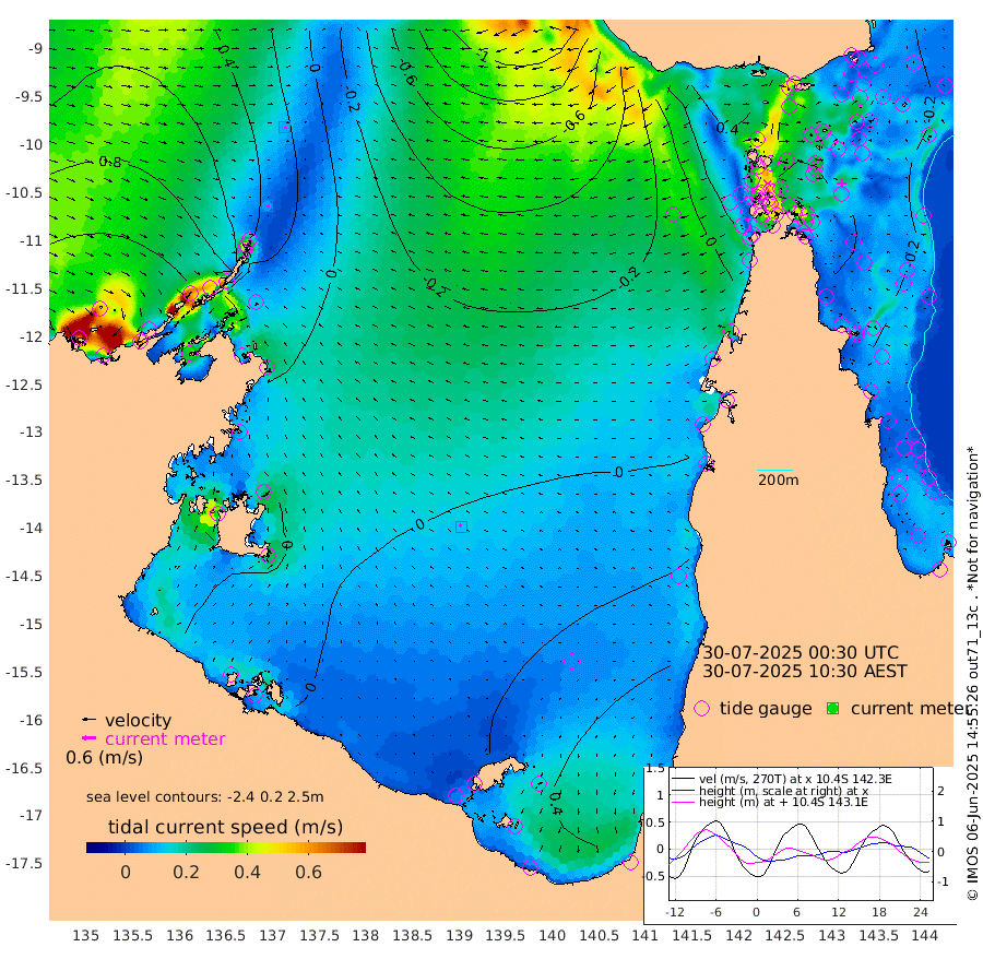 9cm/s 147T +3cm/s rms + 7cm/s -42T. ARA-GOC87 57m 13cm/s -50T +3cm/s rms + 2cm/s -2T. ARA-GOC87 60m 10cm/s 119T +2cm/s rms + 3cm/s 61T. ARA-GOC87 47m -29cm Daru -32cm Bobo Island -18cm Meer Island Barge -14cm Bramble Cay -22cm Unnamed Cay -19cm Pearce Cay -25cm Stephens Island -16cm Merrie England Shoals -23cm Mutacomal Reef -30cm Darnley Island Barge -16cm East Cay -34cm Yorke Island Barge -26cm Rennel Island -36cm Aureed Island -25cm Dungeness Reef -41cm Zagai Island -35cm Yam Island -24cm Dauan Island -38cm Saibai Island 1cm Phipi Reef -37cm Warrior Reef - West -16cm Mabuiag Island Barge -26cm Half Way Island -31cm Coconut Island -33cm Dugong Islet -30cm Poll Island -27cm Kirkcaldie Reef -36cm Suarji Island -38cm Sue Islet 28cm Hawkesbury Island -21cm Alert Patches -27cm Twin Island 25cm Badu Island -30cm St Pauls (Moa Island) 4cm Kubin (Moa Island) -16cm Ince Point -9cm Thursday Island -11cm Nardana Patches 5cm Turtle Head 10cm Round Island 22cm Goods Island 20cm Booby Island 23cm White Rocks Area -31cm Carpentaria -25cm Papou Point -3cm Bampfield Head 25cm Crab Island 15cm Red Wallis Island 10cm Packe Island -36cm Harrington Reef 6cm Herald Camp -12cm Sharp Point 15cm Red Island Point -11cm Possession Island -36cm Alpha Rock -31cm Frederick Point -30cm Wyborn Reef Light -32cm Tetley Island -19cm Triangle Reef -22cm Turtle Head Island -21cm Maclennan Cay -7cm Raine Island -26cm Mcsweeny Reef -22cm Collette Reef -14cm Shadwell Reef -21cm Hannibal Island -10cm Round Point 19cm Vrilya Point -17cm Cape Grenville -16cm Hicks Island -30cm Sir Charles Hardy Island -7cm Harvey Island -14cm Kay Reef -12cm Rocky Island -8cm Chapman Island -15cm Ham Reef -14cm Jubilee Reef -13cm Night Island -14cm Unnamed Reef No. 3 -12cm Morris Island -12cm 1st 3 Mile Opening -15cm Creech Reef -16cm Fife Island -10cm Eden Reef -11cm Stanley Island -11cm Normanby River 116cm Yabooma Island 119cm Hutchison River 107cm Elcho Island 112cm North West Crocodile Island 20cm Cape Wessel 89cm Stevens Island -6cm Guluwuru Island 84cm Hopeful Bay 52cm Auster Point 49cm Two Island Bay 83cm Cadell Strait -75cm Mallison Island 12cm Melville Bay (Gove Harbour) 4cm Truant Island -5cm Cape Arnhem 3cm Cape Grey 11cm Hawk Island 13cm Milner Bay (Groote Eylandt) 14cm Cape Beatrice 3cm West Island 6cm Centre Island 35cm Mornington Island 30cm West Wellesley Islands 59cm Bountiful Island 93cm Albert River Mouth 101cm Sweers Island 100cm Karumba 45cm Nassau River Offshore 27cm Christmas Creek 27cm Archer River 1cm Boyd Point 18cm Weipa (Humbug Point) 24cm Pennefather River 6cm Cullen Point