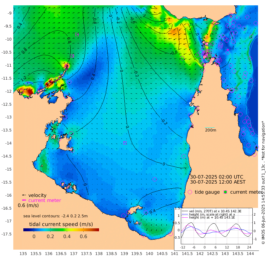 25cm/s 105T +3cm/s rms + 7cm/s -42T. ARA-GOC87 57m 12cm/s -44T +3cm/s rms + 2cm/s -2T. ARA-GOC87 60m 28cm/s 89T +2cm/s rms + 3cm/s 61T. ARA-GOC87 47m -2cm Daru 1cm Bobo Island -5cm Meer Island Barge 5cm Bramble Cay -3cm Unnamed Cay 7cm Pearce Cay -5cm Stephens Island 1cm Merrie England Shoals -3cm Mutacomal Reef -8cm Darnley Island Barge -3cm East Cay -9cm Yorke Island Barge -7cm Rennel Island -7cm Aureed Island -7cm Dungeness Reef -13cm Zagai Island -22cm Yam Island -7cm Dauan Island -17cm Saibai Island 12cm Phipi Reef -10cm Warrior Reef - West -19cm Mabuiag Island Barge -12cm Half Way Island -6cm Coconut Island -19cm Dugong Islet -13cm Poll Island -19cm Kirkcaldie Reef -22cm Suarji Island -20cm Sue Islet -29cm Hawkesbury Island -21cm Alert Patches -24cm Twin Island -9cm Badu Island -25cm St Pauls (Moa Island) -31cm Kubin (Moa Island) -27cm Ince Point -30cm Thursday Island -29cm Nardana Patches -26cm Turtle Head -34cm Round Island -30cm Goods Island -45cm Booby Island -38cm White Rocks Area -88cm Carpentaria -24cm Papou Point -63cm Bampfield Head -33cm Crab Island -46cm Red Wallis Island -34cm Packe Island -17cm Harrington Reef -60cm Herald Camp -10cm Sharp Point -18cm Red Island Point -27cm Possession Island -27cm Alpha Rock -18cm Frederick Point -4cm Wyborn Reef Light -7cm Tetley Island -4cm Triangle Reef -5cm Turtle Head Island -13cm Maclennan Cay 0cm Raine Island -4cm Mcsweeny Reef -1cm Collette Reef -2cm Shadwell Reef 1cm Hannibal Island 7cm Round Point -42cm Vrilya Point -7cm Cape Grenville -4cm Hicks Island -17cm Sir Charles Hardy Island -3cm Harvey Island -5cm Kay Reef -2cm Rocky Island 3cm Chapman Island -7cm Ham Reef -5cm Jubilee Reef -5cm Night Island -5cm Unnamed Reef No. 3 -3cm Morris Island -7cm 1st 3 Mile Opening -8cm Creech Reef 2cm Fife Island 0cm Eden Reef -6cm Stanley Island -3cm Normanby River 139cm Yabooma Island 161cm Hutchison River 139cm Elcho Island 136cm North West Crocodile Island 73cm Cape Wessel 136cm Stevens Island 69cm Guluwuru Island 121cm Hopeful Bay 96cm Auster Point 88cm Two Island Bay 148cm Cadell Strait 74cm Mallison Island 77cm Melville Bay (Gove Harbour) 74cm Truant Island 48cm Cape Arnhem 40cm Cape Grey 39cm Hawk Island 26cm Milner Bay (Groote Eylandt) 20cm Cape Beatrice -8cm West Island -9cm Centre Island 32cm Mornington Island 27cm West Wellesley Islands 57cm Bountiful Island 94cm Albert River Mouth 111cm Sweers Island 91cm Karumba 30cm Nassau River Offshore 6cm Christmas Creek -3cm Archer River -30cm Boyd Point -19cm Weipa (Humbug Point) -16cm Pennefather River -47cm Cullen Point