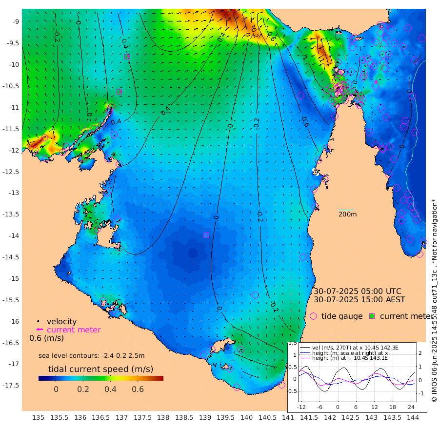 26cm/s 82T +3cm/s rms + 7cm/s -42T. ARA-GOC87 57m 7cm/s 26T +3cm/s rms + 2cm/s -2T. ARA-GOC87 60m 27cm/s 71T +2cm/s rms + 3cm/s 61T. ARA-GOC87 47m 7cm Daru 18cm Bobo Island 1cm Meer Island Barge 0cm Bramble Cay -4cm Unnamed Cay 10cm Pearce Cay 2cm Stephens Island -4cm Merrie England Shoals -5cm Mutacomal Reef 9cm Darnley Island Barge -2cm East Cay 10cm Yorke Island Barge -4cm Rennel Island 16cm Aureed Island -5cm Dungeness Reef 8cm Zagai Island -18cm Yam Island -17cm Dauan Island -4cm Saibai Island -14cm Phipi Reef 4cm Warrior Reef - West -37cm Mabuiag Island Barge -7cm Half Way Island 6cm Coconut Island -11cm Dugong Islet -8cm Poll Island -18cm Kirkcaldie Reef -14cm Suarji Island -2cm Sue Islet -127cm Hawkesbury Island -32cm Alert Patches -28cm Twin Island -89cm Badu Island -27cm St Pauls (Moa Island) -93cm Kubin (Moa Island) -50cm Ince Point -64cm Thursday Island -60cm Nardana Patches -83cm Turtle Head -104cm Round Island -114cm Goods Island -129cm Booby Island -126cm White Rocks Area -98cm Carpentaria -29cm Papou Point -132cm Bampfield Head -106cm Crab Island -124cm Red Wallis Island -106cm Packe Island -3cm Harrington Reef -141cm Herald Camp -2cm Sharp Point -74cm Red Island Point -54cm Possession Island -22cm Alpha Rock -14cm Frederick Point 1cm Wyborn Reef Light -1cm Tetley Island -1cm Triangle Reef -7cm Turtle Head Island -9cm Maclennan Cay -6cm Raine Island 5cm Mcsweeny Reef 5cm Collette Reef -1cm Shadwell Reef 5cm Hannibal Island -2cm Round Point -97cm Vrilya Point -8cm Cape Grenville -6cm Hicks Island -11cm Sir Charles Hardy Island -2cm Harvey Island -8cm Kay Reef -6cm Rocky Island -3cm Chapman Island -6cm Ham Reef -4cm Jubilee Reef -5cm Night Island -5cm Unnamed Reef No. 3 -6cm Morris Island -11cm 1st 3 Mile Opening -7cm Creech Reef 7cm Fife Island -6cm Eden Reef -11cm Stanley Island -10cm Normanby River -30cm Yabooma Island -10cm Hutchison River -11cm Elcho Island -20cm North West Crocodile Island 33cm Cape Wessel 13cm Stevens Island 68cm Guluwuru Island 6cm Hopeful Bay 19cm Auster Point 11cm Two Island Bay 38cm Cadell Strait 177cm Mallison Island 58cm Melville Bay (Gove Harbour) 61cm Truant Island 54cm Cape Arnhem 47cm Cape Grey 39cm Hawk Island 37cm Milner Bay (Groote Eylandt) 28cm Cape Beatrice 23cm West Island 21cm Centre Island 30cm Mornington Island 26cm West Wellesley Islands 27cm Bountiful Island 38cm Albert River Mouth 65cm Sweers Island 28cm Karumba -1cm Nassau River Offshore -25cm Christmas Creek -46cm Archer River -56cm Boyd Point -69cm Weipa (Humbug Point) -56cm Pennefather River -93cm Cullen Point