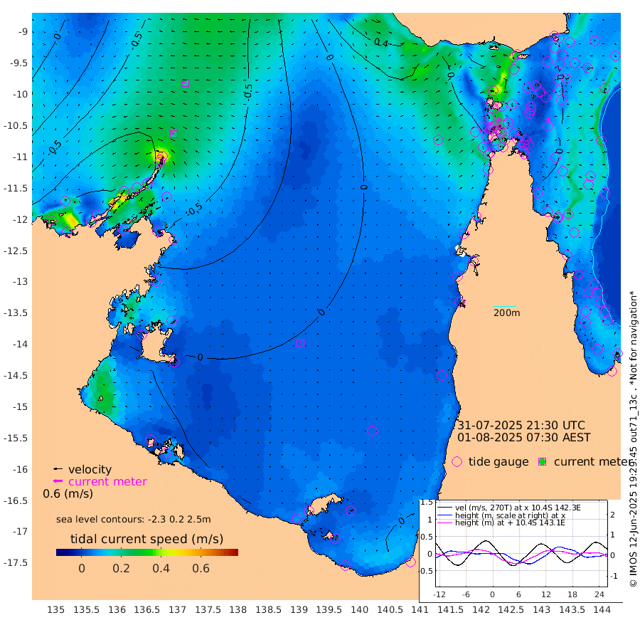 21cm/s -68T +3cm/s rms + 7cm/s -42T. ARA-GOC87 57m 4cm/s 3T +3cm/s rms + 2cm/s -2T. ARA-GOC87 60m 19cm/s -78T +2cm/s rms + 3cm/s 61T. ARA-GOC87 47m -27cm Daru -24cm Bobo Island -16cm Meer Island Barge -19cm Bramble Cay -22cm Unnamed Cay -24cm Pearce Cay -17cm Stephens Island -16cm Merrie England Shoals -20cm Mutacomal Reef -18cm Darnley Island Barge -13cm East Cay -21cm Yorke Island Barge -21cm Rennel Island -21cm Aureed Island -25cm Dungeness Reef -36cm Zagai Island -23cm Yam Island -55cm Dauan Island -49cm Saibai Island -50cm Phipi Reef -39cm Warrior Reef - West -42cm Mabuiag Island Barge -11cm Half Way Island -27cm Coconut Island -14cm Dugong Islet -24cm Poll Island -16cm Kirkcaldie Reef -34cm Suarji Island -27cm Sue Islet -28cm Hawkesbury Island -32cm Alert Patches -25cm Twin Island -51cm Badu Island -30cm St Pauls (Moa Island) -26cm Kubin (Moa Island) -27cm Ince Point -25cm Thursday Island -27cm Nardana Patches -32cm Turtle Head -24cm Round Island -33cm Goods Island -23cm Booby Island -24cm White Rocks Area 4cm Carpentaria -23cm Papou Point -31cm Bampfield Head -11cm Crab Island -12cm Red Wallis Island -15cm Packe Island -15cm Harrington Reef -5cm Herald Camp -2cm Sharp Point -19cm Red Island Point -22cm Possession Island -20cm Alpha Rock -23cm Frederick Point -29cm Wyborn Reef Light -29cm Tetley Island -18cm Triangle Reef -28cm Turtle Head Island -12cm Maclennan Cay -18cm Raine Island -22cm Mcsweeny Reef -21cm Collette Reef -19cm Shadwell Reef -21cm Hannibal Island -19cm Round Point 3cm Vrilya Point -10cm Cape Grenville -14cm Hicks Island -17cm Sir Charles Hardy Island -2cm Harvey Island -12cm Kay Reef -16cm Rocky Island -18cm Chapman Island -14cm Ham Reef -17cm Jubilee Reef -9cm Night Island -13cm Unnamed Reef No. 3 -16cm Morris Island -20cm 1st 3 Mile Opening -13cm Creech Reef -16cm Fife Island -16cm Eden Reef -10cm Stanley Island -8cm Normanby River -98cm Yabooma Island -128cm Hutchison River -101cm Elcho Island -90cm North West Crocodile Island -73cm Cape Wessel -98cm Stevens Island -92cm Guluwuru Island -84cm Hopeful Bay -82cm Auster Point -69cm Two Island Bay -112cm Cadell Strait -101cm Mallison Island -85cm Melville Bay (Gove Harbour) -89cm Truant Island -60cm Cape Arnhem -44cm Cape Grey -23cm Hawk Island 4cm Milner Bay (Groote Eylandt) 12cm Cape Beatrice 46cm West Island 53cm Centre Island 36cm Mornington Island 33cm West Wellesley Islands 15cm Bountiful Island 19cm Albert River Mouth 16cm Sweers Island 30cm Karumba 29cm Nassau River Offshore 18cm Christmas Creek 0cm Archer River -5cm Boyd Point -9cm Weipa (Humbug Point) 2cm Pennefather River 6cm Cullen Point