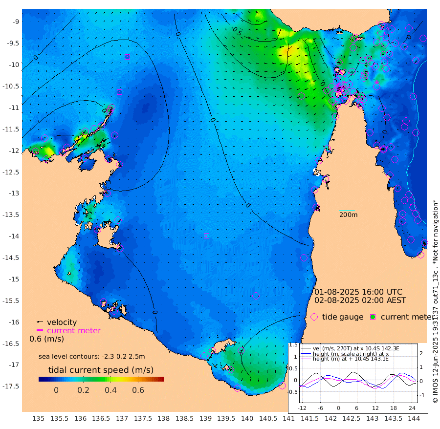 2cm/s -15T +3cm/s rms + 7cm/s -42T. ARA-GOC87 57m 11cm/s -144T +3cm/s rms + 2cm/s -2T. ARA-GOC87 60m 4cm/s -11T +2cm/s rms + 3cm/s 61T. ARA-GOC87 47m 24cm Daru 12cm Bobo Island 0cm Meer Island Barge 4cm Bramble Cay 11cm Unnamed Cay 4cm Pearce Cay 4cm Stephens Island 2cm Merrie England Shoals 17cm Mutacomal Reef 3cm Darnley Island Barge -1cm East Cay 10cm Yorke Island Barge 14cm Rennel Island 8cm Aureed Island 21cm Dungeness Reef 45cm Zagai Island 46cm Yam Island 87cm Dauan Island 77cm Saibai Island 70cm Phipi Reef 59cm Warrior Reef - West 51cm Mabuiag Island Barge 4cm Half Way Island 16cm Coconut Island 12cm Dugong Islet 26cm Poll Island 21cm Kirkcaldie Reef 34cm Suarji Island 28cm Sue Islet 28cm Hawkesbury Island 25cm Alert Patches 25cm Twin Island 43cm Badu Island 35cm St Pauls (Moa Island) 34cm Kubin (Moa Island) 30cm Ince Point 25cm Thursday Island 29cm Nardana Patches 32cm Turtle Head 28cm Round Island 25cm Goods Island 9cm Booby Island 12cm White Rocks Area -23cm Carpentaria 28cm Papou Point 13cm Bampfield Head 3cm Crab Island 9cm Red Wallis Island 22cm Packe Island 5cm Harrington Reef 26cm Herald Camp 9cm Sharp Point 18cm Red Island Point 17cm Possession Island 26cm Alpha Rock 19cm Frederick Point 19cm Wyborn Reef Light 22cm Tetley Island 5cm Triangle Reef 3cm Turtle Head Island 1cm Maclennan Cay 1cm Raine Island 7cm Mcsweeny Reef 6cm Collette Reef 5cm Shadwell Reef 3cm Hannibal Island 0cm Round Point -19cm Vrilya Point -4cm Cape Grenville 2cm Hicks Island 13cm Sir Charles Hardy Island -1cm Harvey Island -5cm Kay Reef 1cm Rocky Island 0cm Chapman Island 0cm Ham Reef 1cm Jubilee Reef -4cm Night Island -3cm Unnamed Reef No. 3 -1cm Morris Island 1cm 1st 3 Mile Opening -3cm Creech Reef 1cm Fife Island -5cm Eden Reef -6cm Stanley Island -7cm Normanby River 73cm Yabooma Island 90cm Hutchison River 70cm Elcho Island 68cm North West Crocodile Island 44cm Cape Wessel 64cm Stevens Island 62cm Guluwuru Island 53cm Hopeful Bay 45cm Auster Point 46cm Two Island Bay 77cm Cadell Strait 78cm Mallison Island 54cm Melville Bay (Gove Harbour) 55cm Truant Island 37cm Cape Arnhem 24cm Cape Grey 14cm Hawk Island -6cm Milner Bay (Groote Eylandt) -3cm Cape Beatrice -28cm West Island -37cm Centre Island 5cm Mornington Island 7cm West Wellesley Islands 32cm Bountiful Island 43cm Albert River Mouth 18cm Sweers Island 32cm Karumba 14cm Nassau River Offshore 18cm Christmas Creek 5cm Archer River 7cm Boyd Point 16cm Weipa (Humbug Point) -21cm Pennefather River -4cm Cullen Point