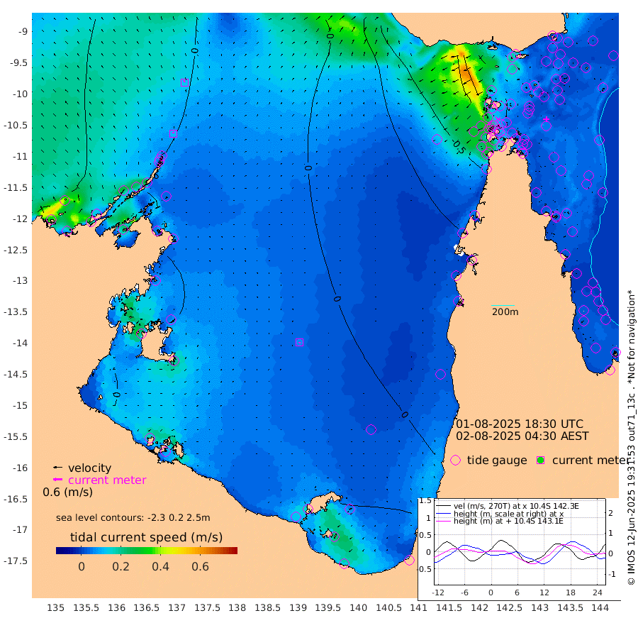 11cm/s -9T +3cm/s rms + 7cm/s -42T. ARA-GOC87 57m 7cm/s -154T +3cm/s rms + 2cm/s -2T. ARA-GOC87 60m 13cm/s -14T +2cm/s rms + 3cm/s 61T. ARA-GOC87 47m -1cm Daru -2cm Bobo Island 0cm Meer Island Barge 1cm Bramble Cay -3cm Unnamed Cay -15cm Pearce Cay -5cm Stephens Island -4cm Merrie England Shoals -1cm Mutacomal Reef 0cm Darnley Island Barge 2cm East Cay -2cm Yorke Island Barge -9cm Rennel Island -6cm Aureed Island -16cm Dungeness Reef 2cm Zagai Island -1cm Yam Island 6cm Dauan Island 18cm Saibai Island -9cm Phipi Reef 9cm Warrior Reef - West -23cm Mabuiag Island Barge -14cm Half Way Island -12cm Coconut Island -14cm Dugong Islet -15cm Poll Island -16cm Kirkcaldie Reef -27cm Suarji Island -7cm Sue Islet -72cm Hawkesbury Island -40cm Alert Patches -31cm Twin Island -63cm Badu Island -31cm St Pauls (Moa Island) -53cm Kubin (Moa Island) -40cm Ince Point -50cm Thursday Island -46cm Nardana Patches -56cm Turtle Head -58cm Round Island -73cm Goods Island -85cm Booby Island -84cm White Rocks Area -65cm Carpentaria -28cm Papou Point -83cm Bampfield Head -69cm Crab Island -72cm Red Wallis Island -56cm Packe Island -21cm Harrington Reef -57cm Herald Camp -1cm Sharp Point -51cm Red Island Point -49cm Possession Island -13cm Alpha Rock -23cm Frederick Point -7cm Wyborn Reef Light -7cm Tetley Island 1cm Triangle Reef -35cm Turtle Head Island -2cm Maclennan Cay 0cm Raine Island -5cm Mcsweeny Reef -1cm Collette Reef 2cm Shadwell Reef -1cm Hannibal Island -3cm Round Point -71cm Vrilya Point -1cm Cape Grenville -1cm Hicks Island 12cm Sir Charles Hardy Island -1cm Harvey Island 3cm Kay Reef 3cm Rocky Island 4cm Chapman Island 6cm Ham Reef 3cm Jubilee Reef 1cm Night Island 5cm Unnamed Reef No. 3 0cm Morris Island -7cm 1st 3 Mile Opening -1cm Creech Reef 7cm Fife Island 3cm Eden Reef 1cm Stanley Island 1cm Normanby River -33cm Yabooma Island -30cm Hutchison River -26cm Elcho Island -26cm North West Crocodile Island 9cm Cape Wessel -10cm Stevens Island 36cm Guluwuru Island -8cm Hopeful Bay -13cm Auster Point -5cm Two Island Bay 0cm Cadell Strait 169cm Mallison Island 21cm Melville Bay (Gove Harbour) 21cm Truant Island 21cm Cape Arnhem 10cm Cape Grey 13cm Hawk Island 7cm Milner Bay (Groote Eylandt) 11cm Cape Beatrice 8cm West Island 4cm Centre Island 35cm Mornington Island 33cm West Wellesley Islands 37cm Bountiful Island 51cm Albert River Mouth 33cm Sweers Island 42cm Karumba 26cm Nassau River Offshore 16cm Christmas Creek -16cm Archer River -23cm Boyd Point -26cm Weipa (Humbug Point) -50cm Pennefather River -47cm Cullen Point
