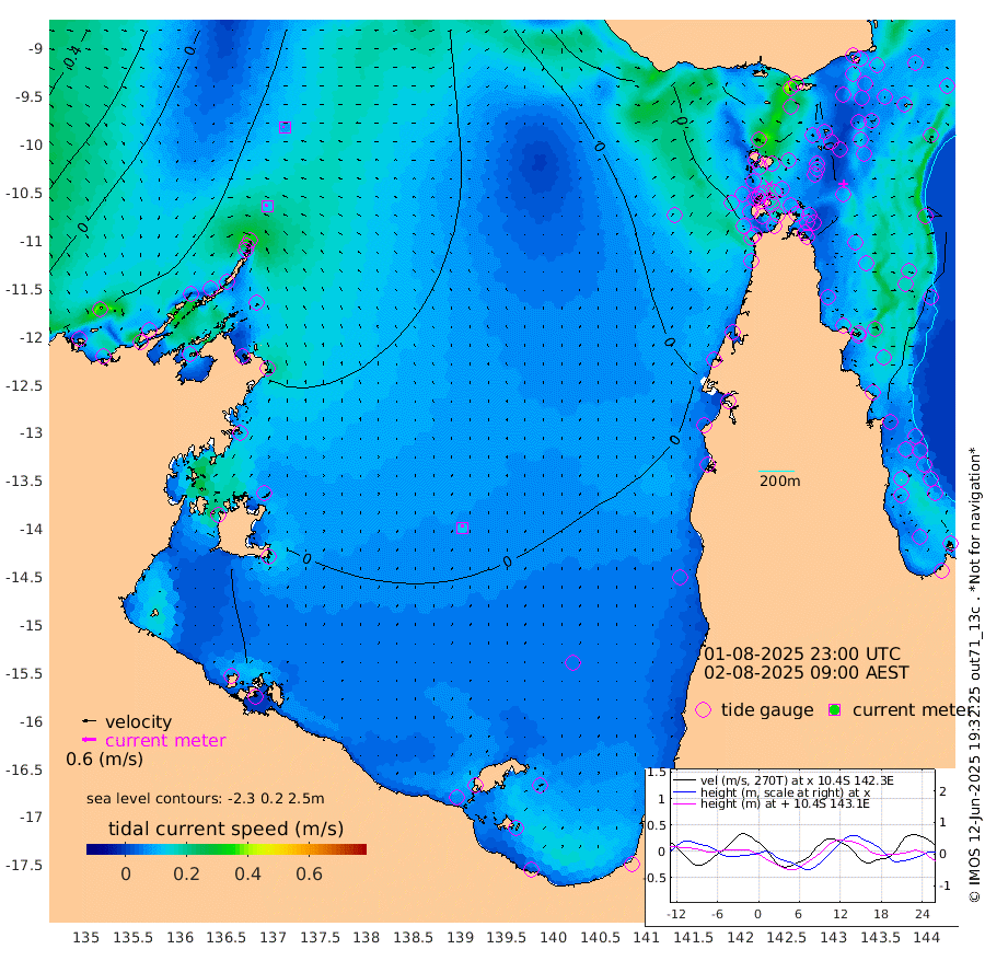 12cm/s -69T +3cm/s rms + 7cm/s -42T. ARA-GOC87 57m 13cm/s -4T +3cm/s rms + 2cm/s -2T. ARA-GOC87 60m 9cm/s -81T +2cm/s rms + 3cm/s 61T. ARA-GOC87 47m -26cm Daru -23cm Bobo Island -23cm Meer Island Barge -22cm Bramble Cay -22cm Unnamed Cay -19cm Pearce Cay -18cm Stephens Island -16cm Merrie England Shoals -17cm Mutacomal Reef -24cm Darnley Island Barge -21cm East Cay -25cm Yorke Island Barge -18cm Rennel Island -20cm Aureed Island -21cm Dungeness Reef -37cm Zagai Island -24cm Yam Island -60cm Dauan Island -62cm Saibai Island -52cm Phipi Reef -42cm Warrior Reef - West -40cm Mabuiag Island Barge -8cm Half Way Island -23cm Coconut Island -11cm Dugong Islet -18cm Poll Island -14cm Kirkcaldie Reef -26cm Suarji Island -28cm Sue Islet -23cm Hawkesbury Island -25cm Alert Patches -18cm Twin Island -42cm Badu Island -23cm St Pauls (Moa Island) -20cm Kubin (Moa Island) -21cm Ince Point -18cm Thursday Island -21cm Nardana Patches -26cm Turtle Head -19cm Round Island -25cm Goods Island -18cm Booby Island -12cm White Rocks Area -5cm Carpentaria -18cm Papou Point -29cm Bampfield Head -9cm Crab Island -8cm Red Wallis Island -10cm Packe Island -9cm Harrington Reef -11cm Herald Camp -3cm Sharp Point -17cm Red Island Point -16cm Possession Island -17cm Alpha Rock -18cm Frederick Point -24cm Wyborn Reef Light -23cm Tetley Island -24cm Triangle Reef -18cm Turtle Head Island -19cm Maclennan Cay -25cm Raine Island -22cm Mcsweeny Reef -24cm Collette Reef -27cm Shadwell Reef -23cm Hannibal Island -19cm Round Point 1cm Vrilya Point -15cm Cape Grenville -20cm Hicks Island -30cm Sir Charles Hardy Island -4cm Harvey Island -20cm Kay Reef -25cm Rocky Island -27cm Chapman Island -26cm Ham Reef -26cm Jubilee Reef -16cm Night Island -23cm Unnamed Reef No. 3 -23cm Morris Island -27cm 1st 3 Mile Opening -22cm Creech Reef -22cm Fife Island -26cm Eden Reef -20cm Stanley Island -15cm Normanby River -31cm Yabooma Island -56cm Hutchison River -38cm Elcho Island -28cm North West Crocodile Island -40cm Cape Wessel -40cm Stevens Island -75cm Guluwuru Island -34cm Hopeful Bay -38cm Auster Point -28cm Two Island Bay -60cm Cadell Strait -135cm Mallison Island -62cm Melville Bay (Gove Harbour) -64cm Truant Island -47cm Cape Arnhem -32cm Cape Grey -13cm Hawk Island 16cm Milner Bay (Groote Eylandt) 20cm Cape Beatrice 48cm West Island 54cm Centre Island 28cm Mornington Island 28cm West Wellesley Islands 13cm Bountiful Island 29cm Albert River Mouth 32cm Sweers Island 34cm Karumba 18cm Nassau River Offshore 0cm Christmas Creek -13cm Archer River -18cm Boyd Point -20cm Weipa (Humbug Point) -2cm Pennefather River -2cm Cullen Point