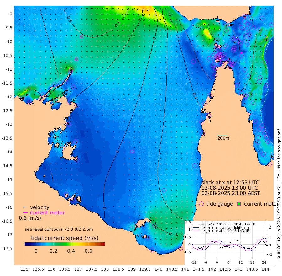 22cm/s -99T +3cm/s rms + 7cm/s -42T. ARA-GOC87 57m 10cm/s -170T +3cm/s rms + 2cm/s -2T. ARA-GOC87 60m 24cm/s -108T +2cm/s rms + 3cm/s 61T. ARA-GOC87 47m 50cm Daru 44cm Bobo Island 19cm Meer Island Barge 24cm Bramble Cay 41cm Unnamed Cay 51cm Pearce Cay 40cm Stephens Island 33cm Merrie England Shoals 48cm Mutacomal Reef 31cm Darnley Island Barge 22cm East Cay 42cm Yorke Island Barge 56cm Rennel Island 50cm Aureed Island 70cm Dungeness Reef 64cm Zagai Island 75cm Yam Island 83cm Dauan Island 65cm Saibai Island 86cm Phipi Reef 72cm Warrior Reef - West 85cm Mabuiag Island Barge 53cm Half Way Island 59cm Coconut Island 66cm Dugong Islet 73cm Poll Island 75cm Kirkcaldie Reef 101cm Suarji Island 64cm Sue Islet 117cm Hawkesbury Island 99cm Alert Patches 91cm Twin Island 112cm Badu Island 96cm St Pauls (Moa Island) 107cm Kubin (Moa Island) 99cm Ince Point 103cm Thursday Island 102cm Nardana Patches 112cm Turtle Head 103cm Round Island 119cm Goods Island 119cm Booby Island 124cm White Rocks Area 83cm Carpentaria 84cm Papou Point 119cm Bampfield Head 89cm Crab Island 111cm Red Wallis Island 105cm Packe Island 71cm Harrington Reef 112cm Herald Camp 21cm Sharp Point 97cm Red Island Point 95cm Possession Island 69cm Alpha Rock 78cm Frederick Point 51cm Wyborn Reef Light 55cm Tetley Island 25cm Triangle Reef 66cm Turtle Head Island 30cm Maclennan Cay 16cm Raine Island 41cm Mcsweeny Reef 31cm Collette Reef 19cm Shadwell Reef 30cm Hannibal Island 26cm Round Point 74cm Vrilya Point 25cm Cape Grenville 27cm Hicks Island 29cm Sir Charles Hardy Island 9cm Harvey Island 16cm Kay Reef 18cm Rocky Island 13cm Chapman Island 13cm Ham Reef 16cm Jubilee Reef 15cm Night Island 14cm Unnamed Reef No. 3 18cm Morris Island 26cm 1st 3 Mile Opening 20cm Creech Reef 12cm Fife Island 13cm Eden Reef 16cm Stanley Island 17cm Normanby River -11cm Yabooma Island -15cm Hutchison River -23cm Elcho Island -18cm North West Crocodile Island -42cm Cape Wessel -45cm Stevens Island -54cm Guluwuru Island -44cm Hopeful Bay -32cm Auster Point -41cm Two Island Bay -50cm Cadell Strait -211cm Mallison Island -45cm Melville Bay (Gove Harbour) -47cm Truant Island -36cm Cape Arnhem -20cm Cape Grey -25cm Hawk Island -23cm Milner Bay (Groote Eylandt) -13cm Cape Beatrice -5cm West Island -8cm Centre Island -6cm Mornington Island 3cm West Wellesley Islands 11cm Bountiful Island -16cm Albert River Mouth -30cm Sweers Island -11cm Karumba 13cm Nassau River Offshore 31cm Christmas Creek 43cm Archer River 54cm Boyd Point 62cm Weipa (Humbug Point) 44cm Pennefather River 67cm Cullen Point
