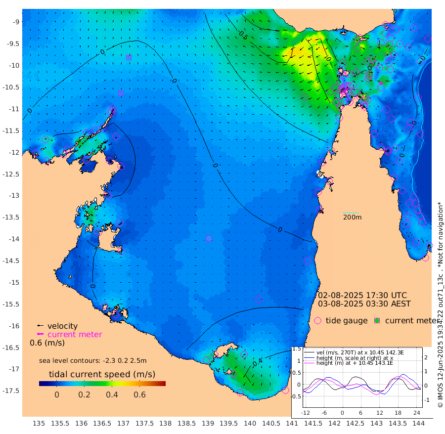 8cm/s -23T +3cm/s rms + 7cm/s -42T. ARA-GOC87 57m 9cm/s -131T +3cm/s rms + 2cm/s -2T. ARA-GOC87 60m 10cm/s -19T +2cm/s rms + 3cm/s 61T. ARA-GOC87 47m -6cm Daru -14cm Bobo Island -9cm Meer Island Barge -11cm Bramble Cay -13cm Unnamed Cay -25cm Pearce Cay -18cm Stephens Island -19cm Merrie England Shoals -13cm Mutacomal Reef -12cm Darnley Island Barge -11cm East Cay -12cm Yorke Island Barge -16cm Rennel Island -18cm Aureed Island -14cm Dungeness Reef 11cm Zagai Island 9cm Yam Island 44cm Dauan Island 44cm Saibai Island 31cm Phipi Reef 22cm Warrior Reef - West 7cm Mabuiag Island Barge -24cm Half Way Island -18cm Coconut Island -21cm Dugong Islet -14cm Poll Island -13cm Kirkcaldie Reef -14cm Suarji Island -4cm Sue Islet -31cm Hawkesbury Island -23cm Alert Patches -22cm Twin Island -14cm Badu Island -14cm St Pauls (Moa Island) -22cm Kubin (Moa Island) -19cm Ince Point -25cm Thursday Island -21cm Nardana Patches -22cm Turtle Head -26cm Round Island -31cm Goods Island -45cm Booby Island -46cm White Rocks Area -55cm Carpentaria -14cm Papou Point -48cm Bampfield Head -36cm Crab Island -43cm Red Wallis Island -31cm Packe Island -31cm Harrington Reef -26cm Herald Camp 1cm Sharp Point -23cm Red Island Point -30cm Possession Island -13cm Alpha Rock -22cm Frederick Point -16cm Wyborn Reef Light -15cm Tetley Island -9cm Triangle Reef -37cm Turtle Head Island -11cm Maclennan Cay -5cm Raine Island -16cm Mcsweeny Reef -12cm Collette Reef -5cm Shadwell Reef -15cm Hannibal Island -18cm Round Point -49cm Vrilya Point -17cm Cape Grenville -11cm Hicks Island 1cm Sir Charles Hardy Island -5cm Harvey Island -12cm Kay Reef -6cm Rocky Island -7cm Chapman Island -4cm Ham Reef -5cm Jubilee Reef -11cm Night Island -8cm Unnamed Reef No. 3 -9cm Morris Island -8cm 1st 3 Mile Opening -10cm Creech Reef -7cm Fife Island -10cm Eden Reef -11cm Stanley Island -14cm Normanby River 21cm Yabooma Island 33cm Hutchison River 25cm Elcho Island 25cm North West Crocodile Island 17cm Cape Wessel 24cm Stevens Island 46cm Guluwuru Island 20cm Hopeful Bay 11cm Auster Point 15cm Two Island Bay 40cm Cadell Strait 111cm Mallison Island 35cm Melville Bay (Gove Harbour) 32cm Truant Island 26cm Cape Arnhem 22cm Cape Grey 16cm Hawk Island 7cm Milner Bay (Groote Eylandt) 12cm Cape Beatrice 0cm West Island -7cm Centre Island 39cm Mornington Island 37cm West Wellesley Islands 64cm Bountiful Island 84cm Albert River Mouth 61cm Sweers Island 73cm Karumba 35cm Nassau River Offshore 27cm Christmas Creek -1cm Archer River -8cm Boyd Point -3cm Weipa (Humbug Point) -36cm Pennefather River -31cm Cullen Point