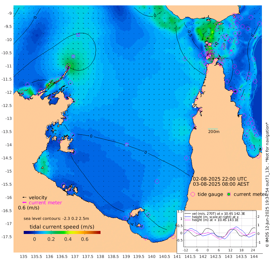 14cm/s -37T +3cm/s rms + 7cm/s -42T. ARA-GOC87 57m 12cm/s -4T +3cm/s rms + 2cm/s -2T. ARA-GOC87 60m 11cm/s -35T +2cm/s rms + 3cm/s 61T. ARA-GOC87 47m -15cm Daru -7cm Bobo Island -8cm Meer Island Barge -2cm Bramble Cay -5cm Unnamed Cay -9cm Pearce Cay -4cm Stephens Island 4cm Merrie England Shoals -1cm Mutacomal Reef -7cm Darnley Island Barge -2cm East Cay -11cm Yorke Island Barge -9cm Rennel Island -7cm Aureed Island -22cm Dungeness Reef -36cm Zagai Island -30cm Yam Island -78cm Dauan Island -65cm Saibai Island -74cm Phipi Reef -43cm Warrior Reef - West -65cm Mabuiag Island Barge -2cm Half Way Island -16cm Coconut Island -8cm Dugong Islet -22cm Poll Island -20cm Kirkcaldie Reef -40cm Suarji Island -27cm Sue Islet -85cm Hawkesbury Island -47cm Alert Patches -36cm Twin Island -94cm Badu Island -46cm St Pauls (Moa Island) -69cm Kubin (Moa Island) -51cm Ince Point -56cm Thursday Island -57cm Nardana Patches -71cm Turtle Head -73cm Round Island -82cm Goods Island -83cm Booby Island -72cm White Rocks Area -49cm Carpentaria -38cm Papou Point -93cm Bampfield Head -65cm Crab Island -65cm Red Wallis Island -59cm Packe Island -6cm Harrington Reef -73cm Herald Camp -6cm Sharp Point -56cm Red Island Point -53cm Possession Island -22cm Alpha Rock -25cm Frederick Point -13cm Wyborn Reef Light -15cm Tetley Island -10cm Triangle Reef -25cm Turtle Head Island -6cm Maclennan Cay -12cm Raine Island -8cm Mcsweeny Reef -6cm Collette Reef -10cm Shadwell Reef -2cm Hannibal Island -1cm Round Point -52cm Vrilya Point 3cm Cape Grenville -6cm Hicks Island -8cm Sir Charles Hardy Island 0cm Harvey Island 3cm Kay Reef -8cm Rocky Island -7cm Chapman Island -7cm Ham Reef -9cm Jubilee Reef -2cm Night Island -3cm Unnamed Reef No. 3 -6cm Morris Island -17cm 1st 3 Mile Opening -8cm Creech Reef -3cm Fife Island -4cm Eden Reef -2cm Stanley Island 5cm Normanby River -60cm Yabooma Island -79cm Hutchison River -58cm Elcho Island -51cm North West Crocodile Island -29cm Cape Wessel -46cm Stevens Island -45cm Guluwuru Island -40cm Hopeful Bay -43cm Auster Point -37cm Two Island Bay -64cm Cadell Strait -6cm Mallison Island -43cm Melville Bay (Gove Harbour) -45cm Truant Island -29cm Cape Arnhem -18cm Cape Grey -1cm Hawk Island 26cm Milner Bay (Groote Eylandt) 31cm Cape Beatrice 59cm West Island 62cm Centre Island 48cm Mornington Island 51cm West Wellesley Islands 35cm Bountiful Island 55cm Albert River Mouth 52cm Sweers Island 50cm Karumba 28cm Nassau River Offshore 2cm Christmas Creek -27cm Archer River -39cm Boyd Point -45cm Weipa (Humbug Point) -37cm Pennefather River -45cm Cullen Point