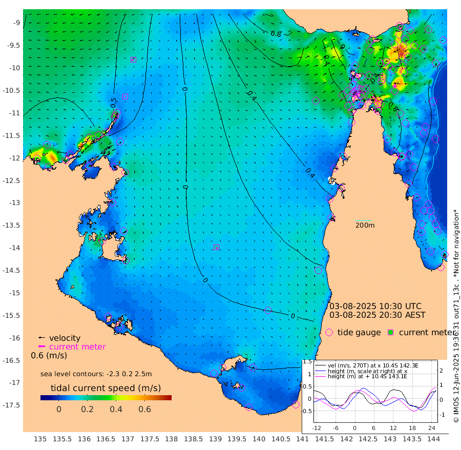 11cm/s -111T +3cm/s rms + 7cm/s -42T. ARA-GOC87 57m 18cm/s 157T +3cm/s rms + 2cm/s -2T. ARA-GOC87 60m 16cm/s -113T +2cm/s rms + 3cm/s 61T. ARA-GOC87 47m 70cm Daru 78cm Bobo Island 64cm Meer Island Barge 75cm Bramble Cay 81cm Unnamed Cay 86cm Pearce Cay 81cm Stephens Island 87cm Merrie England Shoals 82cm Mutacomal Reef 77cm Darnley Island Barge 73cm East Cay 76cm Yorke Island Barge 81cm Rennel Island 82cm Aureed Island 72cm Dungeness Reef 42cm Zagai Island 44cm Yam Island 7cm Dauan Island 16cm Saibai Island 20cm Phipi Reef 39cm Warrior Reef - West 31cm Mabuiag Island Barge 79cm Half Way Island 79cm Coconut Island 81cm Dugong Islet 65cm Poll Island 68cm Kirkcaldie Reef 68cm Suarji Island 63cm Sue Islet 63cm Hawkesbury Island 73cm Alert Patches 69cm Twin Island 47cm Badu Island 56cm St Pauls (Moa Island) 51cm Kubin (Moa Island) 59cm Ince Point 60cm Thursday Island 58cm Nardana Patches 61cm Turtle Head 55cm Round Island 64cm Goods Island 69cm Booby Island 72cm White Rocks Area 79cm Carpentaria 51cm Papou Point 84cm Bampfield Head 48cm Crab Island 68cm Red Wallis Island 63cm Packe Island 92cm Harrington Reef 60cm Herald Camp 11cm Sharp Point 57cm Red Island Point 64cm Possession Island 63cm Alpha Rock 76cm Frederick Point 80cm Wyborn Reef Light 76cm Tetley Island 63cm Triangle Reef 87cm Turtle Head Island 68cm Maclennan Cay 55cm Raine Island 80cm Mcsweeny Reef 78cm Collette Reef 63cm Shadwell Reef 84cm Hannibal Island 82cm Round Point 54cm Vrilya Point 80cm Cape Grenville 69cm Hicks Island 75cm Sir Charles Hardy Island 23cm Harvey Island 79cm Kay Reef 65cm Rocky Island 68cm Chapman Island 64cm Ham Reef 62cm Jubilee Reef 59cm Night Island 68cm Unnamed Reef No. 3 67cm Morris Island 61cm 1st 3 Mile Opening 67cm Creech Reef 61cm Fife Island 74cm Eden Reef 70cm Stanley Island 75cm Normanby River -94cm Yabooma Island -100cm Hutchison River -94cm Elcho Island -96cm North West Crocodile Island -47cm Cape Wessel -86cm Stevens Island -45cm Guluwuru Island -72cm Hopeful Bay -57cm Auster Point -71cm Two Island Bay -97cm Cadell Strait -36cm Mallison Island -46cm Melville Bay (Gove Harbour) -44cm Truant Island -31cm Cape Arnhem -26cm Cape Grey -25cm Hawk Island -35cm Milner Bay (Groote Eylandt) -29cm Cape Beatrice -19cm West Island -15cm Centre Island -31cm Mornington Island -24cm West Wellesley Islands -46cm Bountiful Island -99cm Albert River Mouth -94cm Sweers Island -86cm Karumba -11cm Nassau River Offshore 16cm Christmas Creek 38cm Archer River 46cm Boyd Point 41cm Weipa (Humbug Point) 42cm Pennefather River 48cm Cullen Point