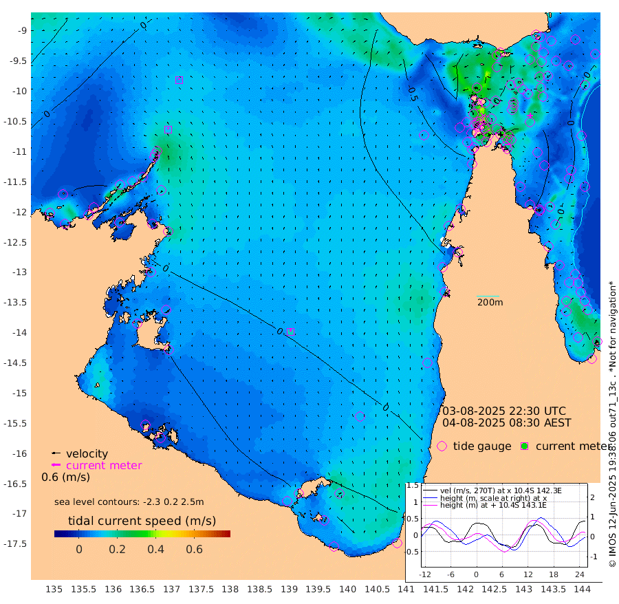 12cm/s -14T +3cm/s rms + 7cm/s -42T. ARA-GOC87 57m 16cm/s -5T +3cm/s rms + 2cm/s -2T. ARA-GOC87 60m 10cm/s 2T +2cm/s rms + 3cm/s 61T. ARA-GOC87 47m -5cm Daru 3cm Bobo Island -7cm Meer Island Barge 6cm Bramble Cay 4cm Unnamed Cay 1cm Pearce Cay 3cm Stephens Island 15cm Merrie England Shoals 10cm Mutacomal Reef -2cm Darnley Island Barge 0cm East Cay -4cm Yorke Island Barge -1cm Rennel Island 0cm Aureed Island -16cm Dungeness Reef -31cm Zagai Island -26cm Yam Island -80cm Dauan Island -65cm Saibai Island -73cm Phipi Reef -39cm Warrior Reef - West -66cm Mabuiag Island Barge 4cm Half Way Island -7cm Coconut Island -2cm Dugong Islet -16cm Poll Island -15cm Kirkcaldie Reef -35cm Suarji Island -21cm Sue Islet -99cm Hawkesbury Island -45cm Alert Patches -33cm Twin Island -101cm Badu Island -44cm St Pauls (Moa Island) -80cm Kubin (Moa Island) -53cm Ince Point -61cm Thursday Island -60cm Nardana Patches -79cm Turtle Head -87cm Round Island -96cm Goods Island -101cm Booby Island -85cm White Rocks Area -70cm Carpentaria -36cm Papou Point -115cm Bampfield Head -82cm Crab Island -82cm Red Wallis Island -72cm Packe Island 3cm Harrington Reef -98cm Herald Camp -5cm Sharp Point -62cm Red Island Point -58cm Possession Island -17cm Alpha Rock -19cm Frederick Point -1cm Wyborn Reef Light -5cm Tetley Island -8cm Triangle Reef -16cm Turtle Head Island -6cm Maclennan Cay -12cm Raine Island 0cm Mcsweeny Reef 1cm Collette Reef -8cm Shadwell Reef 6cm Hannibal Island 6cm Round Point -70cm Vrilya Point 7cm Cape Grenville -4cm Hicks Island -7cm Sir Charles Hardy Island 0cm Harvey Island 6cm Kay Reef -7cm Rocky Island -5cm Chapman Island -7cm Ham Reef -8cm Jubilee Reef -3cm Night Island -3cm Unnamed Reef No. 3 -5cm Morris Island -19cm 1st 3 Mile Opening -8cm Creech Reef -2cm Fife Island -4cm Eden Reef -2cm Stanley Island 7cm Normanby River -37cm Yabooma Island -51cm Hutchison River -34cm Elcho Island -28cm North West Crocodile Island -11cm Cape Wessel -19cm Stevens Island -27cm Guluwuru Island -19cm Hopeful Bay -24cm Auster Point -23cm Two Island Bay -39cm Cadell Strait 19cm Mallison Island -25cm Melville Bay (Gove Harbour) -28cm Truant Island -17cm Cape Arnhem -6cm Cape Grey 8cm Hawk Island 37cm Milner Bay (Groote Eylandt) 40cm Cape Beatrice 65cm West Island 67cm Centre Island 54cm Mornington Island 59cm West Wellesley Islands 46cm Bountiful Island 72cm Albert River Mouth 73cm Sweers Island 62cm Karumba 28cm Nassau River Offshore -5cm Christmas Creek -37cm Archer River -52cm Boyd Point -59cm Weipa (Humbug Point) -49cm Pennefather River -65cm Cullen Point