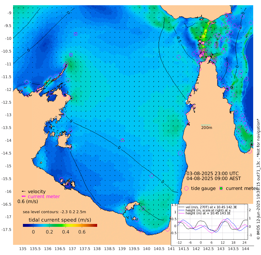 10cm/s -13T +3cm/s rms + 7cm/s -42T. ARA-GOC87 57m 18cm/s -2T +3cm/s rms + 2cm/s -2T. ARA-GOC87 60m 8cm/s 9T +2cm/s rms + 3cm/s 61T. ARA-GOC87 47m -6cm Daru 2cm Bobo Island -14cm Meer Island Barge -1cm Bramble Cay -1cm Unnamed Cay 0cm Pearce Cay -1cm Stephens Island 9cm Merrie England Shoals 8cm Mutacomal Reef -7cm Darnley Island Barge -7cm East Cay -7cm Yorke Island Barge -2cm Rennel Island 0cm Aureed Island -13cm Dungeness Reef -26cm Zagai Island -22cm Yam Island -74cm Dauan Island -62cm Saibai Island -68cm Phipi Reef -35cm Warrior Reef - West -57cm Mabuiag Island Barge 4cm Half Way Island -5cm Coconut Island 0cm Dugong Islet -10cm Poll Island -11cm Kirkcaldie Reef -26cm Suarji Island -19cm Sue Islet -88cm Hawkesbury Island -36cm Alert Patches -24cm Twin Island -90cm Badu Island -33cm St Pauls (Moa Island) -68cm Kubin (Moa Island) -43cm Ince Point -50cm Thursday Island -49cm Nardana Patches -68cm Turtle Head -76cm Round Island -84cm Goods Island -89cm Booby Island -71cm White Rocks Area -61cm Carpentaria -27cm Papou Point -103cm Bampfield Head -72cm Crab Island -70cm Red Wallis Island -61cm Packe Island 6cm Harrington Reef -88cm Herald Camp -3cm Sharp Point -53cm Red Island Point -48cm Possession Island -12cm Alpha Rock -13cm Frederick Point -1cm Wyborn Reef Light -3cm Tetley Island -13cm Triangle Reef -12cm Turtle Head Island -12cm Maclennan Cay -19cm Raine Island -3cm Mcsweeny Reef -4cm Collette Reef -15cm Shadwell Reef -1cm Hannibal Island 0cm Round Point -61cm Vrilya Point 0cm Cape Grenville -10cm Hicks Island -16cm Sir Charles Hardy Island -2cm Harvey Island -3cm Kay Reef -15cm Rocky Island -14cm Chapman Island -16cm Ham Reef -17cm Jubilee Reef -9cm Night Island -11cm Unnamed Reef No. 3 -14cm Morris Island -25cm 1st 3 Mile Opening -16cm Creech Reef -9cm Fife Island -14cm Eden Reef -11cm Stanley Island -2cm Normanby River -29cm Yabooma Island -44cm Hutchison River -28cm Elcho Island -21cm North West Crocodile Island -9cm Cape Wessel -15cm Stevens Island -32cm Guluwuru Island -16cm Hopeful Bay -20cm Auster Point -18cm Two Island Bay -36cm Cadell Strait -15cm Mallison Island -28cm Melville Bay (Gove Harbour) -29cm Truant Island -19cm Cape Arnhem -8cm Cape Grey 6cm Hawk Island 37cm Milner Bay (Groote Eylandt) 39cm Cape Beatrice 65cm West Island 67cm Centre Island 46cm Mornington Island 52cm West Wellesley Islands 37cm Bountiful Island 63cm Albert River Mouth 65cm Sweers Island 53cm Karumba 21cm Nassau River Offshore -11cm Christmas Creek -39cm Archer River -52cm Boyd Point -59cm Weipa (Humbug Point) -45cm Pennefather River -58cm Cullen Point