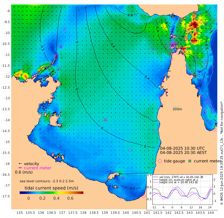 7cm/s -147T +3cm/s rms + 7cm/s -42T. ARA-GOC87 57m 22cm/s 160T +3cm/s rms + 2cm/s -2T. ARA-GOC87 60m 12cm/s -123T +2cm/s rms + 3cm/s 61T. ARA-GOC87 47m 89cm Daru 95cm Bobo Island 79cm Meer Island Barge 96cm Bramble Cay 104cm Unnamed Cay 103cm Pearce Cay 99cm Stephens Island 112cm Merrie England Shoals 106cm Mutacomal Reef 95cm Darnley Island Barge 89cm East Cay 93cm Yorke Island Barge 99cm Rennel Island 96cm Aureed Island 85cm Dungeness Reef 52cm Zagai Island 53cm Yam Island 13cm Dauan Island 22cm Saibai Island 26cm Phipi Reef 50cm Warrior Reef - West 36cm Mabuiag Island Barge 94cm Half Way Island 95cm Coconut Island 95cm Dugong Islet 77cm Poll Island 79cm Kirkcaldie Reef 73cm Suarji Island 75cm Sue Islet 71cm Hawkesbury Island 82cm Alert Patches 77cm Twin Island 52cm Badu Island 62cm St Pauls (Moa Island) 58cm Kubin (Moa Island) 65cm Ince Point 64cm Thursday Island 63cm Nardana Patches 65cm Turtle Head 63cm Round Island 68cm Goods Island 69cm Booby Island 72cm White Rocks Area 74cm Carpentaria 56cm Papou Point 91cm Bampfield Head 48cm Crab Island 69cm Red Wallis Island 71cm Packe Island 106cm Harrington Reef 66cm Herald Camp 11cm Sharp Point 58cm Red Island Point 70cm Possession Island 77cm Alpha Rock 88cm Frederick Point 103cm Wyborn Reef Light 99cm Tetley Island 78cm Triangle Reef 106cm Turtle Head Island 80cm Maclennan Cay 68cm Raine Island 99cm Mcsweeny Reef 98cm Collette Reef 80cm Shadwell Reef 107cm Hannibal Island 105cm Round Point 52cm Vrilya Point 99cm Cape Grenville 85cm Hicks Island 92cm Sir Charles Hardy Island 28cm Harvey Island 98cm Kay Reef 79cm Rocky Island 83cm Chapman Island 78cm Ham Reef 76cm Jubilee Reef 72cm Night Island 82cm Unnamed Reef No. 3 82cm Morris Island 73cm 1st 3 Mile Opening 79cm Creech Reef 77cm Fife Island 91cm Eden Reef 87cm Stanley Island 91cm Normanby River -72cm Yabooma Island -73cm Hutchison River -73cm Elcho Island -77cm North West Crocodile Island -26cm Cape Wessel -57cm Stevens Island -19cm Guluwuru Island -46cm Hopeful Bay -36cm Auster Point -49cm Two Island Bay -69cm Cadell Strait 43cm Mallison Island -23cm Melville Bay (Gove Harbour) -19cm Truant Island -15cm Cape Arnhem -22cm Cape Grey -20cm Hawk Island -43cm Milner Bay (Groote Eylandt) -39cm Cape Beatrice -41cm West Island -37cm Centre Island -47cm Mornington Island -41cm West Wellesley Islands -66cm Bountiful Island -121cm Albert River Mouth -117cm Sweers Island -108cm Karumba -20cm Nassau River Offshore 13cm Christmas Creek 39cm Archer River 47cm Boyd Point 42cm Weipa (Humbug Point) 44cm Pennefather River 49cm Cullen Point