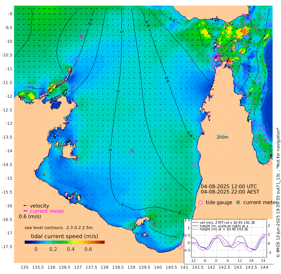 19cm/s -102T +3cm/s rms + 7cm/s -42T. ARA-GOC87 57m 22cm/s 169T +3cm/s rms + 2cm/s -2T. ARA-GOC87 60m 24cm/s -105T +2cm/s rms + 3cm/s 61T. ARA-GOC87 47m 99cm Daru 100cm Bobo Island 57cm Meer Island Barge 76cm Bramble Cay 95cm Unnamed Cay 106cm Pearce Cay 91cm Stephens Island 95cm Merrie England Shoals 108cm Mutacomal Reef 82cm Darnley Island Barge 69cm East Cay 92cm Yorke Island Barge 105cm Rennel Island 104cm Aureed Island 108cm Dungeness Reef 89cm Zagai Island 95cm Yam Island 75cm Dauan Island 71cm Saibai Island 85cm Phipi Reef 95cm Warrior Reef - West 85cm Mabuiag Island Barge 99cm Half Way Island 111cm Coconut Island 110cm Dugong Islet 109cm Poll Island 107cm Kirkcaldie Reef 126cm Suarji Island 101cm Sue Islet 112cm Hawkesbury Island 125cm Alert Patches 120cm Twin Island 98cm Badu Island 114cm St Pauls (Moa Island) 103cm Kubin (Moa Island) 112cm Ince Point 111cm Thursday Island 110cm Nardana Patches 112cm Turtle Head 103cm Round Island 108cm Goods Island 105cm Booby Island 112cm White Rocks Area 90cm Carpentaria 99cm Papou Point 121cm Bampfield Head 77cm Crab Island 106cm Red Wallis Island 112cm Packe Island 124cm Harrington Reef 108cm Herald Camp 27cm Sharp Point 99cm Red Island Point 112cm Possession Island 106cm Alpha Rock 120cm Frederick Point 109cm Wyborn Reef Light 110cm Tetley Island 67cm Triangle Reef 115cm Turtle Head Island 67cm Maclennan Cay 46cm Raine Island 94cm Mcsweeny Reef 85cm Collette Reef 60cm Shadwell Reef 89cm Hannibal Island 85cm Round Point 70cm Vrilya Point 78cm Cape Grenville 69cm Hicks Island 74cm Sir Charles Hardy Island 23cm Harvey Island 68cm Kay Reef 56cm Rocky Island 58cm Chapman Island 52cm Ham Reef 52cm Jubilee Reef 52cm Night Island 57cm Unnamed Reef No. 3 57cm Morris Island 52cm 1st 3 Mile Opening 57cm Creech Reef 56cm Fife Island 56cm Eden Reef 58cm Stanley Island 62cm Normanby River -85cm Yabooma Island -93cm Hutchison River -93cm Elcho Island -91cm North West Crocodile Island -55cm Cape Wessel -88cm Stevens Island -61cm Guluwuru Island -77cm Hopeful Bay -61cm Auster Point -76cm Two Island Bay -99cm Cadell Strait -94cm Mallison Island -54cm Melville Bay (Gove Harbour) -53cm Truant Island -37cm Cape Arnhem -33cm Cape Grey -28cm Hawk Island -42cm Milner Bay (Groote Eylandt) -32cm Cape Beatrice -23cm West Island -22cm Centre Island -23cm Mornington Island -16cm West Wellesley Islands -32cm Bountiful Island -87cm Albert River Mouth -88cm Sweers Island -69cm Karumba 5cm Nassau River Offshore 34cm Christmas Creek 50cm Archer River 60cm Boyd Point 60cm Weipa (Humbug Point) 50cm Pennefather River 68cm Cullen Point