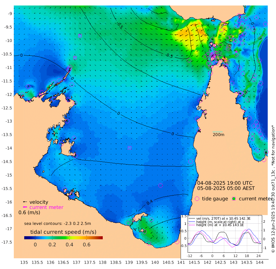 14cm/s -38T +3cm/s rms + 7cm/s -42T. ARA-GOC87 57m 10cm/s -88T +3cm/s rms + 2cm/s -2T. ARA-GOC87 60m 13cm/s -26T +2cm/s rms + 3cm/s 61T. ARA-GOC87 47m -36cm Daru -39cm Bobo Island -7cm Meer Island Barge -16cm Bramble Cay -29cm Unnamed Cay -45cm Pearce Cay -30cm Stephens Island -30cm Merrie England Shoals -40cm Mutacomal Reef -21cm Darnley Island Barge -9cm East Cay -30cm Yorke Island Barge -40cm Rennel Island -43cm Aureed Island -44cm Dungeness Reef -39cm Zagai Island -39cm Yam Island -22cm Dauan Island -15cm Saibai Island -17cm Phipi Reef -33cm Warrior Reef - West -45cm Mabuiag Island Barge -42cm Half Way Island -52cm Coconut Island -47cm Dugong Islet -56cm Poll Island -45cm Kirkcaldie Reef -67cm Suarji Island -43cm Sue Islet -69cm Hawkesbury Island -70cm Alert Patches -70cm Twin Island -60cm Badu Island -69cm St Pauls (Moa Island) -68cm Kubin (Moa Island) -67cm Ince Point -71cm Thursday Island -69cm Nardana Patches -65cm Turtle Head -65cm Round Island -68cm Goods Island -76cm Booby Island -81cm White Rocks Area -79cm Carpentaria -58cm Papou Point -88cm Bampfield Head -57cm Crab Island -78cm Red Wallis Island -74cm Packe Island -62cm Harrington Reef -61cm Herald Camp -13cm Sharp Point -50cm Red Island Point -68cm Possession Island -59cm Alpha Rock -65cm Frederick Point -52cm Wyborn Reef Light -56cm Tetley Island -19cm Triangle Reef -64cm Turtle Head Island -13cm Maclennan Cay 0cm Raine Island -34cm Mcsweeny Reef -23cm Collette Reef -7cm Shadwell Reef -24cm Hannibal Island -24cm Round Point -61cm Vrilya Point -17cm Cape Grenville -11cm Hicks Island -5cm Sir Charles Hardy Island -5cm Harvey Island -7cm Kay Reef -1cm Rocky Island -3cm Chapman Island 0cm Ham Reef 0cm Jubilee Reef -8cm Night Island -4cm Unnamed Reef No. 3 -3cm Morris Island -3cm 1st 3 Mile Opening -4cm Creech Reef -8cm Fife Island 2cm Eden Reef -2cm Stanley Island -4cm Normanby River 0cm Yabooma Island 6cm Hutchison River 6cm Elcho Island 10cm North West Crocodile Island -12cm Cape Wessel -2cm Stevens Island 16cm Guluwuru Island 3cm Hopeful Bay -12cm Auster Point -7cm Two Island Bay 12cm Cadell Strait 60cm Mallison Island 7cm Melville Bay (Gove Harbour) -2cm Truant Island 4cm Cape Arnhem 18cm Cape Grey 17cm Hawk Island 23cm Milner Bay (Groote Eylandt) 31cm Cape Beatrice 32cm West Island 30cm Centre Island 77cm Mornington Island 73cm West Wellesley Islands 109cm Bountiful Island 137cm Albert River Mouth 125cm Sweers Island 131cm Karumba 63cm Nassau River Offshore 40cm Christmas Creek 4cm Archer River -18cm Boyd Point -10cm Weipa (Humbug Point) -36cm Pennefather River -47cm Cullen Point
