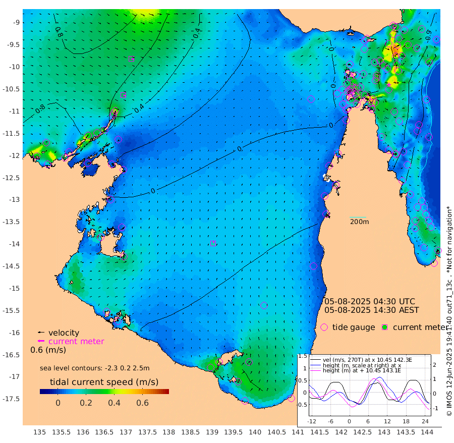 24cm/s 114T +3cm/s rms + 7cm/s -42T. ARA-GOC87 57m 17cm/s 16T +3cm/s rms + 2cm/s -2T. ARA-GOC87 60m 26cm/s 110T +2cm/s rms + 3cm/s 61T. ARA-GOC87 47m -92cm Daru -92cm Bobo Island -64cm Meer Island Barge -89cm Bramble Cay -100cm Unnamed Cay -92cm Pearce Cay -90cm Stephens Island -107cm Merrie England Shoals -108cm Mutacomal Reef -85cm Darnley Island Barge -79cm East Cay -87cm Yorke Island Barge -94cm Rennel Island -89cm Aureed Island -83cm Dungeness Reef -58cm Zagai Island -64cm Yam Island -28cm Dauan Island -38cm Saibai Island -51cm Phipi Reef -66cm Warrior Reef - West -25cm Mabuiag Island Barge -87cm Half Way Island -87cm Coconut Island -91cm Dugong Islet -73cm Poll Island -81cm Kirkcaldie Reef -67cm Suarji Island -74cm Sue Islet -13cm Hawkesbury Island -62cm Alert Patches -61cm Twin Island -7cm Badu Island -49cm St Pauls (Moa Island) -14cm Kubin (Moa Island) -40cm Ince Point -30cm Thursday Island -32cm Nardana Patches -26cm Turtle Head -14cm Round Island -7cm Goods Island 10cm Booby Island -3cm White Rocks Area 19cm Carpentaria -43cm Papou Point 4cm Bampfield Head 13cm Crab Island 1cm Red Wallis Island -19cm Packe Island -96cm Harrington Reef -11cm Herald Camp -17cm Sharp Point -33cm Red Island Point -38cm Possession Island -65cm Alpha Rock -75cm Frederick Point -93cm Wyborn Reef Light -88cm Tetley Island -63cm Triangle Reef -79cm Turtle Head Island -67cm Maclennan Cay -53cm Raine Island -89cm Mcsweeny Reef -90cm Collette Reef -69cm Shadwell Reef -98cm Hannibal Island -92cm Round Point 18cm Vrilya Point -88cm Cape Grenville -75cm Hicks Island -84cm Sir Charles Hardy Island -25cm Harvey Island -86cm Kay Reef -67cm Rocky Island -68cm Chapman Island -63cm Ham Reef -62cm Jubilee Reef -57cm Night Island -66cm Unnamed Reef No. 3 -68cm Morris Island -53cm 1st 3 Mile Opening -63cm Creech Reef -63cm Fife Island -73cm Eden Reef -72cm Stanley Island -80cm Normanby River 90cm Yabooma Island 95cm Hutchison River 91cm Elcho Island 85cm North West Crocodile Island 59cm Cape Wessel 80cm Stevens Island 41cm Guluwuru Island 66cm Hopeful Bay 69cm Auster Point 81cm Two Island Bay 89cm Cadell Strait -20cm Mallison Island 43cm Melville Bay (Gove Harbour) 50cm Truant Island 31cm Cape Arnhem 14cm Cape Grey 3cm Hawk Island 8cm Milner Bay (Groote Eylandt) -8cm Cape Beatrice -23cm West Island -23cm Centre Island -63cm Mornington Island -68cm West Wellesley Islands -78cm Bountiful Island -55cm Albert River Mouth -47cm Sweers Island -64cm Karumba -70cm Nassau River Offshore -66cm Christmas Creek -38cm Archer River -20cm Boyd Point -23cm Weipa (Humbug Point) 3cm Pennefather River 6cm Cullen Point