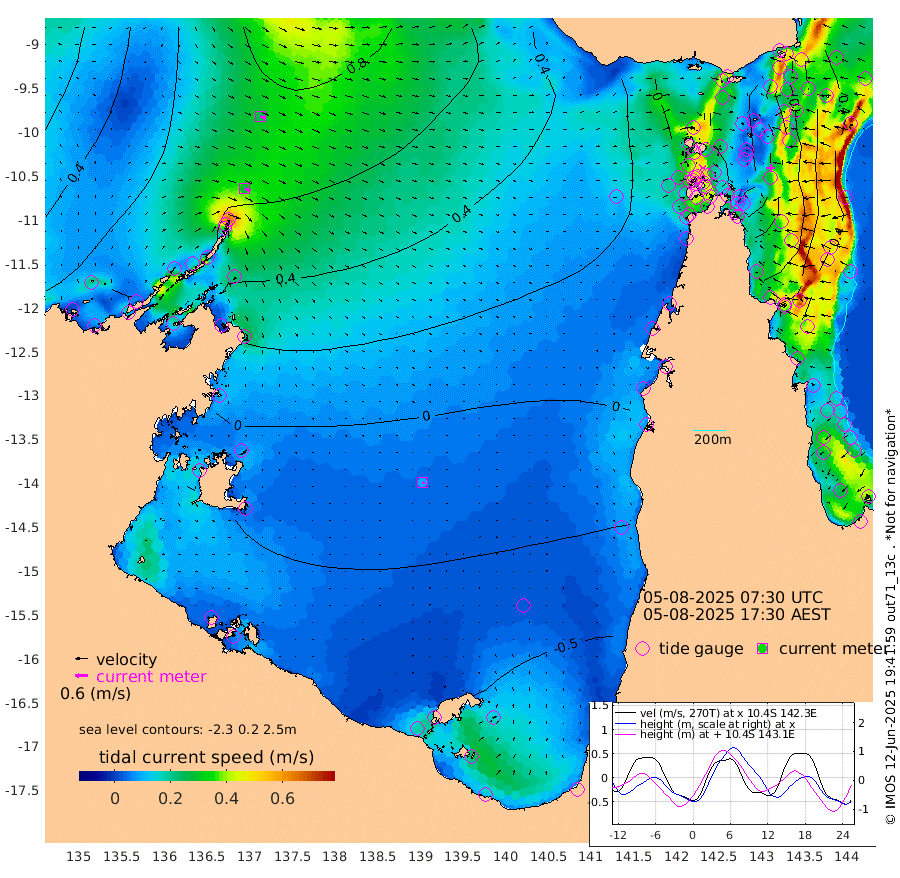 29cm/s 117T +3cm/s rms + 7cm/s -42T. ARA-GOC87 57m 9cm/s 131T +3cm/s rms + 2cm/s -2T. ARA-GOC87 60m 25cm/s 115T +2cm/s rms + 3cm/s 61T. ARA-GOC87 47m -24cm Daru -21cm Bobo Island 34cm Meer Island Barge 22cm Bramble Cay 3cm Unnamed Cay -13cm Pearce Cay 5cm Stephens Island 9cm Merrie England Shoals -20cm Mutacomal Reef 14cm Darnley Island Barge 26cm East Cay -5cm Yorke Island Barge -17cm Rennel Island -22cm Aureed Island -35cm Dungeness Reef -53cm Zagai Island -58cm Yam Island -63cm Dauan Island -58cm Saibai Island -69cm Phipi Reef -65cm Warrior Reef - West -45cm Mabuiag Island Barge -14cm Half Way Island -32cm Coconut Island -27cm Dugong Islet -47cm Poll Island -43cm Kirkcaldie Reef -72cm Suarji Island -40cm Sue Islet 7cm Hawkesbury Island -48cm Alert Patches -52cm Twin Island -6cm Badu Island -60cm St Pauls (Moa Island) -12cm Kubin (Moa Island) -42cm Ince Point -32cm Thursday Island -35cm Nardana Patches -19cm Turtle Head -1cm Round Island 10cm Goods Island 26cm Booby Island 10cm White Rocks Area 40cm Carpentaria -49cm Papou Point 41cm Bampfield Head 22cm Crab Island 13cm Red Wallis Island -6cm Packe Island -36cm Harrington Reef 9cm Herald Camp -26cm Sharp Point -26cm Red Island Point -30cm Possession Island -42cm Alpha Rock -45cm Frederick Point -19cm Wyborn Reef Light -26cm Tetley Island 17cm Triangle Reef -8cm Turtle Head Island 22cm Maclennan Cay 39cm Raine Island 0cm Mcsweeny Reef 9cm Collette Reef 30cm Shadwell Reef 15cm Hannibal Island 21cm Round Point 33cm Vrilya Point 24cm Cape Grenville 24cm Hicks Island 28cm Sir Charles Hardy Island 6cm Harvey Island 37cm Kay Reef 35cm Rocky Island 37cm Chapman Island 39cm Ham Reef 39cm Jubilee Reef 31cm Night Island 37cm Unnamed Reef No. 3 39cm Morris Island 44cm 1st 3 Mile Opening 39cm Creech Reef 30cm Fife Island 54cm Eden Reef 44cm Stanley Island 39cm Normanby River 67cm Yabooma Island 82cm Hutchison River 72cm Elcho Island 57cm North West Crocodile Island 62cm Cape Wessel 75cm Stevens Island 79cm Guluwuru Island 72cm Hopeful Bay 67cm Auster Point 73cm Two Island Bay 83cm Cadell Strait 166cm Mallison Island 63cm Melville Bay (Gove Harbour) 71cm Truant Island 43cm Cape Arnhem 13cm Cape Grey -1cm Hawk Island -29cm Milner Bay (Groote Eylandt) -41cm Cape Beatrice -75cm West Island -73cm Centre Island -92cm Mornington Island -96cm West Wellesley Islands -114cm Bountiful Island -125cm Albert River Mouth -122cm Sweers Island -129cm Karumba -74cm Nassau River Offshore -43cm Christmas Creek 0cm Archer River 13cm Boyd Point 12cm Weipa (Humbug Point) 28cm Pennefather River 23cm Cullen Point