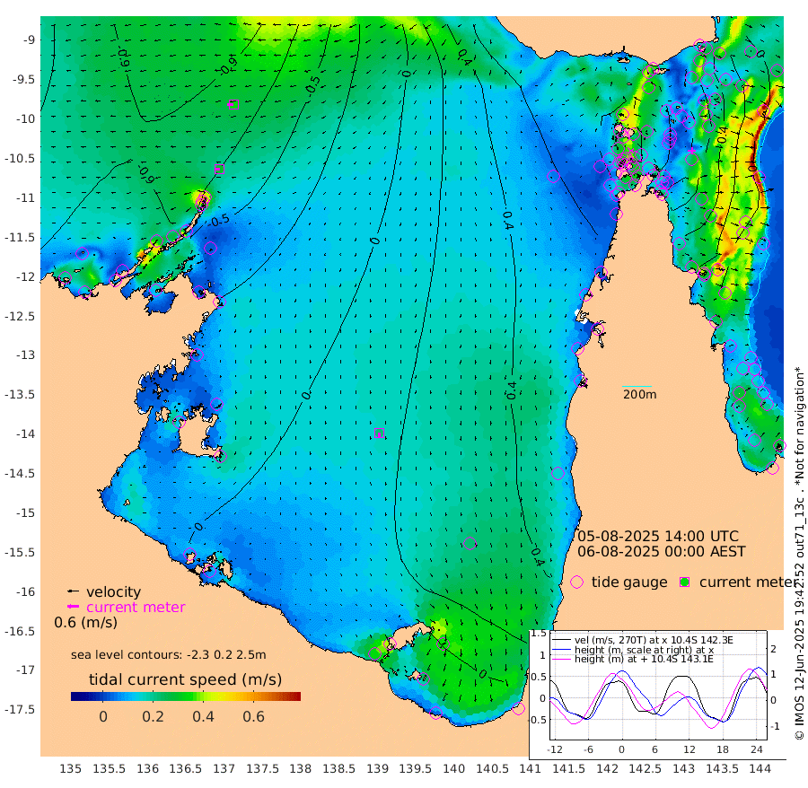 29cm/s -92T +3cm/s rms + 7cm/s -42T. ARA-GOC87 57m 23cm/s -179T +3cm/s rms + 2cm/s -2T. ARA-GOC87 60m 34cm/s -96T +2cm/s rms + 3cm/s 61T. ARA-GOC87 47m 77cm Daru 69cm Bobo Island 13cm Meer Island Barge 24cm Bramble Cay 49cm Unnamed Cay 67cm Pearce Cay 47cm Stephens Island 39cm Merrie England Shoals 71cm Mutacomal Reef 37cm Darnley Island Barge 20cm East Cay 58cm Yorke Island Barge 73cm Rennel Island 75cm Aureed Island 96cm Dungeness Reef 111cm Zagai Island 116cm Yam Island 145cm Dauan Island 128cm Saibai Island 145cm Phipi Reef 130cm Warrior Reef - West 126cm Mabuiag Island Barge 64cm Half Way Island 91cm Coconut Island 84cm Dugong Islet 108cm Poll Island 102cm Kirkcaldie Reef 147cm Suarji Island 101cm Sue Islet 132cm Hawkesbury Island 137cm Alert Patches 131cm Twin Island 129cm Badu Island 140cm St Pauls (Moa Island) 129cm Kubin (Moa Island) 133cm Ince Point 132cm Thursday Island 133cm Nardana Patches 135cm Turtle Head 126cm Round Island 124cm Goods Island 117cm Booby Island 120cm White Rocks Area 84cm Carpentaria 117cm Papou Point 129cm Bampfield Head 91cm Crab Island 119cm Red Wallis Island 130cm Packe Island 95cm Harrington Reef 136cm Herald Camp 39cm Sharp Point 117cm Red Island Point 128cm Possession Island 108cm Alpha Rock 116cm Frederick Point 80cm Wyborn Reef Light 88cm Tetley Island 34cm Triangle Reef 80cm Turtle Head Island 28cm Maclennan Cay 6cm Raine Island 54cm Mcsweeny Reef 42cm Collette Reef 19cm Shadwell Reef 36cm Hannibal Island 30cm Round Point 73cm Vrilya Point 24cm Cape Grenville 24cm Hicks Island 29cm Sir Charles Hardy Island 9cm Harvey Island 9cm Kay Reef 11cm Rocky Island 11cm Chapman Island 8cm Ham Reef 7cm Jubilee Reef 12cm Night Island 10cm Unnamed Reef No. 3 8cm Morris Island 9cm 1st 3 Mile Opening 11cm Creech Reef 14cm Fife Island -4cm Eden Reef 3cm Stanley Island 3cm Normanby River -93cm Yabooma Island -104cm Hutchison River -102cm Elcho Island -95cm North West Crocodile Island -77cm Cape Wessel -107cm Stevens Island -83cm Guluwuru Island -96cm Hopeful Bay -80cm Auster Point -89cm Two Island Bay -109cm Cadell Strait -163cm Mallison Island -69cm Melville Bay (Gove Harbour) -70cm Truant Island -46cm Cape Arnhem -37cm Cape Grey -28cm Hawk Island -39cm Milner Bay (Groote Eylandt) -26cm Cape Beatrice -12cm West Island -13cm Centre Island 7cm Mornington Island 9cm West Wellesley Islands 9cm Bountiful Island -34cm Albert River Mouth -41cm Sweers Island -12cm Karumba 33cm Nassau River Offshore 56cm Christmas Creek 57cm Archer River 68cm Boyd Point 71cm Weipa (Humbug Point) 48cm Pennefather River 79cm Cullen Point