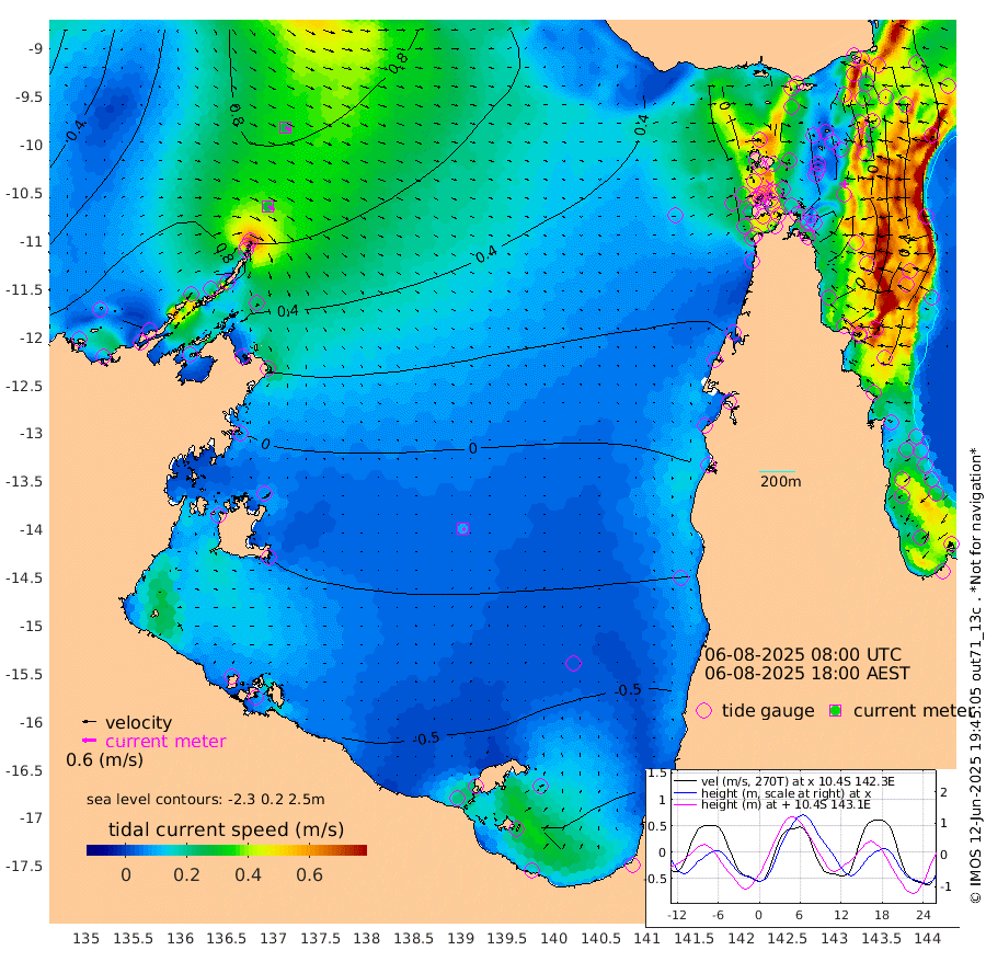 30cm/s 120T +3cm/s rms + 7cm/s -42T. ARA-GOC87 57m 10cm/s 133T +3cm/s rms + 2cm/s -2T. ARA-GOC87 60m 27cm/s 120T +2cm/s rms + 3cm/s 61T. ARA-GOC87 47m -23cm Daru -18cm Bobo Island 45cm Meer Island Barge 32cm Bramble Cay 10cm Unnamed Cay -5cm Pearce Cay 14cm Stephens Island 17cm Merrie England Shoals -17cm Mutacomal Reef 22cm Darnley Island Barge 38cm East Cay 0cm Yorke Island Barge -10cm Rennel Island -19cm Aureed Island -32cm Dungeness Reef -62cm Zagai Island -62cm Yam Island -76cm Dauan Island -73cm Saibai Island -83cm Phipi Reef -75cm Warrior Reef - West -52cm Mabuiag Island Barge -5cm Half Way Island -32cm Coconut Island -19cm Dugong Islet -48cm Poll Island -41cm Kirkcaldie Reef -76cm Suarji Island -44cm Sue Islet 20cm Hawkesbury Island -50cm Alert Patches -53cm Twin Island -1cm Badu Island -64cm St Pauls (Moa Island) -3cm Kubin (Moa Island) -41cm Ince Point -29cm Thursday Island -33cm Nardana Patches -12cm Turtle Head 6cm Round Island 25cm Goods Island 45cm Booby Island 29cm White Rocks Area 56cm Carpentaria -50cm Papou Point 55cm Bampfield Head 35cm Crab Island 30cm Red Wallis Island 6cm Packe Island -31cm Harrington Reef 22cm Herald Camp -31cm Sharp Point -21cm Red Island Point -30cm Possession Island -44cm Alpha Rock -45cm Frederick Point -19cm Wyborn Reef Light -27cm Tetley Island 24cm Triangle Reef -2cm Turtle Head Island 34cm Maclennan Cay 51cm Raine Island 6cm Mcsweeny Reef 15cm Collette Reef 38cm Shadwell Reef 23cm Hannibal Island 31cm Round Point 47cm Vrilya Point 35cm Cape Grenville 35cm Hicks Island 40cm Sir Charles Hardy Island 10cm Harvey Island 49cm Kay Reef 47cm Rocky Island 48cm Chapman Island 50cm Ham Reef 51cm Jubilee Reef 42cm Night Island 48cm Unnamed Reef No. 3 52cm Morris Island 58cm 1st 3 Mile Opening 52cm Creech Reef 40cm Fife Island 70cm Eden Reef 59cm Stanley Island 55cm Normanby River 88cm Yabooma Island 104cm Hutchison River 91cm Elcho Island 75cm North West Crocodile Island 71cm Cape Wessel 87cm Stevens Island 83cm Guluwuru Island 82cm Hopeful Bay 77cm Auster Point 85cm Two Island Bay 96cm Cadell Strait 141cm Mallison Island 65cm Melville Bay (Gove Harbour) 74cm Truant Island 42cm Cape Arnhem 10cm Cape Grey -7cm Hawk Island -35cm Milner Bay (Groote Eylandt) -46cm Cape Beatrice -83cm West Island -81cm Centre Island -106cm Mornington Island -106cm West Wellesley Islands -127cm Bountiful Island -139cm Albert River Mouth -145cm Sweers Island -147cm Karumba -82cm Nassau River Offshore -45cm Christmas Creek 4cm Archer River 19cm Boyd Point 20cm Weipa (Humbug Point) 34cm Pennefather River 34cm Cullen Point