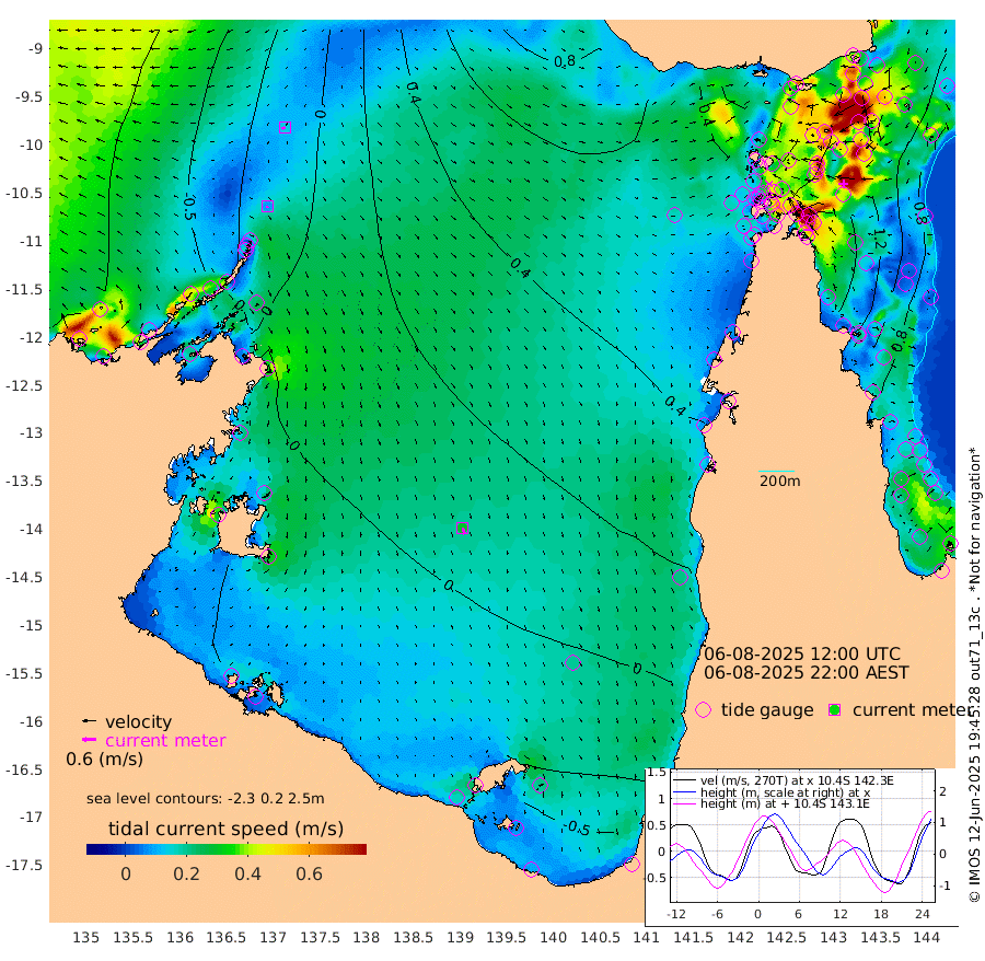 8cm/s -153T +3cm/s rms + 7cm/s -42T. ARA-GOC87 57m 30cm/s 167T +3cm/s rms + 2cm/s -2T. ARA-GOC87 60m 14cm/s -116T +2cm/s rms + 3cm/s 61T. ARA-GOC87 47m 148cm Daru 144cm Bobo Island 89cm Meer Island Barge 122cm Bramble Cay 149cm Unnamed Cay 146cm Pearce Cay 135cm Stephens Island 154cm Merrie England Shoals 165cm Mutacomal Reef 123cm Darnley Island Barge 101cm East Cay 133cm Yorke Island Barge 149cm Rennel Island 140cm Aureed Island 143cm Dungeness Reef 118cm Zagai Island 124cm Yam Island 91cm Dauan Island 87cm Saibai Island 98cm Phipi Reef 124cm Warrior Reef - West 95cm Mabuiag Island Barge 141cm Half Way Island 151cm Coconut Island 150cm Dugong Islet 142cm Poll Island 140cm Kirkcaldie Reef 142cm Suarji Island 134cm Sue Islet 117cm Hawkesbury Island 147cm Alert Patches 144cm Twin Island 102cm Badu Island 135cm St Pauls (Moa Island) 114cm Kubin (Moa Island) 127cm Ince Point 122cm Thursday Island 122cm Nardana Patches 119cm Turtle Head 112cm Round Island 108cm Goods Island 96cm Booby Island 106cm White Rocks Area 78cm Carpentaria 115cm Papou Point 122cm Bampfield Head 69cm Crab Island 102cm Red Wallis Island 123cm Packe Island 164cm Harrington Reef 109cm Herald Camp 32cm Sharp Point 96cm Red Island Point 123cm Possession Island 141cm Alpha Rock 153cm Frederick Point 165cm Wyborn Reef Light 164cm Tetley Island 98cm Triangle Reef 162cm Turtle Head Island 94cm Maclennan Cay 70cm Raine Island 139cm Mcsweeny Reef 131cm Collette Reef 95cm Shadwell Reef 140cm Hannibal Island 132cm Round Point 62cm Vrilya Point 119cm Cape Grenville 103cm Hicks Island 110cm Sir Charles Hardy Island 34cm Harvey Island 107cm Kay Reef 84cm Rocky Island 85cm Chapman Island 77cm Ham Reef 80cm Jubilee Reef 79cm Night Island 83cm Unnamed Reef No. 3 87cm Morris Island 76cm 1st 3 Mile Opening 83cm Creech Reef 87cm Fife Island 89cm Eden Reef 90cm Stanley Island 96cm Normanby River -54cm Yabooma Island -54cm Hutchison River -62cm Elcho Island -66cm North West Crocodile Island -17cm Cape Wessel -39cm Stevens Island -7cm Guluwuru Island -37cm Hopeful Bay -27cm Auster Point -39cm Two Island Bay -50cm Cadell Strait 69cm Mallison Island -10cm Melville Bay (Gove Harbour) -4cm Truant Island -6cm Cape Arnhem -23cm Cape Grey -20cm Hawk Island -56cm Milner Bay (Groote Eylandt) -49cm Cape Beatrice -61cm West Island -61cm Centre Island -54cm Mornington Island -47cm West Wellesley Islands -76cm Bountiful Island -131cm Albert River Mouth -139cm Sweers Island -117cm Karumba -14cm Nassau River Offshore 26cm Christmas Creek 45cm Archer River 57cm Boyd Point 54cm Weipa (Humbug Point) 49cm Pennefather River 62cm Cullen Point