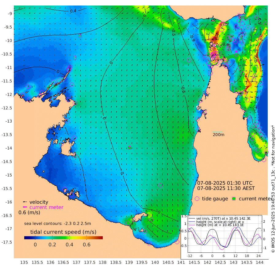 16cm/s 50T +3cm/s rms + 7cm/s -42T. ARA-GOC87 57m 29cm/s 6T +3cm/s rms + 2cm/s -2T. ARA-GOC87 60m 20cm/s 60T +2cm/s rms + 3cm/s 61T. ARA-GOC87 47m 6cm Daru 11cm Bobo Island -48cm Meer Island Barge -29cm Bramble Cay -12cm Unnamed Cay -2cm Pearce Cay -19cm Stephens Island -9cm Merrie England Shoals 11cm Mutacomal Reef -26cm Darnley Island Barge -44cm East Cay -9cm Yorke Island Barge -5cm Rennel Island 4cm Aureed Island 0cm Dungeness Reef 20cm Zagai Island 12cm Yam Island -18cm Dauan Island -4cm Saibai Island -19cm Phipi Reef 10cm Warrior Reef - West -10cm Mabuiag Island Barge -3cm Half Way Island 15cm Coconut Island 0cm Dugong Islet 17cm Poll Island 5cm Kirkcaldie Reef 19cm Suarji Island 12cm Sue Islet -99cm Hawkesbury Island -1cm Alert Patches 9cm Twin Island -72cm Badu Island 12cm St Pauls (Moa Island) -66cm Kubin (Moa Island) -16cm Ince Point -30cm Thursday Island -27cm Nardana Patches -63cm Turtle Head -80cm Round Island -100cm Goods Island -116cm Booby Island -93cm White Rocks Area -90cm Carpentaria 8cm Papou Point -126cm Bampfield Head -95cm Crab Island -98cm Red Wallis Island -79cm Packe Island 17cm Harrington Reef -122cm Herald Camp 14cm Sharp Point -47cm Red Island Point -28cm Possession Island 17cm Alpha Rock 13cm Frederick Point 16cm Wyborn Reef Light 19cm Tetley Island -34cm Triangle Reef 1cm Turtle Head Island -46cm Maclennan Cay -58cm Raine Island -10cm Mcsweeny Reef -19cm Collette Reef -44cm Shadwell Reef -20cm Hannibal Island -28cm Round Point -89cm Vrilya Point -36cm Cape Grenville -43cm Hicks Island -57cm Sir Charles Hardy Island -12cm Harvey Island -47cm Kay Reef -55cm Rocky Island -55cm Chapman Island -58cm Ham Reef -56cm Jubilee Reef -48cm Night Island -54cm Unnamed Reef No. 3 -57cm Morris Island -66cm 1st 3 Mile Opening -59cm Creech Reef -45cm Fife Island -71cm Eden Reef -61cm Stanley Island -54cm Normanby River -3cm Yabooma Island -7cm Hutchison River 1cm Elcho Island 6cm North West Crocodile Island 25cm Cape Wessel 25cm Stevens Island 6cm Guluwuru Island 9cm Hopeful Bay 16cm Auster Point 8cm Two Island Bay 8cm Cadell Strait 21cm Mallison Island 12cm Melville Bay (Gove Harbour) 14cm Truant Island 13cm Cape Arnhem 25cm Cape Grey 28cm Hawk Island 60cm Milner Bay (Groote Eylandt) 51cm Cape Beatrice 71cm West Island 69cm Centre Island 36cm Mornington Island 41cm West Wellesley Islands 35cm Bountiful Island 61cm Albert River Mouth 83cm Sweers Island 47cm Karumba -8cm Nassau River Offshore -50cm Christmas Creek -75cm Archer River -82cm Boyd Point -97cm Weipa (Humbug Point) -69cm Pennefather River -93cm Cullen Point