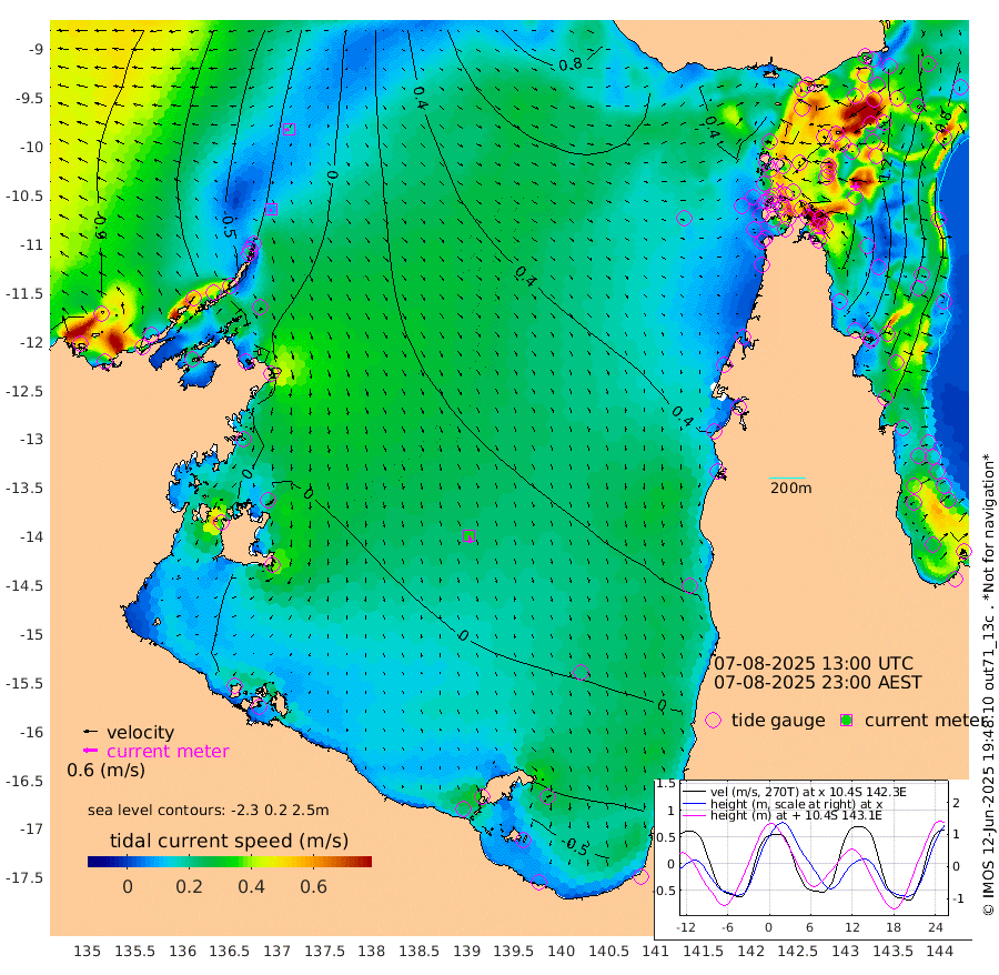 9cm/s -135T +3cm/s rms + 7cm/s -42T. ARA-GOC87 57m 33cm/s 169T +3cm/s rms + 2cm/s -2T. ARA-GOC87 60m 17cm/s -107T +2cm/s rms + 3cm/s 61T. ARA-GOC87 47m 164cm Daru 153cm Bobo Island 76cm Meer Island Barge 113cm Bramble Cay 150cm Unnamed Cay 150cm Pearce Cay 133cm Stephens Island 151cm Merrie England Shoals 176cm Mutacomal Reef 119cm Darnley Island Barge 88cm East Cay 138cm Yorke Island Barge 157cm Rennel Island 148cm Aureed Island 160cm Dungeness Reef 152cm Zagai Island 158cm Yam Island 140cm Dauan Island 130cm Saibai Island 141cm Phipi Reef 164cm Warrior Reef - West 128cm Mabuiag Island Barge 148cm Half Way Island 168cm Coconut Island 163cm Dugong Islet 167cm Poll Island 163cm Kirkcaldie Reef 175cm Suarji Island 158cm Sue Islet 130cm Hawkesbury Island 175cm Alert Patches 173cm Twin Island 123cm Badu Island 170cm St Pauls (Moa Island) 136cm Kubin (Moa Island) 156cm Ince Point 146cm Thursday Island 149cm Nardana Patches 140cm Turtle Head 127cm Round Island 118cm Goods Island 100cm Booby Island 111cm White Rocks Area 75cm Carpentaria 143cm Papou Point 123cm Bampfield Head 74cm Crab Island 110cm Red Wallis Island 140cm Packe Island 178cm Harrington Reef 122cm Herald Camp 46cm Sharp Point 112cm Red Island Point 143cm Possession Island 167cm Alpha Rock 176cm Frederick Point 180cm Wyborn Reef Light 182cm Tetley Island 92cm Triangle Reef 171cm Turtle Head Island 84cm Maclennan Cay 55cm Raine Island 141cm Mcsweeny Reef 128cm Collette Reef 86cm Shadwell Reef 134cm Hannibal Island 123cm Round Point 62cm Vrilya Point 108cm Cape Grenville 92cm Hicks Island 99cm Sir Charles Hardy Island 31cm Harvey Island 90cm Kay Reef 69cm Rocky Island 68cm Chapman Island 60cm Ham Reef 64cm Jubilee Reef 67cm Night Island 66cm Unnamed Reef No. 3 70cm Morris Island 60cm 1st 3 Mile Opening 66cm Creech Reef 75cm Fife Island 65cm Eden Reef 70cm Stanley Island 74cm Normanby River -68cm Yabooma Island -69cm Hutchison River -77cm Elcho Island -79cm North West Crocodile Island -26cm Cape Wessel -50cm Stevens Island -11cm Guluwuru Island -52cm Hopeful Bay -38cm Auster Point -48cm Two Island Bay -57cm Cadell Strait 69cm Mallison Island -13cm Melville Bay (Gove Harbour) -8cm Truant Island -6cm Cape Arnhem -25cm Cape Grey -21cm Hawk Island -58cm Milner Bay (Groote Eylandt) -49cm Cape Beatrice -60cm West Island -63cm Centre Island -47cm Mornington Island -41cm West Wellesley Islands -71cm Bountiful Island -121cm Albert River Mouth -137cm Sweers Island -107cm Karumba -6cm Nassau River Offshore 34cm Christmas Creek 45cm Archer River 60cm Boyd Point 55cm Weipa (Humbug Point) 47cm Pennefather River 65cm Cullen Point