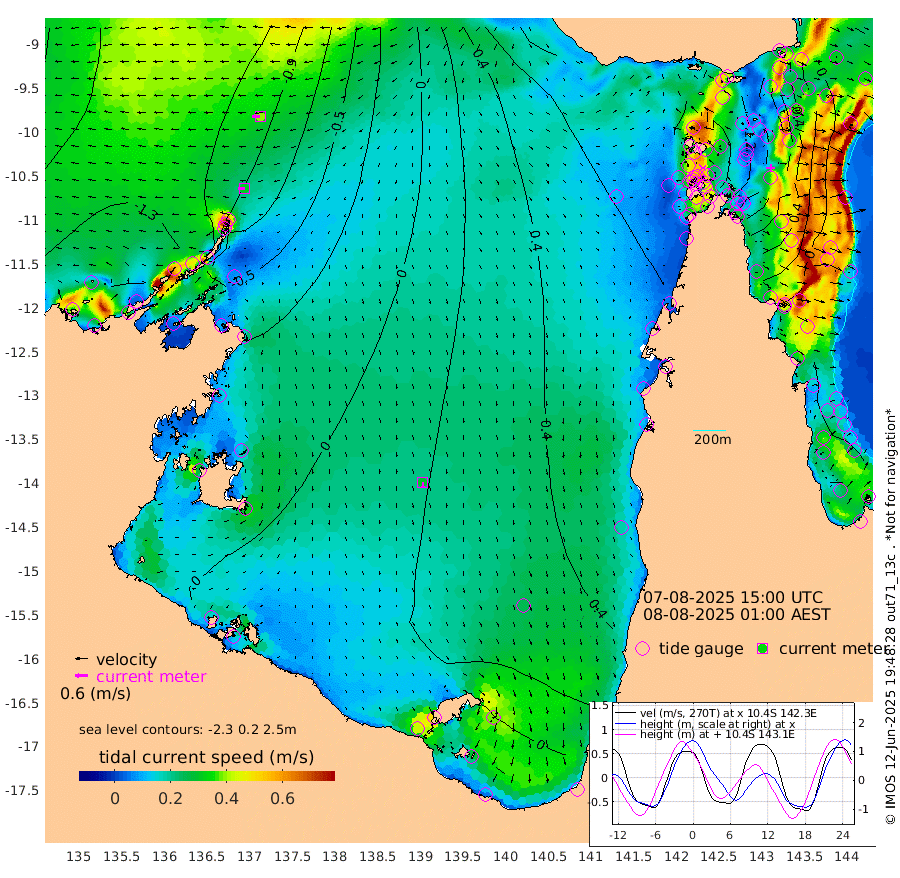 31cm/s -89T +3cm/s rms + 7cm/s -42T. ARA-GOC87 57m 29cm/s 178T +3cm/s rms + 2cm/s -2T. ARA-GOC87 60m 39cm/s -93T +2cm/s rms + 3cm/s 61T. ARA-GOC87 47m 77cm Daru 62cm Bobo Island -6cm Meer Island Barge 6cm Bramble Cay 38cm Unnamed Cay 50cm Pearce Cay 30cm Stephens Island 27cm Merrie England Shoals 69cm Mutacomal Reef 23cm Darnley Island Barge -1cm East Cay 49cm Yorke Island Barge 63cm Rennel Island 66cm Aureed Island 91cm Dungeness Reef 129cm Zagai Island 132cm Yam Island 178cm Dauan Island 162cm Saibai Island 168cm Phipi Reef 152cm Warrior Reef - West 145cm Mabuiag Island Barge 53cm Half Way Island 91cm Coconut Island 75cm Dugong Islet 113cm Poll Island 103cm Kirkcaldie Reef 154cm Suarji Island 109cm Sue Islet 128cm Hawkesbury Island 144cm Alert Patches 139cm Twin Island 132cm Badu Island 154cm St Pauls (Moa Island) 133cm Kubin (Moa Island) 142cm Ince Point 139cm Thursday Island 141cm Nardana Patches 137cm Turtle Head 129cm Round Island 118cm Goods Island 109cm Booby Island 108cm White Rocks Area 84cm Carpentaria 124cm Papou Point 122cm Bampfield Head 89cm Crab Island 117cm Red Wallis Island 135cm Packe Island 87cm Harrington Reef 139cm Herald Camp 49cm Sharp Point 114cm Red Island Point 130cm Possession Island 121cm Alpha Rock 119cm Frederick Point 80cm Wyborn Reef Light 93cm Tetley Island 24cm Triangle Reef 65cm Turtle Head Island 9cm Maclennan Cay -13cm Raine Island 43cm Mcsweeny Reef 31cm Collette Reef 5cm Shadwell Reef 22cm Hannibal Island 12cm Round Point 72cm Vrilya Point 7cm Cape Grenville 5cm Hicks Island 13cm Sir Charles Hardy Island 3cm Harvey Island -11cm Kay Reef -9cm Rocky Island -8cm Chapman Island -10cm Ham Reef -12cm Jubilee Reef -3cm Night Island -8cm Unnamed Reef No. 3 -14cm Morris Island -13cm 1st 3 Mile Opening -10cm Creech Reef -2cm Fife Island -32cm Eden Reef -19cm Stanley Island -25cm Normanby River -144cm Yabooma Island -159cm Hutchison River -149cm Elcho Island -141cm North West Crocodile Island -98cm Cape Wessel -139cm Stevens Island -93cm Guluwuru Island -127cm Hopeful Bay -111cm Auster Point -118cm Two Island Bay -145cm Cadell Strait -96cm Mallison Island -81cm Melville Bay (Gove Harbour) -82cm Truant Island -50cm Cape Arnhem -48cm Cape Grey -31cm Hawk Island -45cm Milner Bay (Groote Eylandt) -30cm Cape Beatrice -15cm West Island -15cm Centre Island 11cm Mornington Island 10cm West Wellesley Islands -1cm Bountiful Island -39cm Albert River Mouth -53cm Sweers Island -16cm Karumba 40cm Nassau River Offshore 64cm Christmas Creek 58cm Archer River 72cm Boyd Point 71cm Weipa (Humbug Point) 50cm Pennefather River 84cm Cullen Point