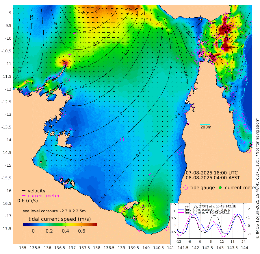 39cm/s -82T +3cm/s rms + 7cm/s -42T. ARA-GOC87 57m 16cm/s -136T +3cm/s rms + 2cm/s -2T. ARA-GOC87 60m 38cm/s -86T +2cm/s rms + 3cm/s 61T. ARA-GOC87 47m -79cm Daru -86cm Bobo Island -51cm Meer Island Barge -80cm Bramble Cay -93cm Unnamed Cay -87cm Pearce Cay -83cm Stephens Island -104cm Merrie England Shoals -99cm Mutacomal Reef -73cm Darnley Island Barge -56cm East Cay -75cm Yorke Island Barge -80cm Rennel Island -74cm Aureed Island -59cm Dungeness Reef -30cm Zagai Island -27cm Yam Island 46cm Dauan Island 33cm Saibai Island 46cm Phipi Reef -11cm Warrior Reef - West 16cm Mabuiag Island Barge -83cm Half Way Island -76cm Coconut Island -78cm Dugong Islet -56cm Poll Island -54cm Kirkcaldie Reef -26cm Suarji Island -50cm Sue Islet 36cm Hawkesbury Island -29cm Alert Patches -37cm Twin Island 34cm Badu Island -24cm St Pauls (Moa Island) 21cm Kubin (Moa Island) -9cm Ince Point 1cm Thursday Island 1cm Nardana Patches 23cm Turtle Head 34cm Round Island 38cm Goods Island 49cm Booby Island 29cm White Rocks Area 29cm Carpentaria -24cm Papou Point 42cm Bampfield Head 49cm Crab Island 40cm Red Wallis Island 27cm Packe Island -90cm Harrington Reef 70cm Herald Camp -2cm Sharp Point 23cm Red Island Point -1cm Possession Island -53cm Alpha Rock -59cm Frederick Point -99cm Wyborn Reef Light -92cm Tetley Island -45cm Triangle Reef -101cm Turtle Head Island -45cm Maclennan Cay -33cm Raine Island -83cm Mcsweeny Reef -77cm Collette Reef -50cm Shadwell Reef -89cm Hannibal Island -84cm Round Point 38cm Vrilya Point -71cm Cape Grenville -56cm Hicks Island -49cm Sir Charles Hardy Island -18cm Harvey Island -66cm Kay Reef -41cm Rocky Island -40cm Chapman Island -35cm Ham Reef -42cm Jubilee Reef -39cm Night Island -40cm Unnamed Reef No. 3 -47cm Morris Island -35cm 1st 3 Mile Opening -40cm Creech Reef -46cm Fife Island -51cm Eden Reef -50cm Stanley Island -61cm Normanby River -90cm Yabooma Island -105cm Hutchison River -89cm Elcho Island -79cm North West Crocodile Island -105cm Cape Wessel -119cm Stevens Island -104cm Guluwuru Island -92cm Hopeful Bay -99cm Auster Point -93cm Two Island Bay -112cm Cadell Strait -193cm Mallison Island -89cm Melville Bay (Gove Harbour) -101cm Truant Island -62cm Cape Arnhem -38cm Cape Grey -20cm Hawk Island -9cm Milner Bay (Groote Eylandt) 7cm Cape Beatrice 29cm West Island 35cm Centre Island 80cm Mornington Island 69cm West Wellesley Islands 101cm Bountiful Island 107cm Albert River Mouth 98cm Sweers Island 126cm Karumba 86cm Nassau River Offshore 81cm Christmas Creek 60cm Archer River 51cm Boyd Point 65cm Weipa (Humbug Point) 31cm Pennefather River 55cm Cullen Point