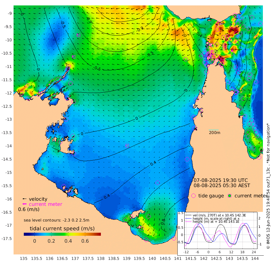 27cm/s -74T +3cm/s rms + 7cm/s -42T. ARA-GOC87 57m 15cm/s -95T +3cm/s rms + 2cm/s -2T. ARA-GOC87 60m 23cm/s -73T +2cm/s rms + 3cm/s 61T. ARA-GOC87 47m -83cm Daru -84cm Bobo Island -19cm Meer Island Barge -46cm Bramble Cay -73cm Unnamed Cay -77cm Pearce Cay -61cm Stephens Island -75cm Merrie England Shoals -95cm Mutacomal Reef -50cm Darnley Island Barge -23cm East Cay -67cm Yorke Island Barge -77cm Rennel Island -76cm Aureed Island -75cm Dungeness Reef -81cm Zagai Island -77cm Yam Island -42cm Dauan Island -49cm Saibai Island -24cm Phipi Reef -72cm Warrior Reef - West -59cm Mabuiag Island Barge -77cm Half Way Island -94cm Coconut Island -84cm Dugong Islet -92cm Poll Island -80cm Kirkcaldie Reef -89cm Suarji Island -85cm Sue Islet -28cm Hawkesbury Island -87cm Alert Patches -94cm Twin Island -37cm Badu Island -92cm St Pauls (Moa Island) -45cm Kubin (Moa Island) -74cm Ince Point -66cm Thursday Island -67cm Nardana Patches -44cm Turtle Head -29cm Round Island -24cm Goods Island -17cm Booby Island -32cm White Rocks Area -35cm Carpentaria -79cm Papou Point -27cm Bampfield Head -6cm Crab Island -28cm Red Wallis Island -40cm Packe Island -102cm Harrington Reef 0cm Herald Camp -24cm Sharp Point -30cm Red Island Point -57cm Possession Island -99cm Alpha Rock -98cm Frederick Point -106cm Wyborn Reef Light -109cm Tetley Island -33cm Triangle Reef -101cm Turtle Head Island -22cm Maclennan Cay -2cm Raine Island -70cm Mcsweeny Reef -57cm Collette Reef -23cm Shadwell Reef -61cm Hannibal Island -51cm Round Point -10cm Vrilya Point -38cm Cape Grenville -26cm Hicks Island -23cm Sir Charles Hardy Island -9cm Harvey Island -26cm Kay Reef -8cm Rocky Island -8cm Chapman Island -5cm Ham Reef -9cm Jubilee Reef -12cm Night Island -10cm Unnamed Reef No. 3 -10cm Morris Island -3cm 1st 3 Mile Opening -7cm Creech Reef -17cm Fife Island -2cm Eden Reef -9cm Stanley Island -14cm Normanby River -16cm Yabooma Island -22cm Hutchison River -15cm Elcho Island -8cm North West Crocodile Island -61cm Cape Wessel -48cm Stevens Island -56cm Guluwuru Island -25cm Hopeful Bay -45cm Auster Point -38cm Two Island Bay -37cm Cadell Strait -126cm Mallison Island -47cm Melville Bay (Gove Harbour) -61cm Truant Island -38cm Cape Arnhem -12cm Cape Grey 2cm Hawk Island 14cm Milner Bay (Groote Eylandt) 26cm Cape Beatrice 40cm West Island 46cm Centre Island 98cm Mornington Island 87cm West Wellesley Islands 133cm Bountiful Island 156cm Albert River Mouth 154cm Sweers Island 168cm Karumba 93cm Nassau River Offshore 71cm Christmas Creek 42cm Archer River 18cm Boyd Point 35cm Weipa (Humbug Point) 4cm Pennefather River 4cm Cullen Point