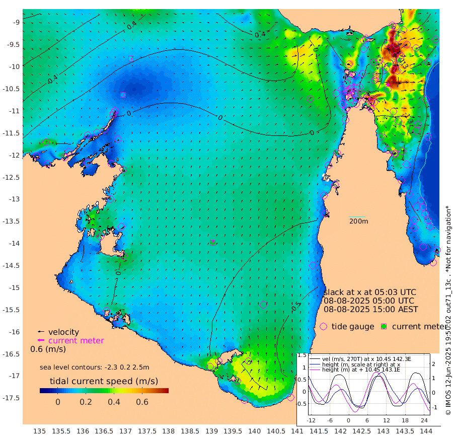 9cm/s 95T +3cm/s rms + 7cm/s -42T. ARA-GOC87 57m 27cm/s 18T +3cm/s rms + 2cm/s -2T. ARA-GOC87 60m 15cm/s 111T +2cm/s rms + 3cm/s 61T. ARA-GOC87 47m -136cm Daru -129cm Bobo Island -109cm Meer Island Barge -138cm Bramble Cay -151cm Unnamed Cay -137cm Pearce Cay -140cm Stephens Island -158cm Merrie England Shoals -149cm Mutacomal Reef -130cm Darnley Island Barge -122cm East Cay -127cm Yorke Island Barge -138cm Rennel Island -121cm Aureed Island -123cm Dungeness Reef -71cm Zagai Island -83cm Yam Island -45cm Dauan Island -32cm Saibai Island -78cm Phipi Reef -84cm Warrior Reef - West -26cm Mabuiag Island Barge -132cm Half Way Island -116cm Coconut Island -131cm Dugong Islet -99cm Poll Island -112cm Kirkcaldie Reef -75cm Suarji Island -91cm Sue Islet -49cm Hawkesbury Island -80cm Alert Patches -77cm Twin Island -32cm Badu Island -63cm St Pauls (Moa Island) -48cm Kubin (Moa Island) -57cm Ince Point -48cm Thursday Island -50cm Nardana Patches -54cm Turtle Head -50cm Round Island -41cm Goods Island -16cm Booby Island -24cm White Rocks Area 29cm Carpentaria -54cm Papou Point -29cm Bampfield Head -10cm Crab Island -19cm Red Wallis Island -53cm Packe Island -130cm Harrington Reef -52cm Herald Camp -14cm Sharp Point -45cm Red Island Point -62cm Possession Island -78cm Alpha Rock -99cm Frederick Point -132cm Wyborn Reef Light -123cm Tetley Island -97cm Triangle Reef -133cm Turtle Head Island -106cm Maclennan Cay -93cm Raine Island -133cm Mcsweeny Reef -133cm Collette Reef -111cm Shadwell Reef -148cm Hannibal Island -144cm Round Point 3cm Vrilya Point -133cm Cape Grenville -123cm Hicks Island -126cm Sir Charles Hardy Island -40cm Harvey Island -128cm Kay Reef -108cm Rocky Island -103cm Chapman Island -96cm Ham Reef -101cm Jubilee Reef -97cm Night Island -98cm Unnamed Reef No. 3 -111cm Morris Island -99cm 1st 3 Mile Opening -104cm Creech Reef -106cm Fife Island -124cm Eden Reef -118cm Stanley Island -127cm Normanby River -1cm Yabooma Island -9cm Hutchison River 8cm Elcho Island 7cm North West Crocodile Island 19cm Cape Wessel 2cm Stevens Island -11cm Guluwuru Island -5cm Hopeful Bay 10cm Auster Point 12cm Two Island Bay -6cm Cadell Strait -77cm Mallison Island -7cm Melville Bay (Gove Harbour) -2cm Truant Island 0cm Cape Arnhem 3cm Cape Grey -7cm Hawk Island 26cm Milner Bay (Groote Eylandt) 11cm Cape Beatrice 25cm West Island 26cm Centre Island -45cm Mornington Island -45cm West Wellesley Islands -59cm Bountiful Island -44cm Albert River Mouth -31cm Sweers Island -59cm Karumba -73cm Nassau River Offshore -80cm Christmas Creek -56cm Archer River -35cm Boyd Point -46cm Weipa (Humbug Point) -18cm Pennefather River -9cm Cullen Point
