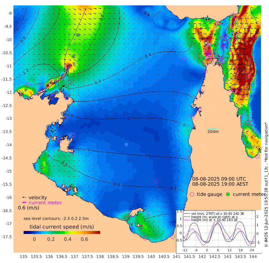 31cm/s 125T +3cm/s rms + 7cm/s -42T. ARA-GOC87 57m 8cm/s 132T +3cm/s rms + 2cm/s -2T. ARA-GOC87 60m 30cm/s 126T +2cm/s rms + 3cm/s 61T. ARA-GOC87 47m -24cm Daru -14cm Bobo Island 60cm Meer Island Barge 46cm Bramble Cay 18cm Unnamed Cay 9cm Pearce Cay 28cm Stephens Island 25cm Merrie England Shoals -15cm Mutacomal Reef 32cm Darnley Island Barge 56cm East Cay 5cm Yorke Island Barge -1cm Rennel Island -12cm Aureed Island -28cm Dungeness Reef -75cm Zagai Island -69cm Yam Island -97cm Dauan Island -98cm Saibai Island -106cm Phipi Reef -90cm Warrior Reef - West -62cm Mabuiag Island Barge 7cm Half Way Island -32cm Coconut Island -9cm Dugong Islet -49cm Poll Island -39cm Kirkcaldie Reef -81cm Suarji Island -51cm Sue Islet 40cm Hawkesbury Island -54cm Alert Patches -55cm Twin Island 10cm Badu Island -70cm St Pauls (Moa Island) 9cm Kubin (Moa Island) -40cm Ince Point -24cm Thursday Island -30cm Nardana Patches 0cm Turtle Head 12cm Round Island 49cm Goods Island 72cm Booby Island 62cm White Rocks Area 76cm Carpentaria -50cm Papou Point 73cm Bampfield Head 53cm Crab Island 57cm Red Wallis Island 22cm Packe Island -23cm Harrington Reef 36cm Herald Camp -39cm Sharp Point -8cm Red Island Point -31cm Possession Island -50cm Alpha Rock -44cm Frederick Point -20cm Wyborn Reef Light -30cm Tetley Island 34cm Triangle Reef 7cm Turtle Head Island 52cm Maclennan Cay 68cm Raine Island 14cm Mcsweeny Reef 22cm Collette Reef 47cm Shadwell Reef 31cm Hannibal Island 46cm Round Point 62cm Vrilya Point 49cm Cape Grenville 52cm Hicks Island 58cm Sir Charles Hardy Island 14cm Harvey Island 66cm Kay Reef 64cm Rocky Island 65cm Chapman Island 67cm Ham Reef 68cm Jubilee Reef 56cm Night Island 66cm Unnamed Reef No. 3 72cm Morris Island 77cm 1st 3 Mile Opening 71cm Creech Reef 57cm Fife Island 95cm Eden Reef 78cm Stanley Island 81cm Normanby River 140cm Yabooma Island 158cm Hutchison River 137cm Elcho Island 123cm North West Crocodile Island 95cm Cape Wessel 118cm Stevens Island 91cm Guluwuru Island 108cm Hopeful Bay 104cm Auster Point 113cm Two Island Bay 130cm Cadell Strait 75cm Mallison Island 72cm Melville Bay (Gove Harbour) 81cm Truant Island 42cm Cape Arnhem 9cm Cape Grey -17cm Hawk Island -43cm Milner Bay (Groote Eylandt) -51cm Cape Beatrice -92cm West Island -93cm Centre Island -124cm Mornington Island -118cm West Wellesley Islands -137cm Bountiful Island -151cm Albert River Mouth -170cm Sweers Island -164cm Karumba -90cm Nassau River Offshore -49cm Christmas Creek 7cm Archer River 26cm Boyd Point 31cm Weipa (Humbug Point) 37cm Pennefather River 45cm Cullen Point