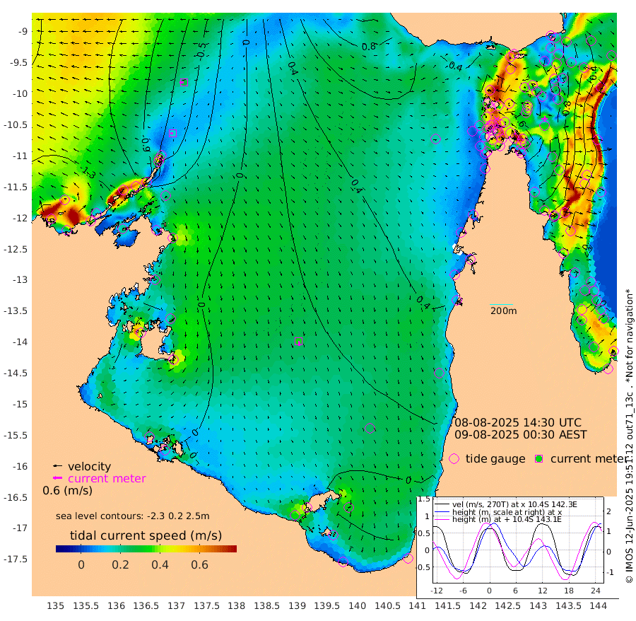 16cm/s -98T +3cm/s rms + 7cm/s -42T. ARA-GOC87 57m 34cm/s 171T +3cm/s rms + 2cm/s -2T. ARA-GOC87 60m 27cm/s -95T +2cm/s rms + 3cm/s 61T. ARA-GOC87 47m 137cm Daru 120cm Bobo Island 31cm Meer Island Barge 60cm Bramble Cay 102cm Unnamed Cay 106cm Pearce Cay 86cm Stephens Island 96cm Merrie England Shoals 139cm Mutacomal Reef 74cm Darnley Island Barge 39cm East Cay 103cm Yorke Island Barge 120cm Rennel Island 117cm Aureed Island 139cm Dungeness Reef 165cm Zagai Island 169cm Yam Island 187cm Dauan Island 174cm Saibai Island 176cm Phipi Reef 185cm Warrior Reef - West 156cm Mabuiag Island Barge 110cm Half Way Island 145cm Coconut Island 132cm Dugong Islet 159cm Poll Island 151cm Kirkcaldie Reef 183cm Suarji Island 153cm Sue Islet 128cm Hawkesbury Island 176cm Alert Patches 175cm Twin Island 133cm Badu Island 185cm St Pauls (Moa Island) 142cm Kubin (Moa Island) 165cm Ince Point 154cm Thursday Island 158cm Nardana Patches 145cm Turtle Head 130cm Round Island 115cm Goods Island 97cm Booby Island 103cm White Rocks Area 74cm Carpentaria 151cm Papou Point 113cm Bampfield Head 77cm Crab Island 110cm Red Wallis Island 142cm Packe Island 147cm Harrington Reef 127cm Herald Camp 57cm Sharp Point 116cm Red Island Point 144cm Possession Island 165cm Alpha Rock 165cm Frederick Point 147cm Wyborn Reef Light 157cm Tetley Island 58cm Triangle Reef 129cm Turtle Head Island 43cm Maclennan Cay 13cm Raine Island 99cm Mcsweeny Reef 84cm Collette Reef 44cm Shadwell Reef 82cm Hannibal Island 67cm Round Point 63cm Vrilya Point 55cm Cape Grenville 45cm Hicks Island 53cm Sir Charles Hardy Island 16cm Harvey Island 34cm Kay Reef 23cm Rocky Island 21cm Chapman Island 17cm Ham Reef 20cm Jubilee Reef 26cm Night Island 21cm Unnamed Reef No. 3 20cm Morris Island 14cm 1st 3 Mile Opening 20cm Creech Reef 31cm Fife Island 5cm Eden Reef 17cm Stanley Island 15cm Normanby River -125cm Yabooma Island -133cm Hutchison River -131cm Elcho Island -127cm North West Crocodile Island -65cm Cape Wessel -103cm Stevens Island -46cm Guluwuru Island -103cm Hopeful Bay -84cm Auster Point -90cm Two Island Bay -107cm Cadell Strait 30cm Mallison Island -44cm Melville Bay (Gove Harbour) -41cm Truant Island -24cm Cape Arnhem -37cm Cape Grey -27cm Hawk Island -54cm Milner Bay (Groote Eylandt) -42cm Cape Beatrice -40cm West Island -44cm Centre Island -21cm Mornington Island -18cm West Wellesley Islands -46cm Bountiful Island -87cm Albert River Mouth -109cm Sweers Island -71cm Karumba 15cm Nassau River Offshore 49cm Christmas Creek 46cm Archer River 63cm Boyd Point 57cm Weipa (Humbug Point) 45cm Pennefather River 70cm Cullen Point