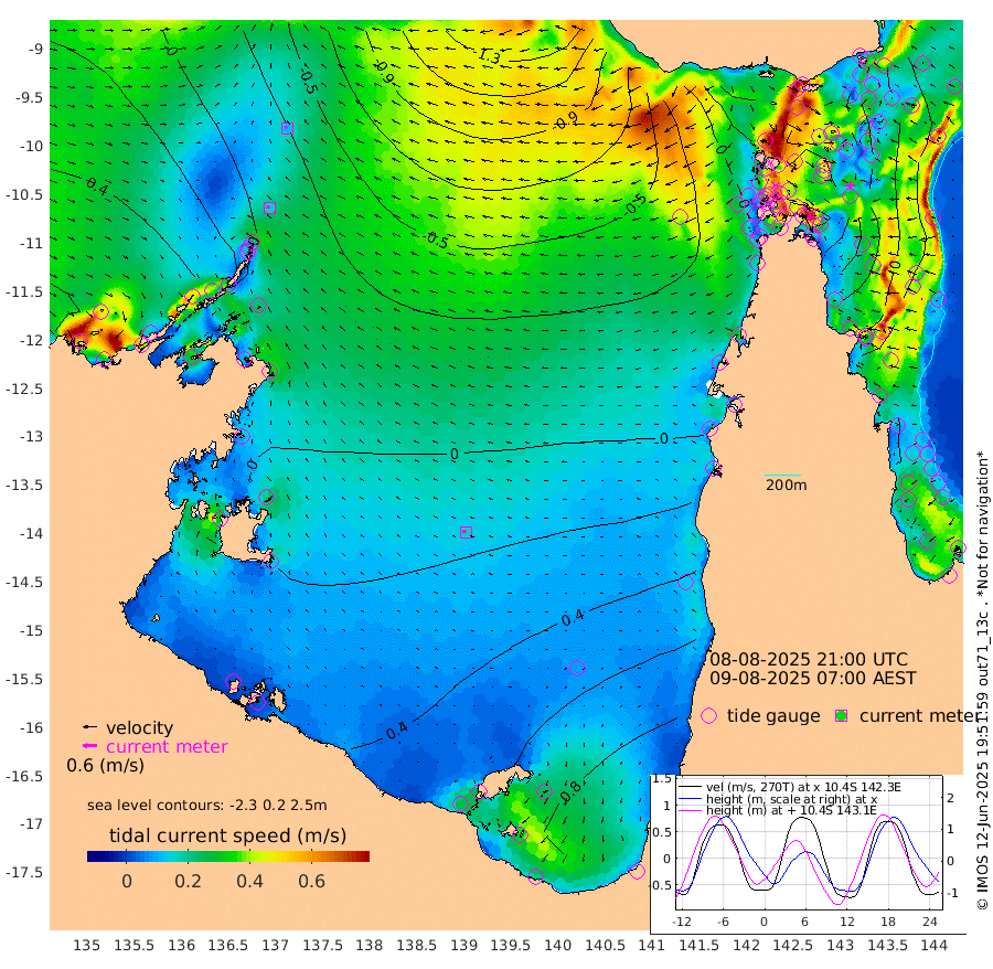 16cm/s -68T +3cm/s rms + 7cm/s -42T. ARA-GOC87 57m 17cm/s -72T +3cm/s rms + 2cm/s -2T. ARA-GOC87 60m 12cm/s -49T +2cm/s rms + 3cm/s 61T. ARA-GOC87 47m -59cm Daru -54cm Bobo Island 13cm Meer Island Barge -3cm Bramble Cay -33cm Unnamed Cay -39cm Pearce Cay -22cm Stephens Island -28cm Merrie England Shoals -61cm Mutacomal Reef -16cm Darnley Island Barge 14cm East Cay -40cm Yorke Island Barge -46cm Rennel Island -50cm Aureed Island -59cm Dungeness Reef -96cm Zagai Island -90cm Yam Island -92cm Dauan Island -99cm Saibai Island -59cm Phipi Reef -92cm Warrior Reef - West -98cm Mabuiag Island Barge -44cm Half Way Island -75cm Coconut Island -59cm Dugong Islet -86cm Poll Island -72cm Kirkcaldie Reef -102cm Suarji Island -86cm Sue Islet -58cm Hawkesbury Island -98cm Alert Patches -103cm Twin Island -72cm Badu Island -112cm St Pauls (Moa Island) -72cm Kubin (Moa Island) -95cm Ince Point -90cm Thursday Island -91cm Nardana Patches -69cm Turtle Head -55cm Round Island -51cm Goods Island -50cm Booby Island -56cm White Rocks Area -73cm Carpentaria -95cm Papou Point -59cm Bampfield Head -35cm Crab Island -59cm Red Wallis Island -64cm Packe Island -75cm Harrington Reef -36cm Herald Camp -34cm Sharp Point -53cm Red Island Point -72cm Possession Island -103cm Alpha Rock -93cm Frederick Point -79cm Wyborn Reef Light -88cm Tetley Island -10cm Triangle Reef -69cm Turtle Head Island 6cm Maclennan Cay 26cm Raine Island -36cm Mcsweeny Reef -22cm Collette Reef 6cm Shadwell Reef -18cm Hannibal Island -6cm Round Point -37cm Vrilya Point 2cm Cape Grenville 10cm Hicks Island 6cm Sir Charles Hardy Island 2cm Harvey Island 16cm Kay Reef 24cm Rocky Island 24cm Chapman Island 23cm Ham Reef 20cm Jubilee Reef 18cm Night Island 20cm Unnamed Reef No. 3 25cm Morris Island 25cm 1st 3 Mile Opening 24cm Creech Reef 16cm Fife Island 41cm Eden Reef 29cm Stanley Island 31cm Normanby River 41cm Yabooma Island 41cm Hutchison River 40cm Elcho Island 44cm North West Crocodile Island -26cm Cape Wessel 10cm Stevens Island -26cm Guluwuru Island 28cm Hopeful Bay -2cm Auster Point 3cm Two Island Bay 16cm Cadell Strait -86cm Mallison Island -17cm Melville Bay (Gove Harbour) -30cm Truant Island -20cm Cape Arnhem 2cm Cape Grey 17cm Hawk Island 28cm Milner Bay (Groote Eylandt) 37cm Cape Beatrice 42cm West Island 50cm Centre Island 104cm Mornington Island 95cm West Wellesley Islands 141cm Bountiful Island 174cm Albert River Mouth 180cm Sweers Island 182cm Karumba 94cm Nassau River Offshore 63cm Christmas Creek 31cm Archer River -4cm Boyd Point 15cm Weipa (Humbug Point) -10cm Pennefather River -26cm Cullen Point