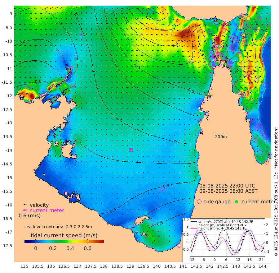8cm/s -10T +3cm/s rms + 7cm/s -42T. ARA-GOC87 57m 19cm/s -54T +3cm/s rms + 2cm/s -2T. ARA-GOC87 60m 13cm/s 25T +2cm/s rms + 3cm/s 61T. ARA-GOC87 47m -10cm Daru -3cm Bobo Island 40cm Meer Island Barge 40cm Bramble Cay 19cm Unnamed Cay 10cm Pearce Cay 24cm Stephens Island 28cm Merrie England Shoals -5cm Mutacomal Reef 25cm Darnley Island Barge 44cm East Cay 4cm Yorke Island Barge 1cm Rennel Island -7cm Aureed Island -19cm Dungeness Reef -70cm Zagai Island -66cm Yam Island -100cm Dauan Island -103cm Saibai Island -58cm Phipi Reef -72cm Warrior Reef - West -103cm Mabuiag Island Barge 2cm Half Way Island -31cm Coconut Island -14cm Dugong Islet -51cm Poll Island -37cm Kirkcaldie Reef -80cm Suarji Island -53cm Sue Islet -89cm Hawkesbury Island -80cm Alert Patches -81cm Twin Island -98cm Badu Island -95cm St Pauls (Moa Island) -91cm Kubin (Moa Island) -91cm Ince Point -95cm Thursday Island -95cm Nardana Patches -86cm Turtle Head -79cm Round Island -85cm Goods Island -97cm Booby Island -93cm White Rocks Area -121cm Carpentaria -80cm Papou Point -102cm Bampfield Head -77cm Crab Island -102cm Red Wallis Island -90cm Packe Island -23cm Harrington Reef -81cm Herald Camp -29cm Sharp Point -67cm Red Island Point -70cm Possession Island -75cm Alpha Rock -59cm Frederick Point -25cm Wyborn Reef Light -38cm Tetley Island 13cm Triangle Reef -15cm Turtle Head Island 29cm Maclennan Cay 41cm Raine Island 10cm Mcsweeny Reef 21cm Collette Reef 33cm Shadwell Reef 31cm Hannibal Island 39cm Round Point -79cm Vrilya Point 39cm Cape Grenville 41cm Hicks Island 31cm Sir Charles Hardy Island 12cm Harvey Island 48cm Kay Reef 45cm Rocky Island 42cm Chapman Island 38cm Ham Reef 40cm Jubilee Reef 37cm Night Island 37cm Unnamed Reef No. 3 47cm Morris Island 41cm 1st 3 Mile Opening 42cm Creech Reef 39cm Fife Island 65cm Eden Reef 53cm Stanley Island 62cm Normanby River 78cm Yabooma Island 86cm Hutchison River 76cm Elcho Island 78cm North West Crocodile Island 12cm Cape Wessel 58cm Stevens Island 18cm Guluwuru Island 67cm Hopeful Bay 37cm Auster Point 39cm Two Island Bay 66cm Cadell Strait -7cm Mallison Island 22cm Melville Bay (Gove Harbour) 12cm Truant Island 7cm Cape Arnhem 27cm Cape Grey 37cm Hawk Island 43cm Milner Bay (Groote Eylandt) 48cm Cape Beatrice 47cm West Island 51cm Centre Island 104cm Mornington Island 98cm West Wellesley Islands 144cm Bountiful Island 179cm Albert River Mouth 194cm Sweers Island 182cm Karumba 84cm Nassau River Offshore 44cm Christmas Creek 4cm Archer River -35cm Boyd Point -21cm Weipa (Humbug Point) -37cm Pennefather River -70cm Cullen Point