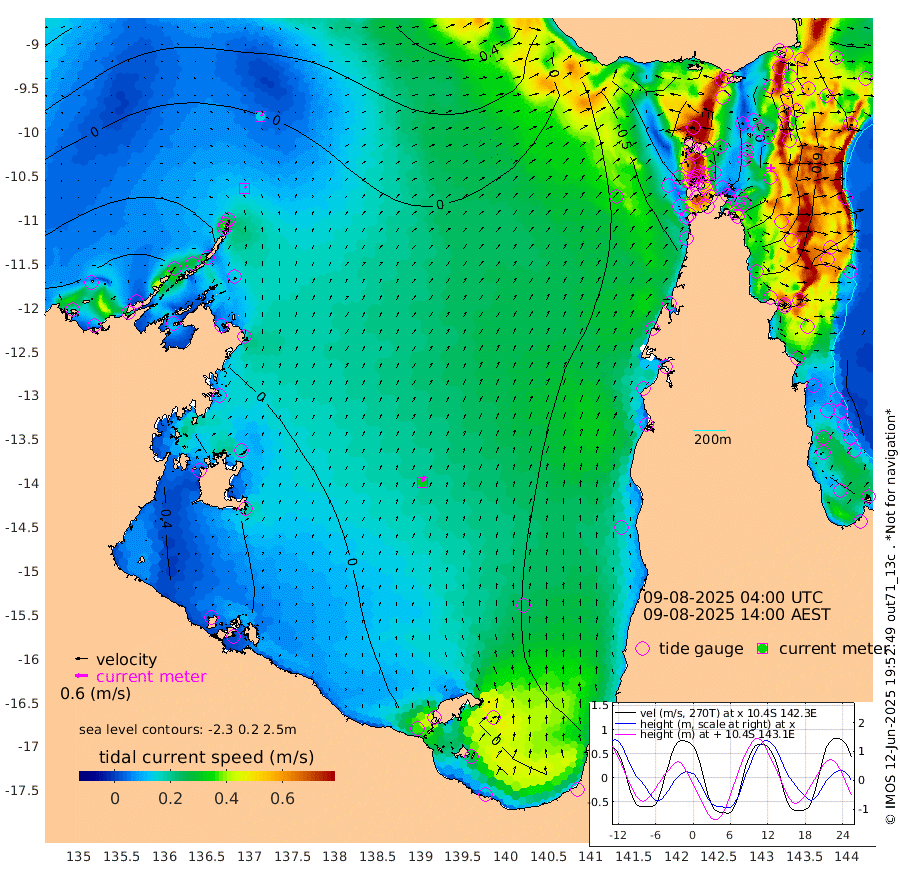 12cm/s 39T +3cm/s rms + 7cm/s -42T. ARA-GOC87 57m 31cm/s 16T +3cm/s rms + 2cm/s -2T. ARA-GOC87 60m 14cm/s 60T +2cm/s rms + 3cm/s 61T. ARA-GOC87 47m -65cm Daru -63cm Bobo Island -101cm Meer Island Barge -106cm Bramble Cay -94cm Unnamed Cay -85cm Pearce Cay -97cm Stephens Island -100cm Merrie England Shoals -73cm Mutacomal Reef -93cm Darnley Island Barge -109cm East Cay -74cm Yorke Island Barge -82cm Rennel Island -63cm Aureed Island -63cm Dungeness Reef -3cm Zagai Island -20cm Yam Island -2cm Dauan Island 20cm Saibai Island -21cm Phipi Reef -14cm Warrior Reef - West 7cm Mabuiag Island Barge -80cm Half Way Island -47cm Coconut Island -73cm Dugong Islet -34cm Poll Island -49cm Kirkcaldie Reef -8cm Suarji Island -23cm Sue Islet -88cm Hawkesbury Island -26cm Alert Patches -22cm Twin Island -55cm Badu Island -7cm St Pauls (Moa Island) -65cm Kubin (Moa Island) -27cm Ince Point -34cm Thursday Island -31cm Nardana Patches -63cm Turtle Head -69cm Round Island -90cm Goods Island -88cm Booby Island -83cm White Rocks Area -39cm Carpentaria -10cm Papou Point -90cm Bampfield Head -71cm Crab Island -81cm Red Wallis Island -82cm Packe Island -60cm Harrington Reef -102cm Herald Camp 12cm Sharp Point -49cm Red Island Point -36cm Possession Island -16cm Alpha Rock -35cm Frederick Point -57cm Wyborn Reef Light -46cm Tetley Island -80cm Triangle Reef -73cm Turtle Head Island -99cm Maclennan Cay -101cm Raine Island -83cm Mcsweeny Reef -88cm Collette Reef -95cm Shadwell Reef -100cm Hannibal Island -110cm Round Point -59cm Vrilya Point -107cm Cape Grenville -107cm Hicks Island -115cm Sir Charles Hardy Island -33cm Harvey Island -113cm Kay Reef -106cm Rocky Island -105cm Chapman Island -101cm Ham Reef -103cm Jubilee Reef -96cm Night Island -102cm Unnamed Reef No. 3 -112cm Morris Island -110cm 1st 3 Mile Opening -109cm Creech Reef -102cm Fife Island -134cm Eden Reef -119cm Stanley Island -125cm Normanby River -61cm Yabooma Island -70cm Hutchison River -50cm Elcho Island -47cm North West Crocodile Island -3cm Cape Wessel -29cm Stevens Island -17cm Guluwuru Island -37cm Hopeful Bay -18cm Auster Point -25cm Two Island Bay -45cm Cadell Strait -6cm Mallison Island -10cm Melville Bay (Gove Harbour) -8cm Truant Island 3cm Cape Arnhem 19cm Cape Grey 17cm Hawk Island 54cm Milner Bay (Groote Eylandt) 39cm Cape Beatrice 67cm West Island 67cm Centre Island 8cm Mornington Island 8cm West Wellesley Islands 0cm Bountiful Island 12cm Albert River Mouth 44cm Sweers Island 1cm Karumba -43cm Nassau River Offshore -73cm Christmas Creek -78cm Archer River -69cm Boyd Point -88cm Weipa (Humbug Point) -54cm Pennefather River -65cm Cullen Point