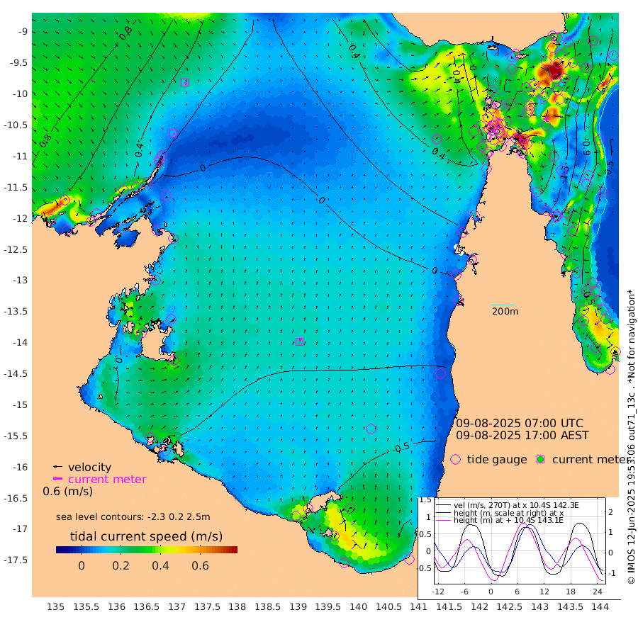10cm/s 140T +3cm/s rms + 7cm/s -42T. ARA-GOC87 57m 20cm/s 22T +3cm/s rms + 2cm/s -2T. ARA-GOC87 60m 17cm/s 139T +2cm/s rms + 3cm/s 61T. ARA-GOC87 47m -163cm Daru -150cm Bobo Island -73cm Meer Island Barge -114cm Bramble Cay -148cm Unnamed Cay -142cm Pearce Cay -131cm Stephens Island -151cm Merrie England Shoals -170cm Mutacomal Reef -117cm Darnley Island Barge -86cm East Cay -133cm Yorke Island Barge -148cm Rennel Island -138cm Aureed Island -149cm Dungeness Reef -129cm Zagai Island -133cm Yam Island -105cm Dauan Island -91cm Saibai Island -136cm Phipi Reef -146cm Warrior Reef - West -66cm Mabuiag Island Barge -139cm Half Way Island -148cm Coconut Island -147cm Dugong Islet -141cm Poll Island -144cm Kirkcaldie Reef -131cm Suarji Island -132cm Sue Islet -13cm Hawkesbury Island -118cm Alert Patches -119cm Twin Island -21cm Badu Island -117cm St Pauls (Moa Island) -41cm Kubin (Moa Island) -86cm Ince Point -64cm Thursday Island -71cm Nardana Patches -50cm Turtle Head -34cm Round Island -1cm Goods Island 40cm Booby Island 23cm White Rocks Area 81cm Carpentaria -94cm Papou Point 29cm Bampfield Head 33cm Crab Island 26cm Red Wallis Island -33cm Packe Island -158cm Harrington Reef -9cm Herald Camp -39cm Sharp Point -41cm Red Island Point -80cm Possession Island -119cm Alpha Rock -137cm Frederick Point -160cm Wyborn Reef Light -158cm Tetley Island -76cm Triangle Reef -149cm Turtle Head Island -73cm Maclennan Cay -47cm Raine Island -133cm Mcsweeny Reef -125cm Collette Reef -81cm Shadwell Reef -134cm Hannibal Island -119cm Round Point 49cm Vrilya Point -102cm Cape Grenville -91cm Hicks Island -86cm Sir Charles Hardy Island -31cm Harvey Island -83cm Kay Reef -63cm Rocky Island -55cm Chapman Island -47cm Ham Reef -56cm Jubilee Reef -60cm Night Island -51cm Unnamed Reef No. 3 -64cm Morris Island -48cm 1st 3 Mile Opening -56cm Creech Reef -70cm Fife Island -60cm Eden Reef -65cm Stanley Island -73cm Normanby River 44cm Yabooma Island 39cm Hutchison River 50cm Elcho Island 45cm North West Crocodile Island 33cm Cape Wessel 25cm Stevens Island -1cm Guluwuru Island 26cm Hopeful Bay 31cm Auster Point 36cm Two Island Bay 17cm Cadell Strait -93cm Mallison Island -3cm Melville Bay (Gove Harbour) 2cm Truant Island -4cm Cape Arnhem -6cm Cape Grey -23cm Hawk Island -2cm Milner Bay (Groote Eylandt) -15cm Cape Beatrice -12cm West Island -10cm Centre Island -83cm Mornington Island -80cm West Wellesley Islands -92cm Bountiful Island -90cm Albert River Mouth -88cm Sweers Island -105cm Karumba -88cm Nassau River Offshore -74cm Christmas Creek -25cm Archer River -1cm Boyd Point -3cm Weipa (Humbug Point) 14cm Pennefather River 33cm Cullen Point