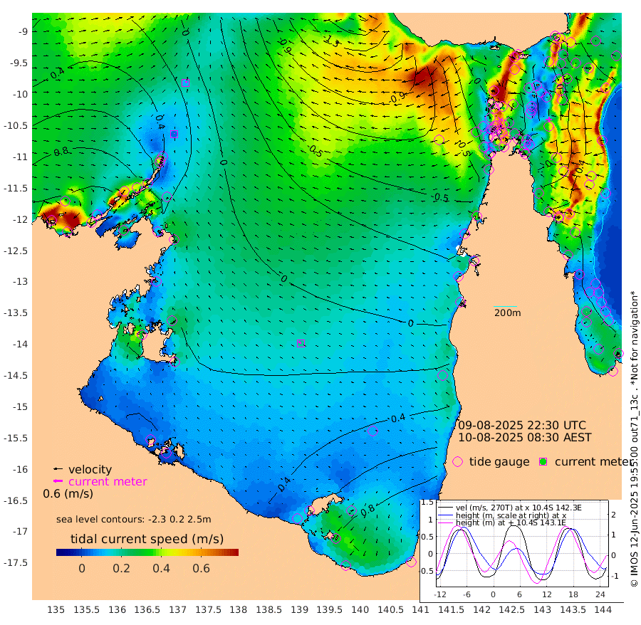 4cm/s 5T +3cm/s rms + 7cm/s -42T. ARA-GOC87 57m 19cm/s -57T +3cm/s rms + 2cm/s -2T. ARA-GOC87 60m 11cm/s 39T +2cm/s rms + 3cm/s 61T. ARA-GOC87 47m -7cm Daru 1cm Bobo Island 44cm Meer Island Barge 44cm Bramble Cay 22cm Unnamed Cay 18cm Pearce Cay 29cm Stephens Island 31cm Merrie England Shoals -3cm Mutacomal Reef 28cm Darnley Island Barge 49cm East Cay 7cm Yorke Island Barge 6cm Rennel Island -1cm Aureed Island -13cm Dungeness Reef -69cm Zagai Island -65cm Yam Island -97cm Dauan Island -107cm Saibai Island -53cm Phipi Reef -69cm Warrior Reef - West -101cm Mabuiag Island Barge 7cm Half Way Island -26cm Coconut Island -10cm Dugong Islet -46cm Poll Island -34cm Kirkcaldie Reef -73cm Suarji Island -54cm Sue Islet -75cm Hawkesbury Island -73cm Alert Patches -75cm Twin Island -85cm Badu Island -89cm St Pauls (Moa Island) -77cm Kubin (Moa Island) -83cm Ince Point -85cm Thursday Island -85cm Nardana Patches -73cm Turtle Head -65cm Round Island -68cm Goods Island -79cm Booby Island -74cm White Rocks Area -112cm Carpentaria -76cm Papou Point -84cm Bampfield Head -63cm Crab Island -84cm Red Wallis Island -72cm Packe Island -18cm Harrington Reef -66cm Herald Camp -30cm Sharp Point -59cm Red Island Point -61cm Possession Island -73cm Alpha Rock -53cm Frederick Point -21cm Wyborn Reef Light -34cm Tetley Island 18cm Triangle Reef -8cm Turtle Head Island 33cm Maclennan Cay 46cm Raine Island 14cm Mcsweeny Reef 24cm Collette Reef 36cm Shadwell Reef 34cm Hannibal Island 45cm Round Point -68cm Vrilya Point 43cm Cape Grenville 46cm Hicks Island 34cm Sir Charles Hardy Island 14cm Harvey Island 50cm Kay Reef 49cm Rocky Island 47cm Chapman Island 41cm Ham Reef 44cm Jubilee Reef 42cm Night Island 42cm Unnamed Reef No. 3 52cm Morris Island 47cm 1st 3 Mile Opening 47cm Creech Reef 46cm Fife Island 70cm Eden Reef 57cm Stanley Island 67cm Normanby River 100cm Yabooma Island 110cm Hutchison River 97cm Elcho Island 97cm North West Crocodile Island 21cm Cape Wessel 75cm Stevens Island 20cm Guluwuru Island 82cm Hopeful Bay 50cm Auster Point 52cm Two Island Bay 82cm Cadell Strait -28cm Mallison Island 28cm Melville Bay (Gove Harbour) 18cm Truant Island 11cm Cape Arnhem 25cm Cape Grey 37cm Hawk Island 39cm Milner Bay (Groote Eylandt) 44cm Cape Beatrice 37cm West Island 43cm Centre Island 99cm Mornington Island 92cm West Wellesley Islands 136cm Bountiful Island 173cm Albert River Mouth 189cm Sweers Island 177cm Karumba 84cm Nassau River Offshore 46cm Christmas Creek 11cm Archer River -29cm Boyd Point -11cm Weipa (Humbug Point) -28cm Pennefather River -59cm Cullen Point