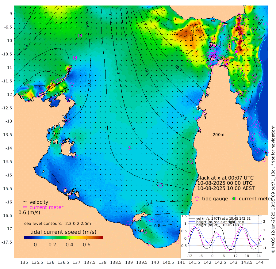20cm/s 66T +3cm/s rms + 7cm/s -42T. ARA-GOC87 57m 20cm/s -34T +3cm/s rms + 2cm/s -2T. ARA-GOC87 60m 29cm/s 57T +2cm/s rms + 3cm/s 61T. ARA-GOC87 47m 67cm Daru 72cm Bobo Island 56cm Meer Island Barge 79cm Bramble Cay 81cm Unnamed Cay 78cm Pearce Cay 77cm Stephens Island 90cm Merrie England Shoals 73cm Mutacomal Reef 70cm Darnley Island Barge 64cm East Cay 64cm Yorke Island Barge 66cm Rennel Island 60cm Aureed Island 49cm Dungeness Reef 2cm Zagai Island -2cm Yam Island -59cm Dauan Island -63cm Saibai Island -13cm Phipi Reef -3cm Warrior Reef - West -69cm Mabuiag Island Barge 65cm Half Way Island 46cm Coconut Island 54cm Dugong Islet 23cm Poll Island 29cm Kirkcaldie Reef -8cm Suarji Island 15cm Sue Islet -111cm Hawkesbury Island -20cm Alert Patches -17cm Twin Island -103cm Badu Island -29cm St Pauls (Moa Island) -87cm Kubin (Moa Island) -51cm Ince Point -68cm Thursday Island -64cm Nardana Patches -81cm Turtle Head -85cm Round Island -112cm Goods Island -144cm Booby Island -125cm White Rocks Area -168cm Carpentaria -26cm Papou Point -139cm Bampfield Head -120cm Crab Island -140cm Red Wallis Island -100cm Packe Island 58cm Harrington Reef -121cm Herald Camp -8cm Sharp Point -66cm Red Island Point -36cm Possession Island -10cm Alpha Rock 14cm Frederick Point 60cm Wyborn Reef Light 48cm Tetley Island 37cm Triangle Reef 67cm Turtle Head Island 44cm Maclennan Cay 40cm Raine Island 68cm Mcsweeny Reef 70cm Collette Reef 52cm Shadwell Reef 83cm Hannibal Island 81cm Round Point -125cm Vrilya Point 68cm Cape Grenville 64cm Hicks Island 46cm Sir Charles Hardy Island 21cm Harvey Island 64cm Kay Reef 51cm Rocky Island 44cm Chapman Island 36cm Ham Reef 44cm Jubilee Reef 44cm Night Island 37cm Unnamed Reef No. 3 54cm Morris Island 41cm 1st 3 Mile Opening 45cm Creech Reef 53cm Fife Island 63cm Eden Reef 57cm Stanley Island 70cm Normanby River 103cm Yabooma Island 122cm Hutchison River 101cm Elcho Island 99cm North West Crocodile Island 56cm Cape Wessel 106cm Stevens Island 70cm Guluwuru Island 98cm Hopeful Bay 79cm Auster Point 75cm Two Island Bay 117cm Cadell Strait 87cm Mallison Island 73cm Melville Bay (Gove Harbour) 67cm Truant Island 47cm Cape Arnhem 56cm Cape Grey 62cm Hawk Island 61cm Milner Bay (Groote Eylandt) 57cm Cape Beatrice 47cm West Island 48cm Centre Island 94cm Mornington Island 90cm West Wellesley Islands 126cm Bountiful Island 159cm Albert River Mouth 190cm Sweers Island 158cm Karumba 60cm Nassau River Offshore 11cm Christmas Creek -35cm Archer River -72cm Boyd Point -68cm Weipa (Humbug Point) -68cm Pennefather River -117cm Cullen Point