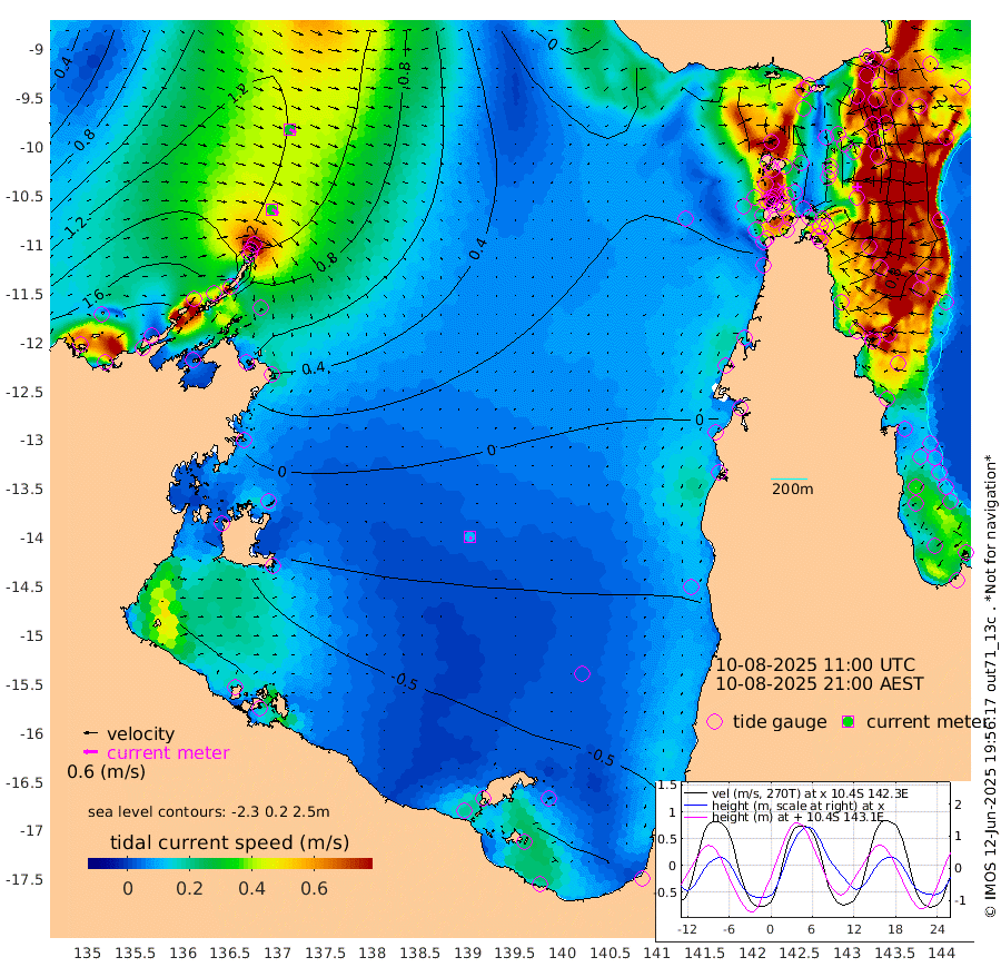 32cm/s 123T +3cm/s rms + 7cm/s -42T. ARA-GOC87 57m 11cm/s 163T +3cm/s rms + 2cm/s -2T. ARA-GOC87 60m 30cm/s 120T +2cm/s rms + 3cm/s 61T. ARA-GOC87 47m 54cm Daru 65cm Bobo Island 101cm Meer Island Barge 107cm Bramble Cay 91cm Unnamed Cay 91cm Pearce Cay 98cm Stephens Island 98cm Merrie England Shoals 66cm Mutacomal Reef 92cm Darnley Island Barge 107cm East Cay 72cm Yorke Island Barge 78cm Rennel Island 62cm Aureed Island 49cm Dungeness Reef -14cm Zagai Island -2cm Yam Island -50cm Dauan Island -58cm Saibai Island -53cm Phipi Reef -22cm Warrior Reef - West -24cm Mabuiag Island Barge 80cm Half Way Island 44cm Coconut Island 70cm Dugong Islet 25cm Poll Island 33cm Kirkcaldie Reef -10cm Suarji Island 13cm Sue Islet 74cm Hawkesbury Island 9cm Alert Patches 11cm Twin Island 42cm Badu Island -7cm St Pauls (Moa Island) 48cm Kubin (Moa Island) 11cm Ince Point 20cm Thursday Island 16cm Nardana Patches 40cm Turtle Head 41cm Round Island 75cm Goods Island 80cm Booby Island 86cm White Rocks Area 55cm Carpentaria 6cm Papou Point 81cm Bampfield Head 53cm Crab Island 71cm Red Wallis Island 55cm Packe Island 63cm Harrington Reef 55cm Herald Camp -25cm Sharp Point 30cm Red Island Point 15cm Possession Island 10cm Alpha Rock 29cm Frederick Point 60cm Wyborn Reef Light 48cm Tetley Island 77cm Triangle Reef 89cm Turtle Head Island 97cm Maclennan Cay 98cm Raine Island 83cm Mcsweeny Reef 82cm Collette Reef 87cm Shadwell Reef 97cm Hannibal Island 111cm Round Point 48cm Vrilya Point 102cm Cape Grenville 103cm Hicks Island 109cm Sir Charles Hardy Island 31cm Harvey Island 111cm Kay Reef 102cm Rocky Island 101cm Chapman Island 98cm Ham Reef 102cm Jubilee Reef 88cm Night Island 99cm Unnamed Reef No. 3 110cm Morris Island 108cm 1st 3 Mile Opening 105cm Creech Reef 98cm Fife Island 134cm Eden Reef 114cm Stanley Island 129cm Normanby River 199cm Yabooma Island 227cm Hutchison River 187cm Elcho Island 175cm North West Crocodile Island 131cm Cape Wessel 167cm Stevens Island 124cm Guluwuru Island 148cm Hopeful Bay 143cm Auster Point 149cm Two Island Bay 188cm Cadell Strait 72cm Mallison Island 104cm Melville Bay (Gove Harbour) 114cm Truant Island 60cm Cape Arnhem 23cm Cape Grey -8cm Hawk Island -50cm Milner Bay (Groote Eylandt) -54cm Cape Beatrice -107cm West Island -115cm Centre Island -124cm Mornington Island -112cm West Wellesley Islands -122cm Bountiful Island -146cm Albert River Mouth -170cm Sweers Island -157cm Karumba -80cm Nassau River Offshore -38cm Christmas Creek 9cm Archer River 25cm Boyd Point 34cm Weipa (Humbug Point) 24cm Pennefather River 34cm Cullen Point